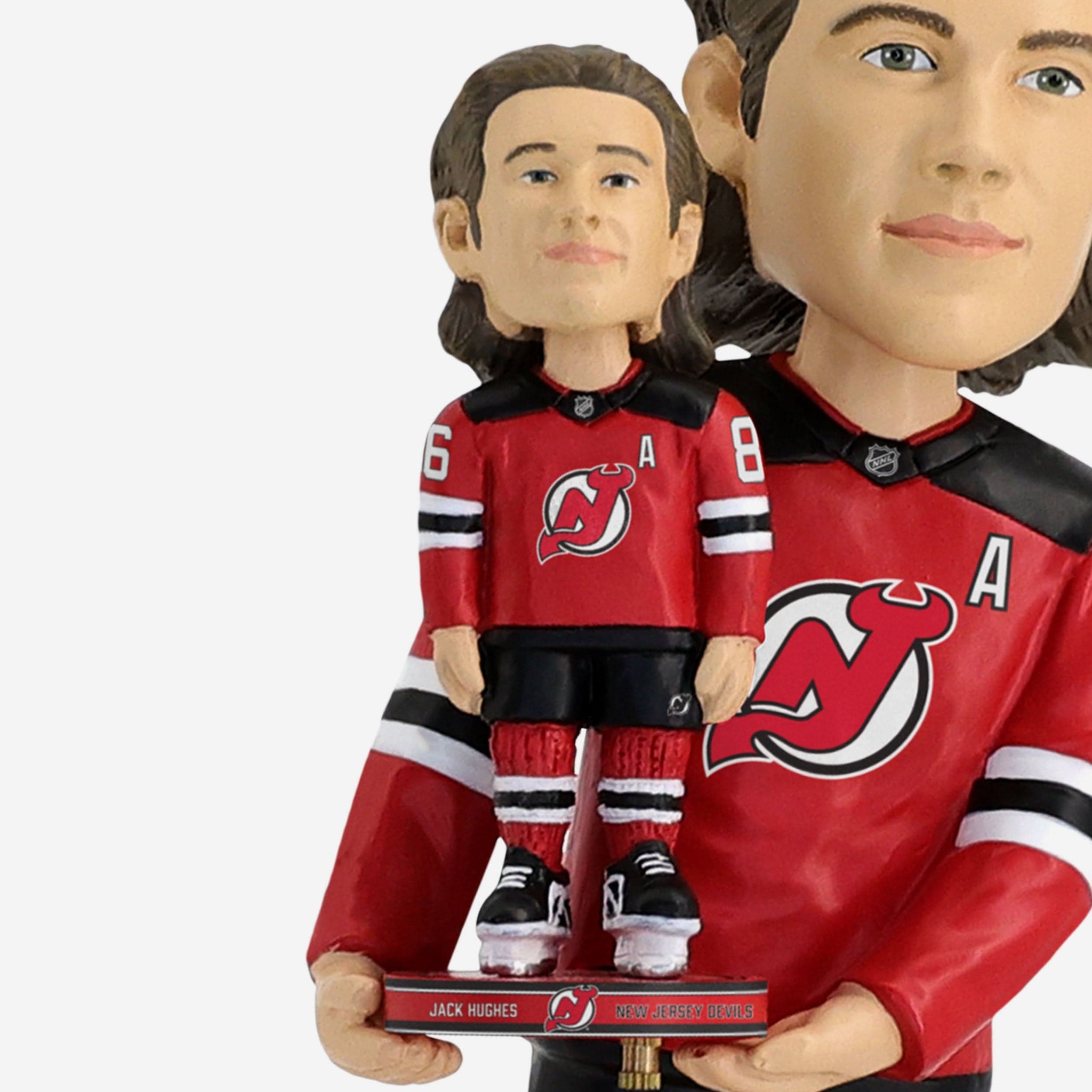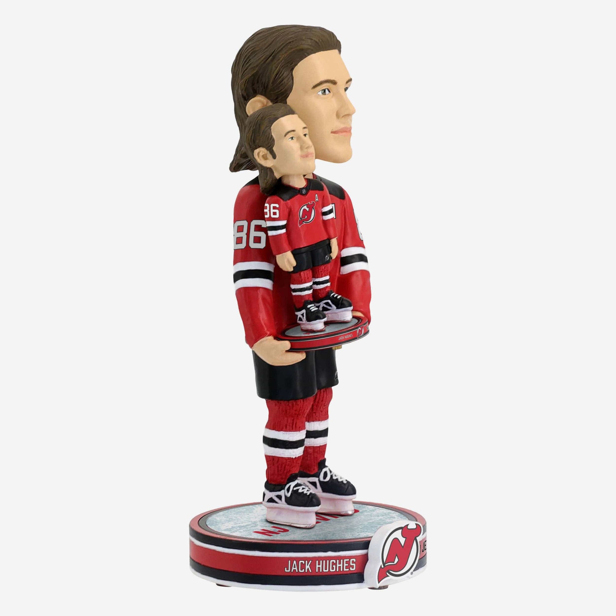 It’s a bobble, holding a bobble! Welcome double the amount of fandom to your fancave with the Jack Hughes New Jersey Devils Bobble Dubblz Bobblehead.