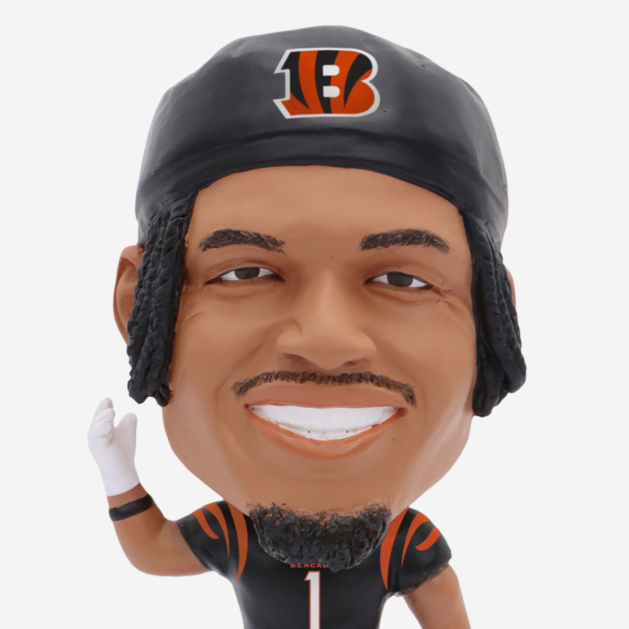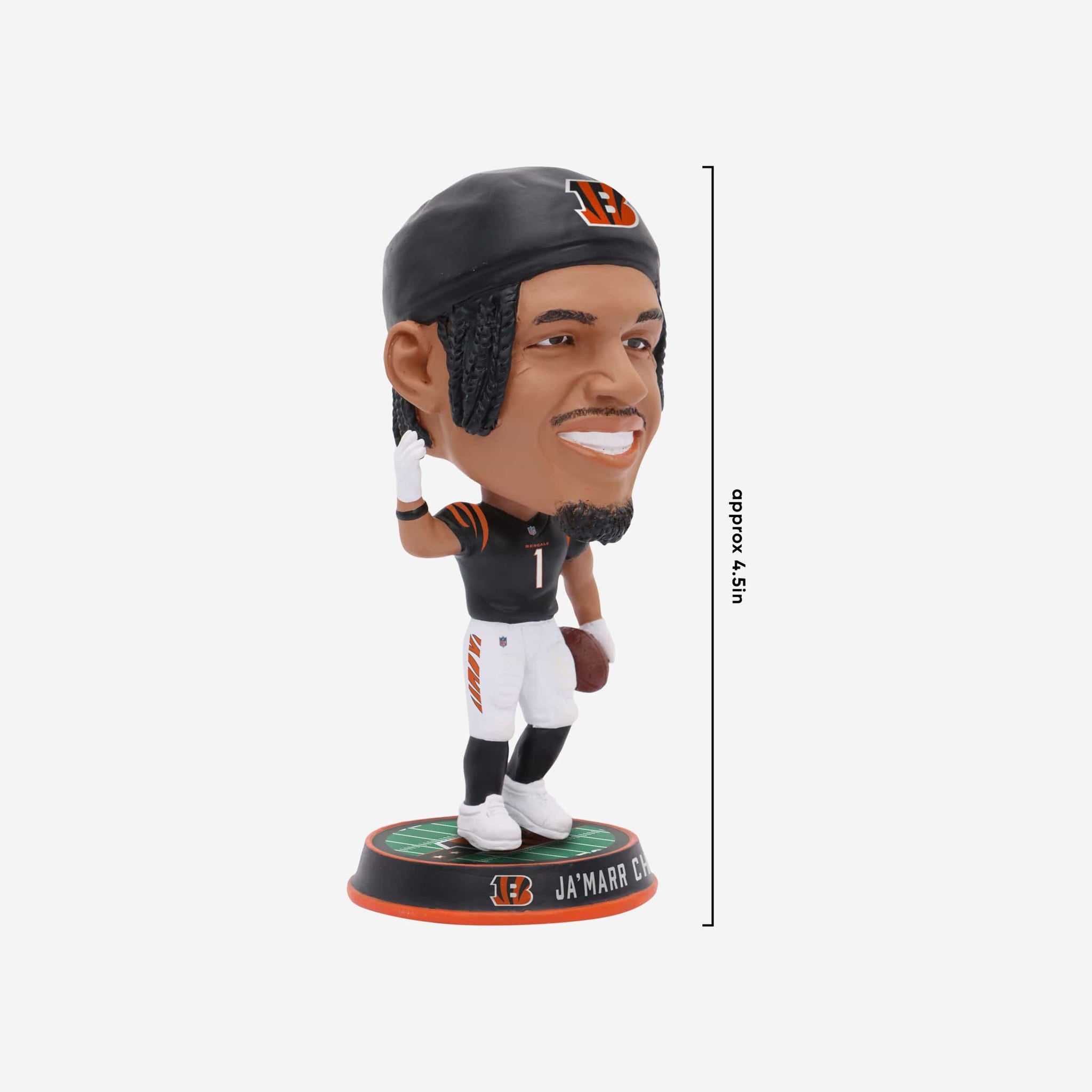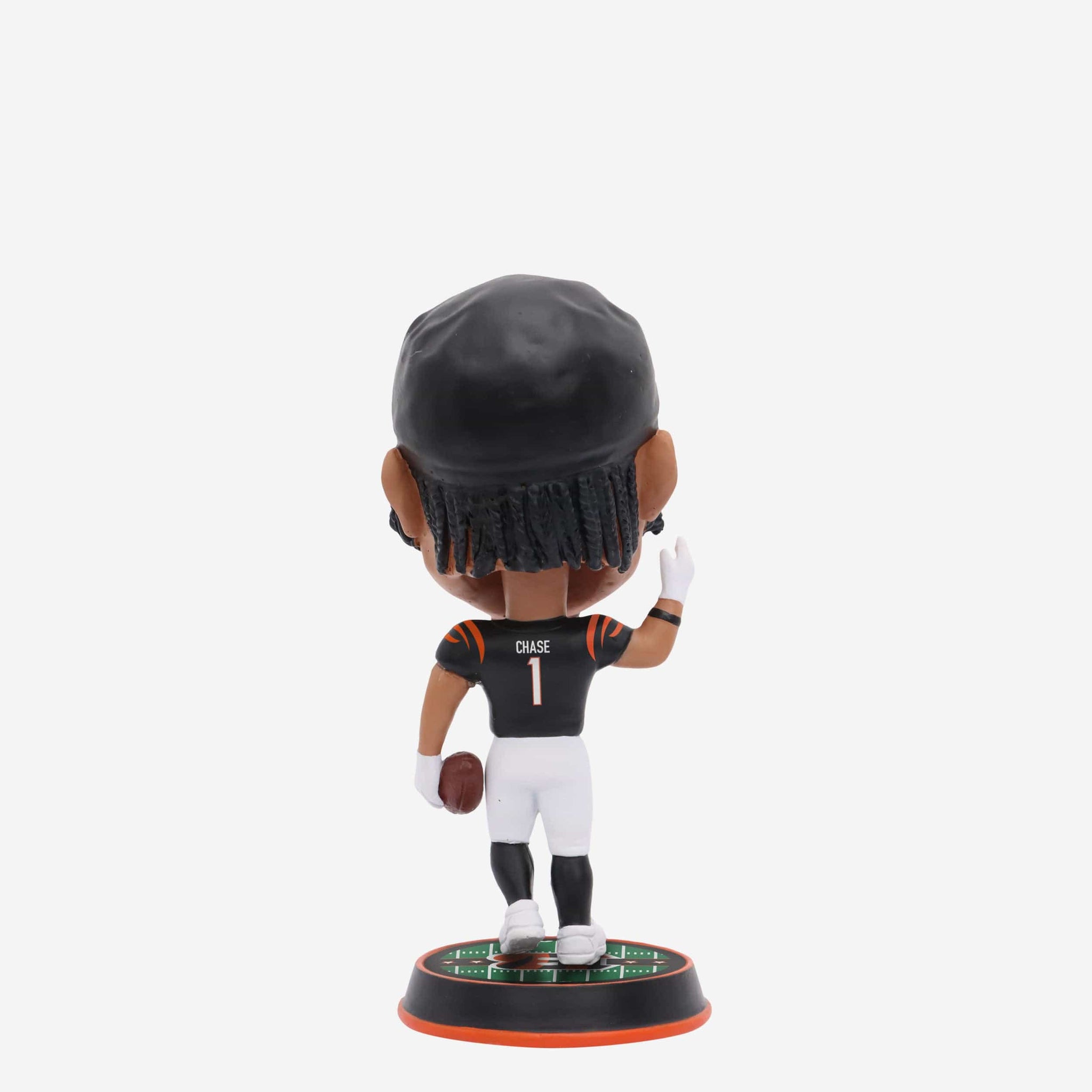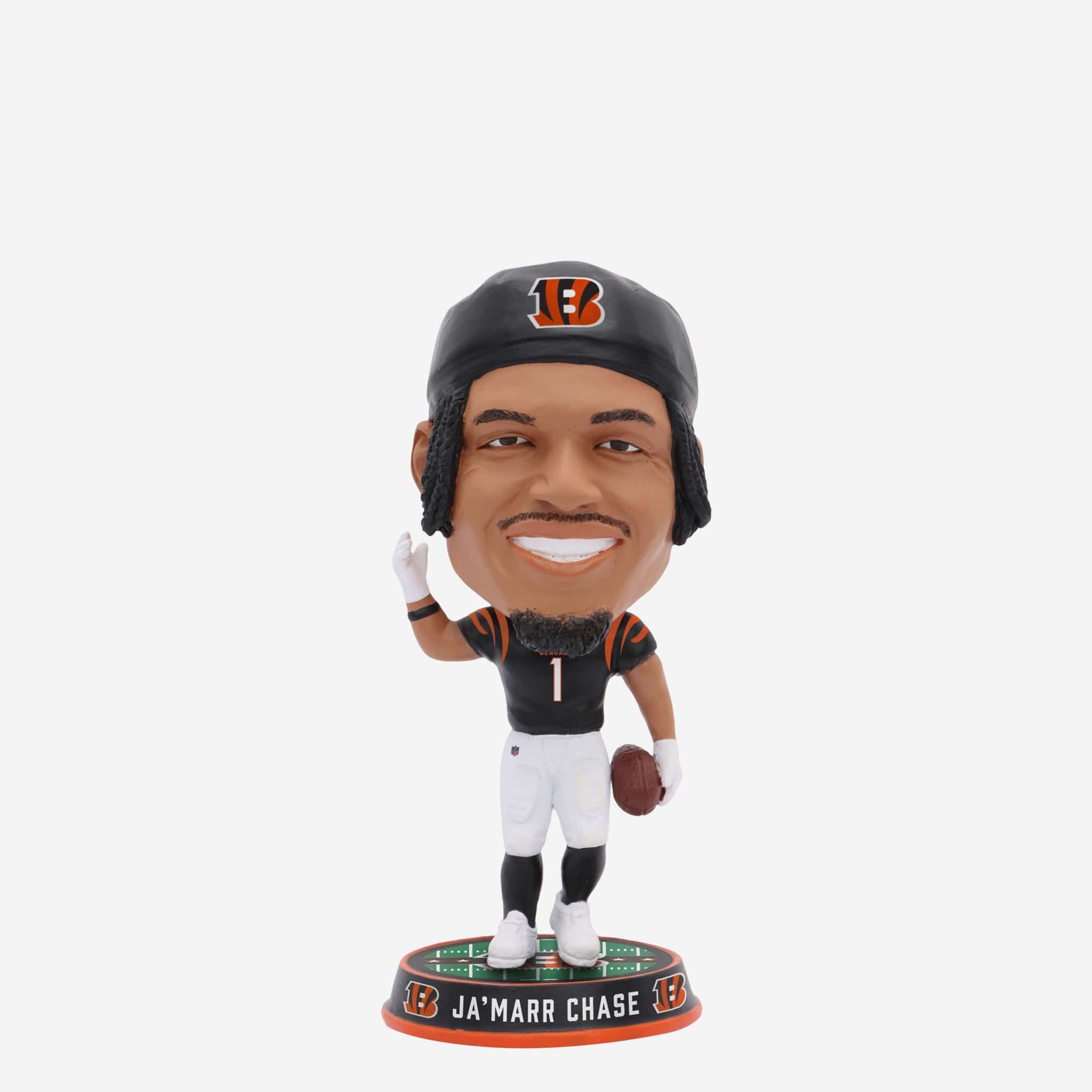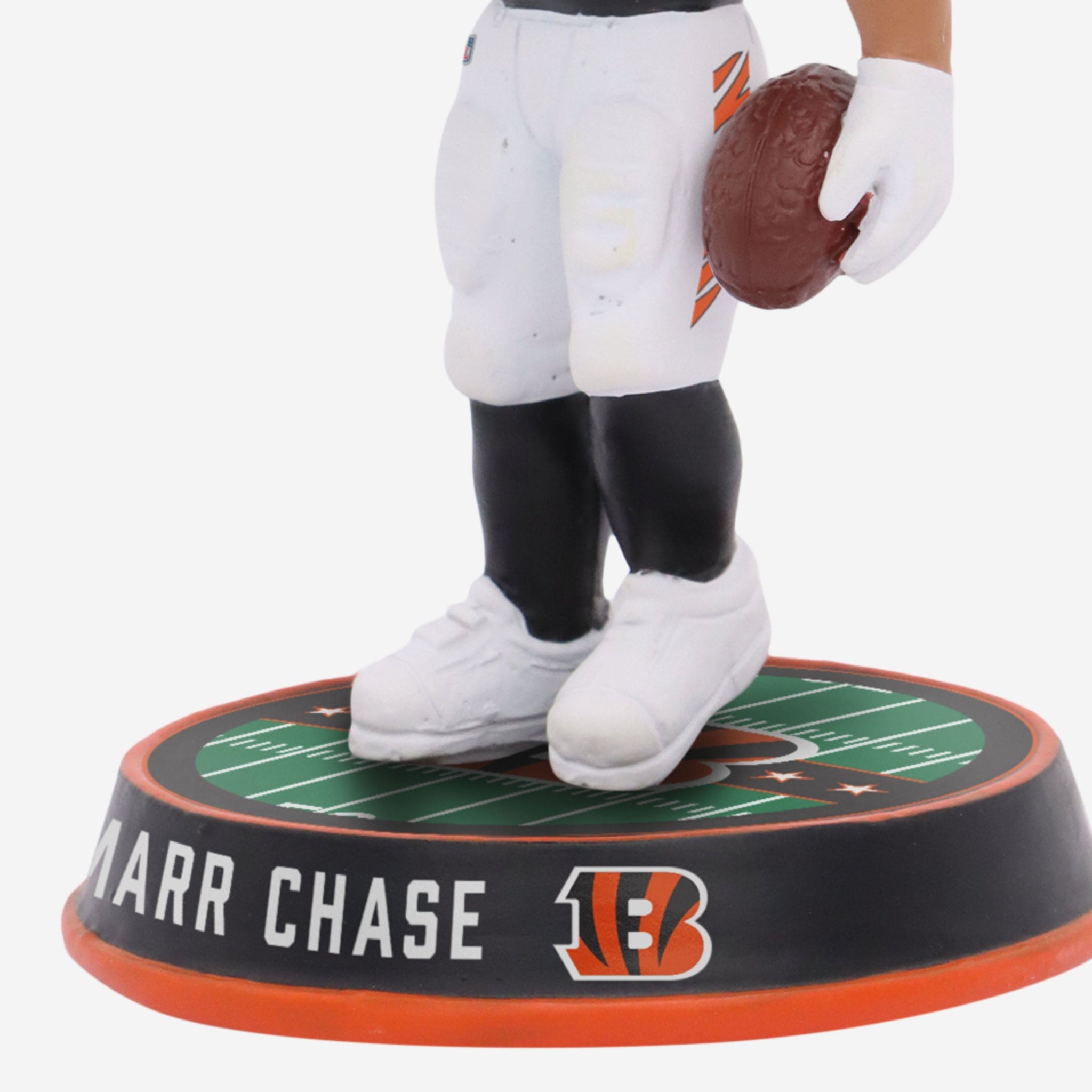 Chase him if you can. This speedy wide receiver is heading for the end zone (and your fancave) with the Ja'Marr Chase Cincinnati Bengals Field Stripe Mini Bighead Bobblehead.