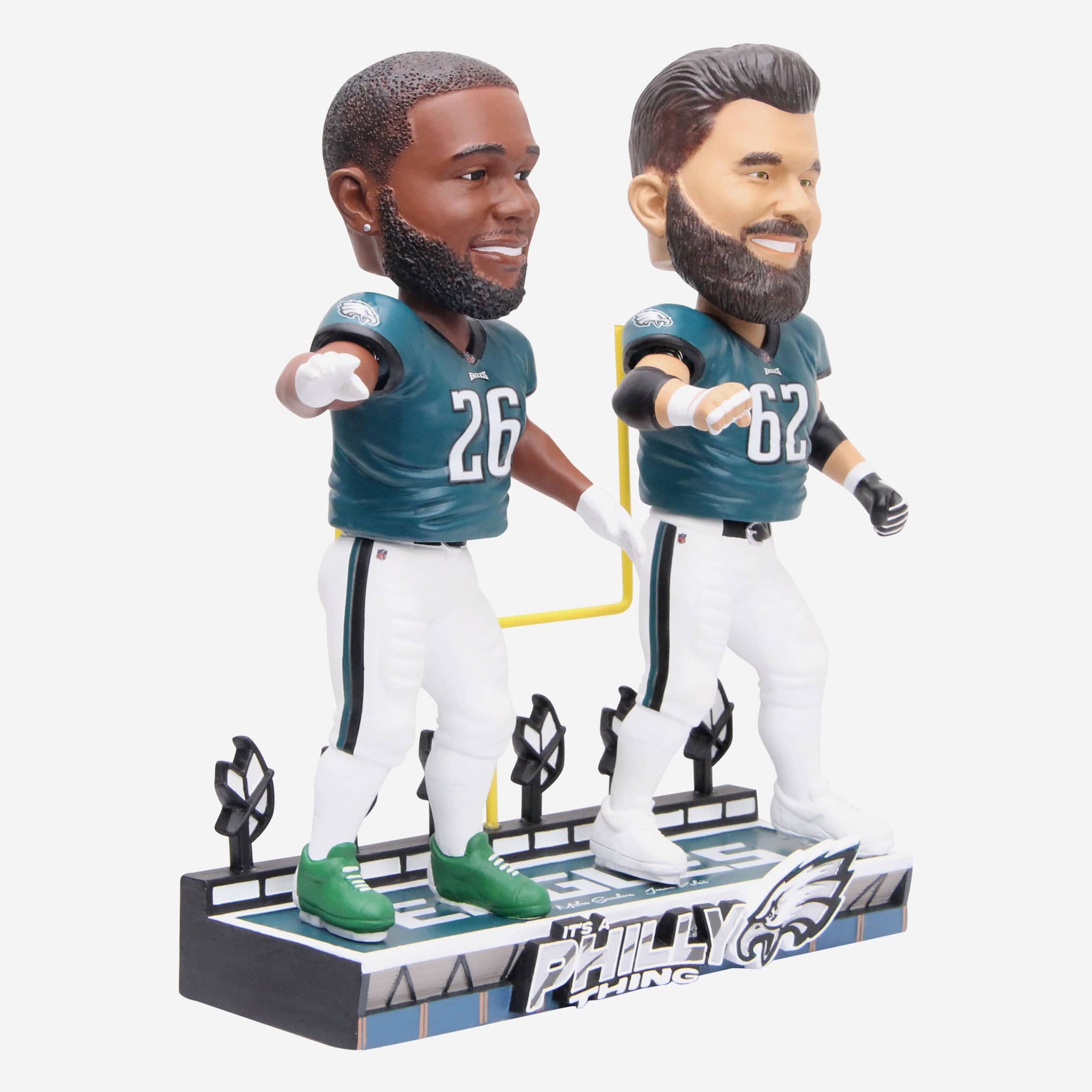Boogie down with the Birds. This duo is busting out the moves after a big win, and you get in rhythm and hit the dance floor with them when you add this Jason Kelce & Miles Sanders Philadelphia Eagles Dancing Dual Bobblehead to your collection.