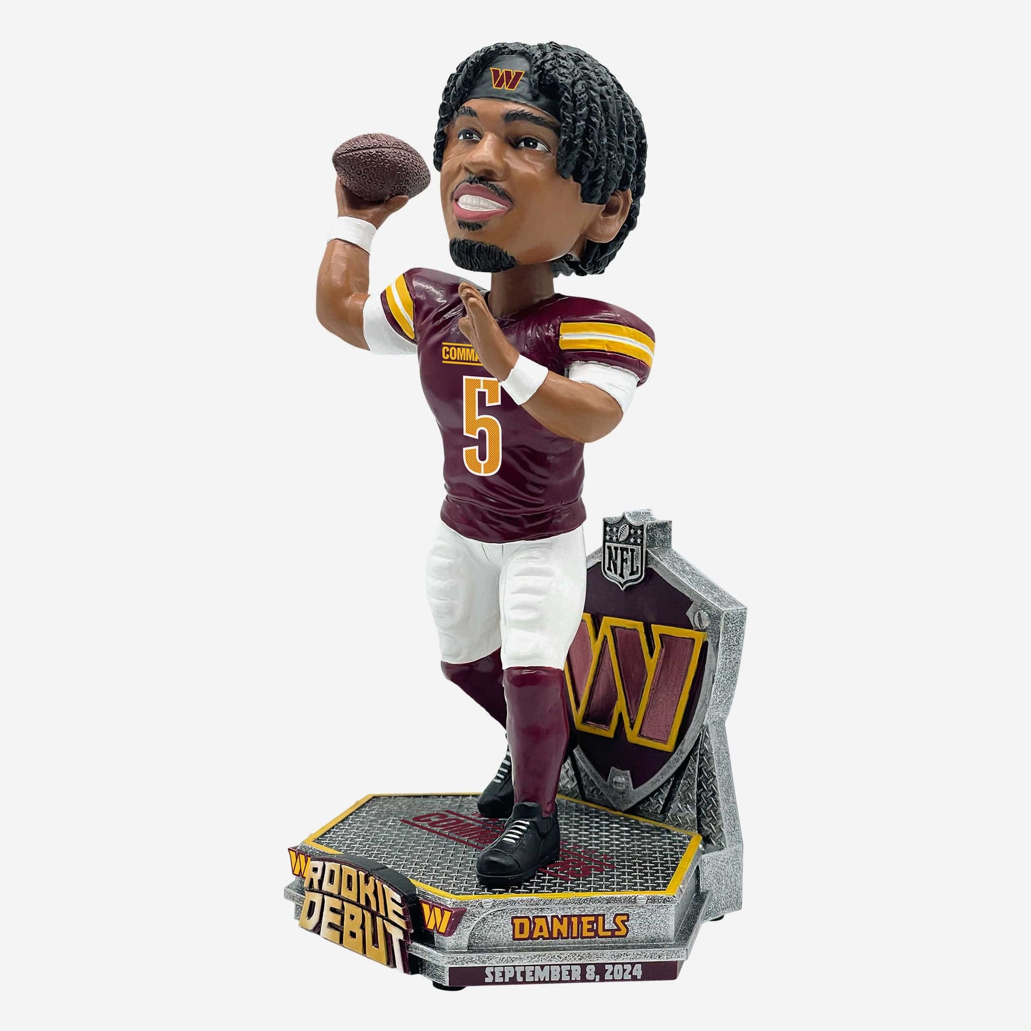 Welcome to the league, Daniels. Celebrate the first of many games to come for this rookie with the Jayden Daniels Washington Commanders Debut Bobblehead.