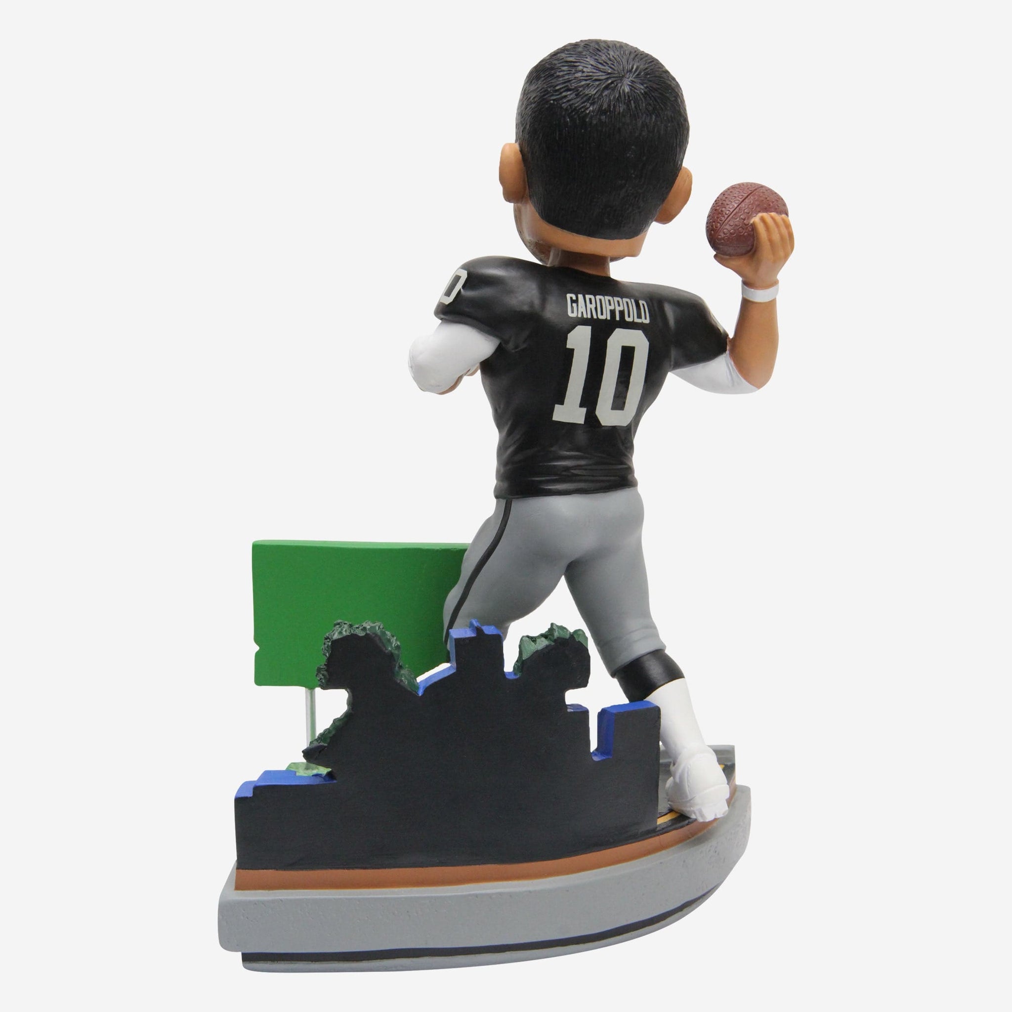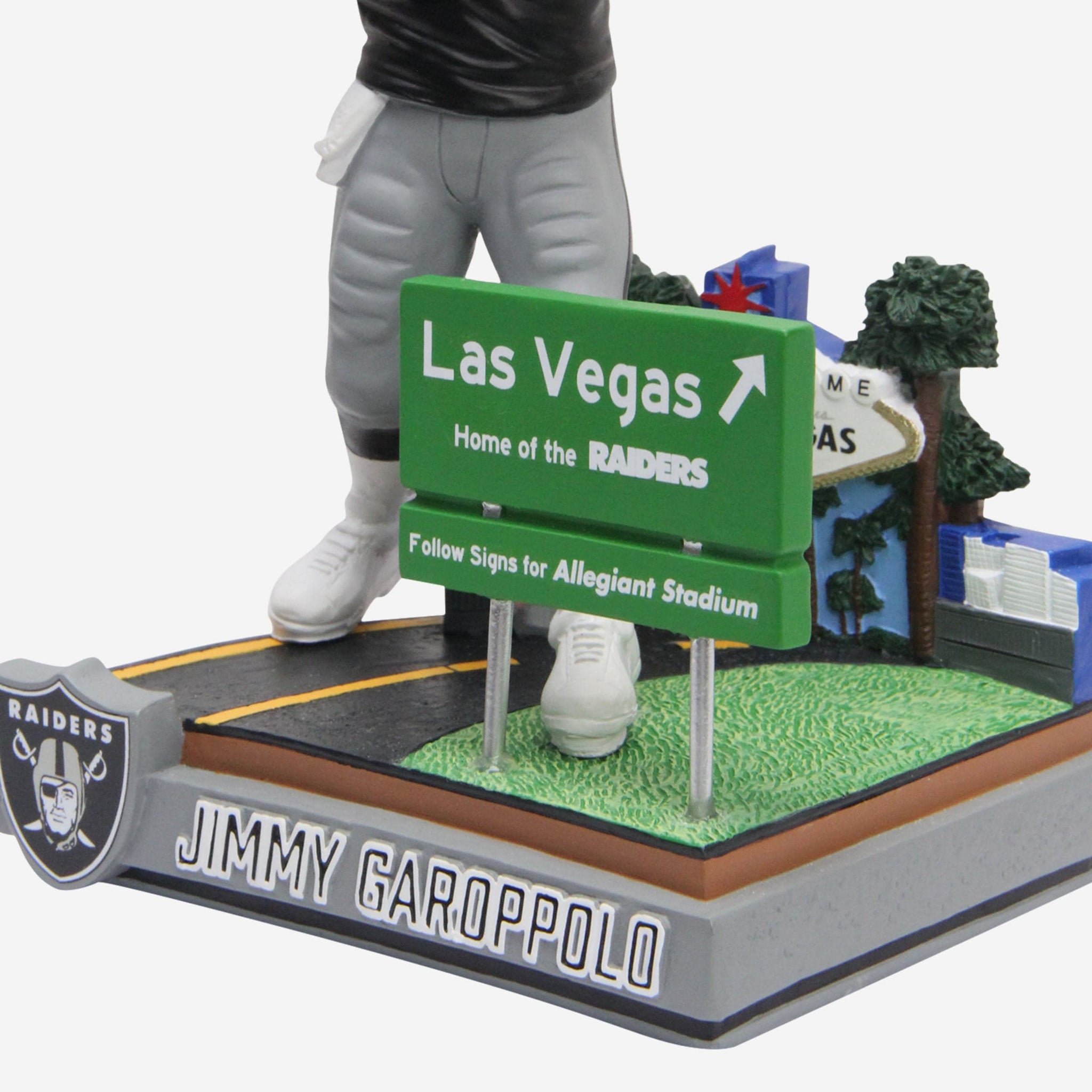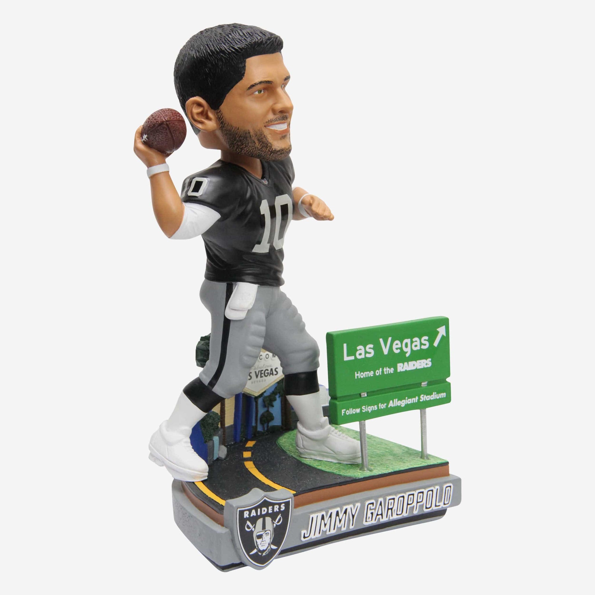 Turns out the "G" in "Jimmy G" stands for "Going to Vegas." Roll out the silver and black carpet to welcome your new QB to town with the Jimmy Garoppolo Las Vegas Raiders Next Stop Bobblehead.