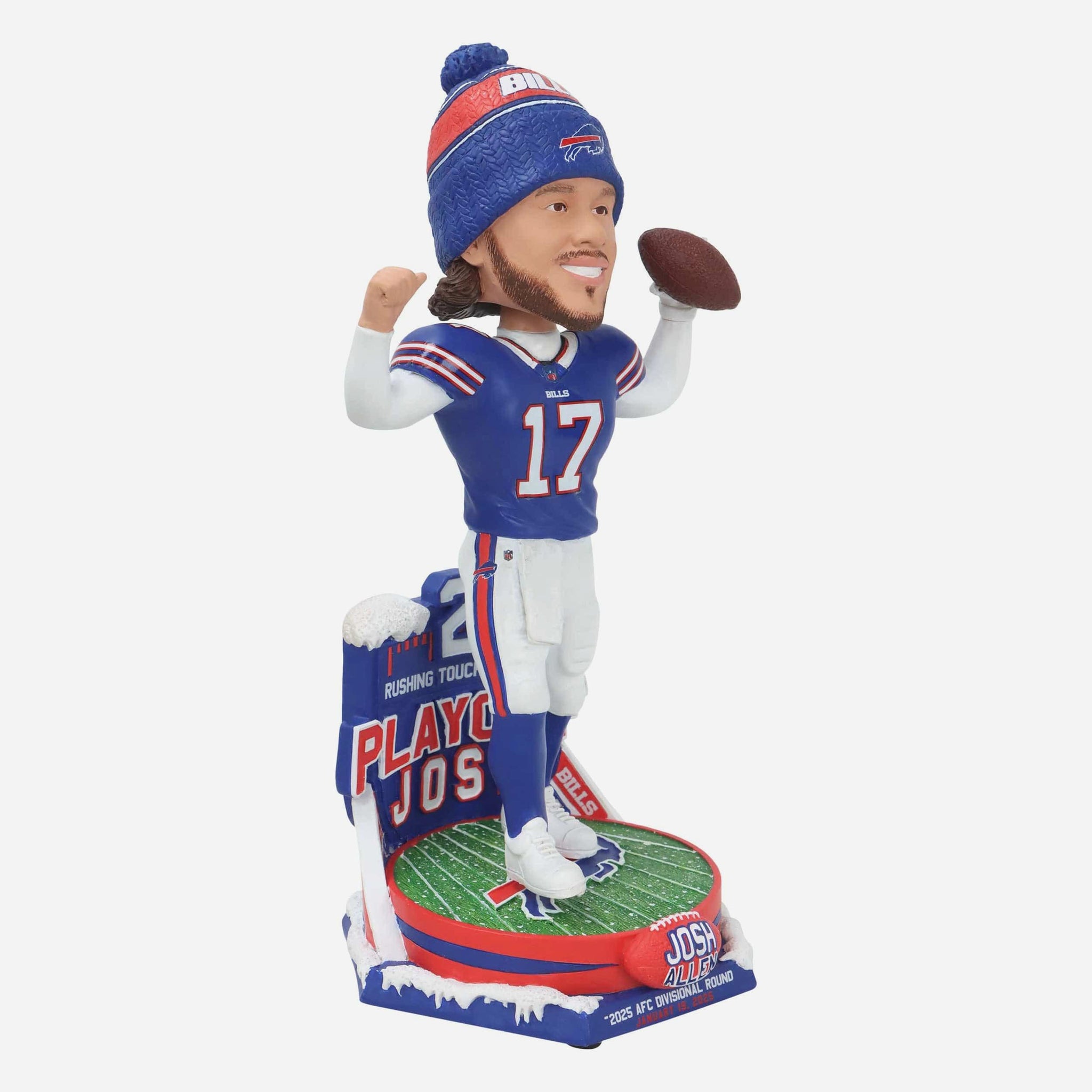 January 19, 2025: Playoff Josh is activated in the win! Get ready to heat up a snowy scene in Orchard Park with this Josh Allen Buffalo Bills Divisional Round Gamebreaker Bobblehead.