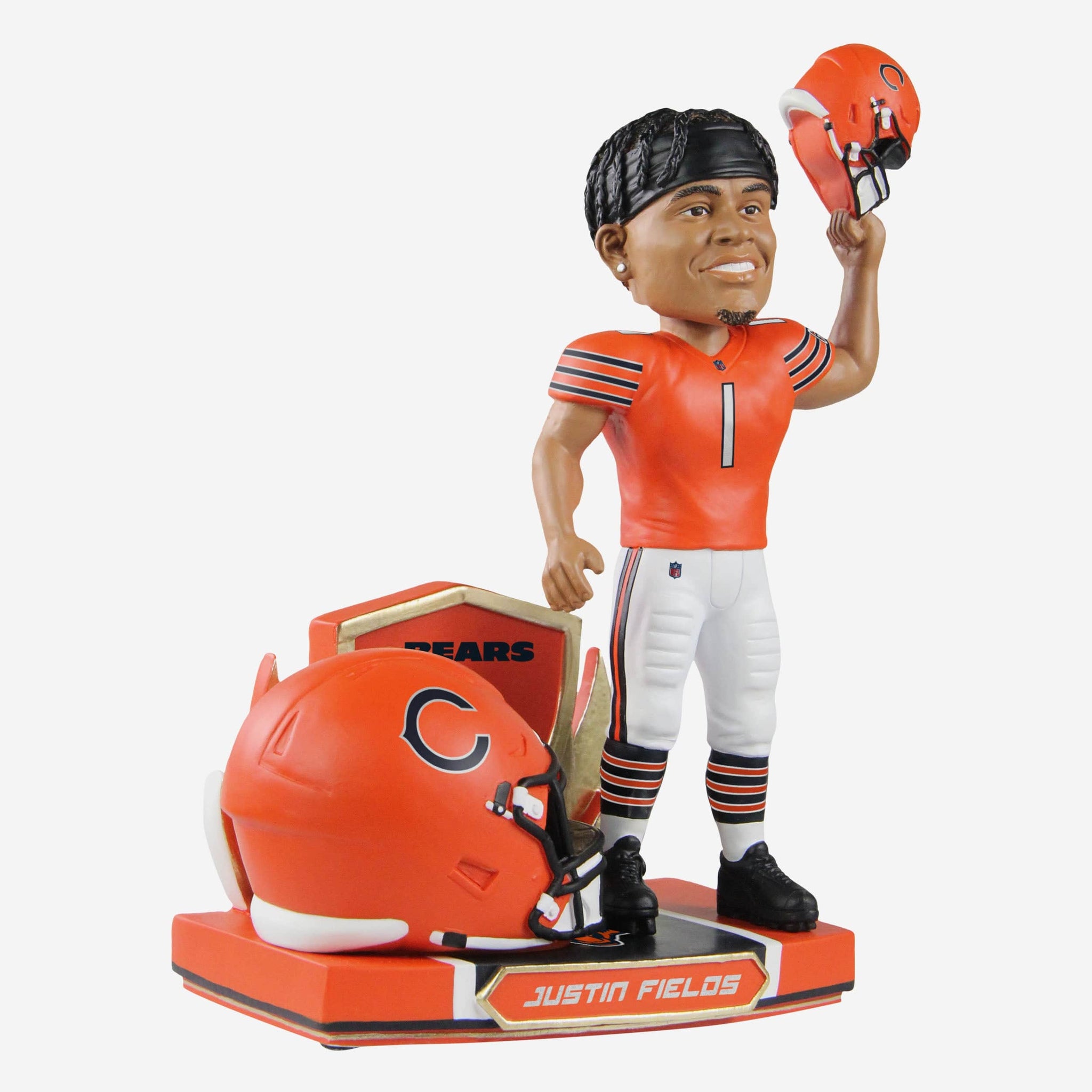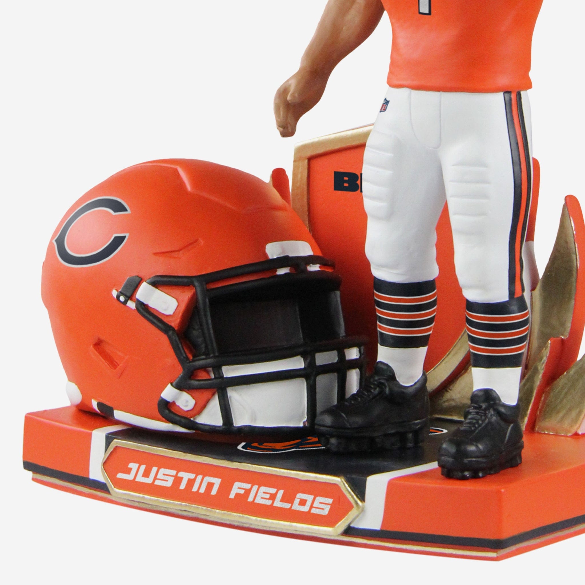 It's time to paint the town orange! Bear Down and add some color to your collection with this Justin Fields Chicago Bears Alternate Helmet Bobblehead.