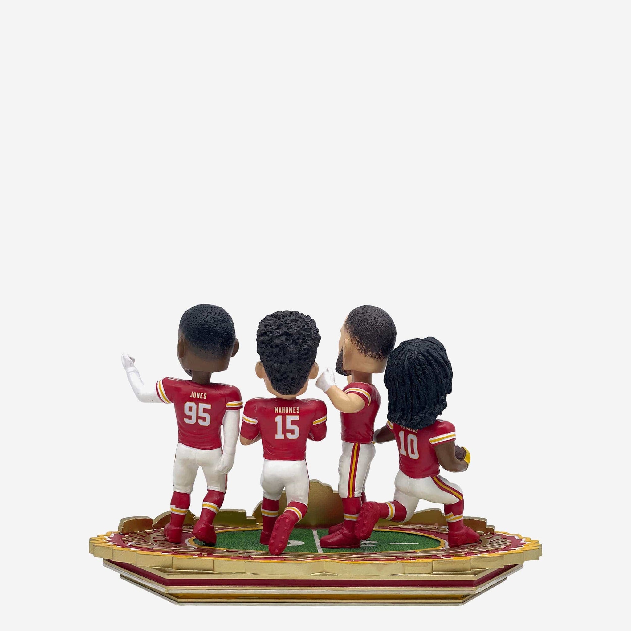 - Portrays Isiah Pacheco, Travis Kelce, Patrick Mahomes, and Chris Jones wearing their red gameday uniforms, ready to wrap up another division crown
