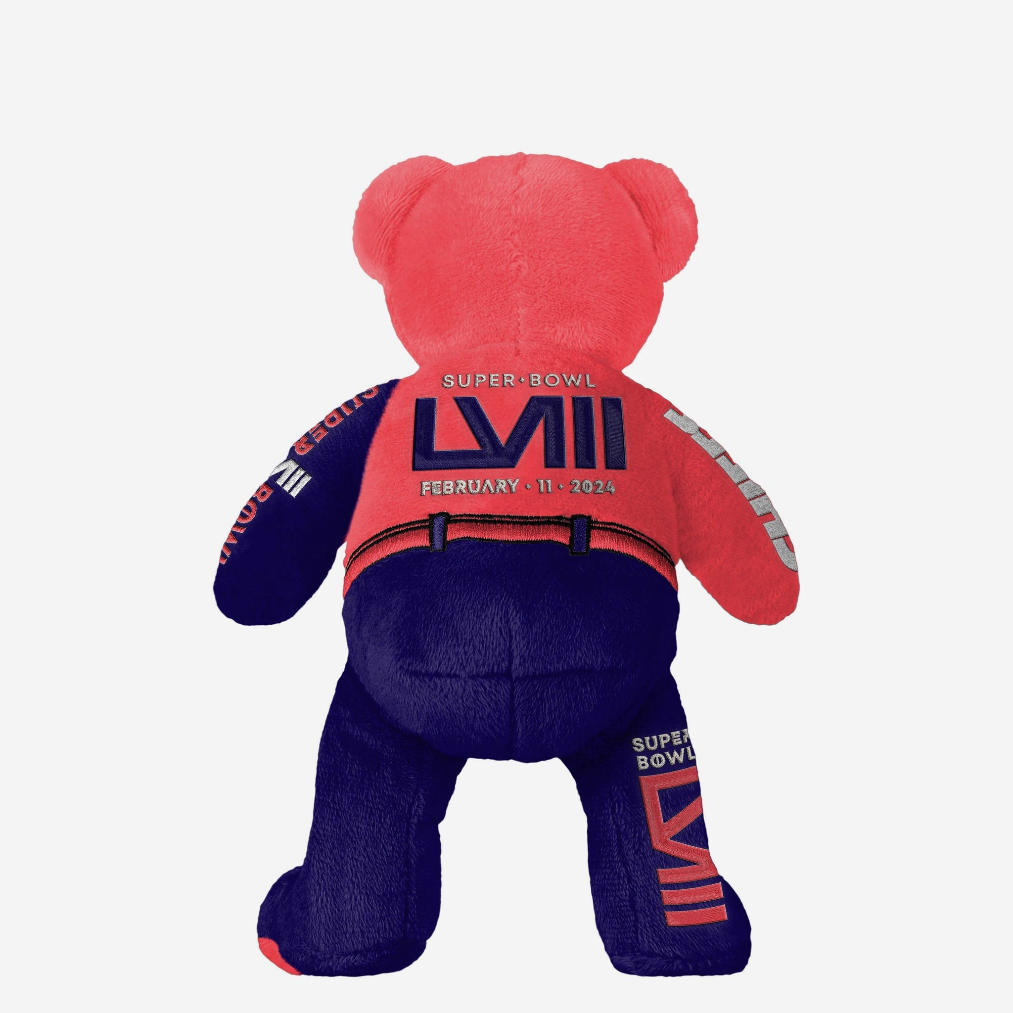 - Super Bowl LVIII wordmark displays on right ear, left arm, right leg, and bottom of right foot for an extra level of celebration