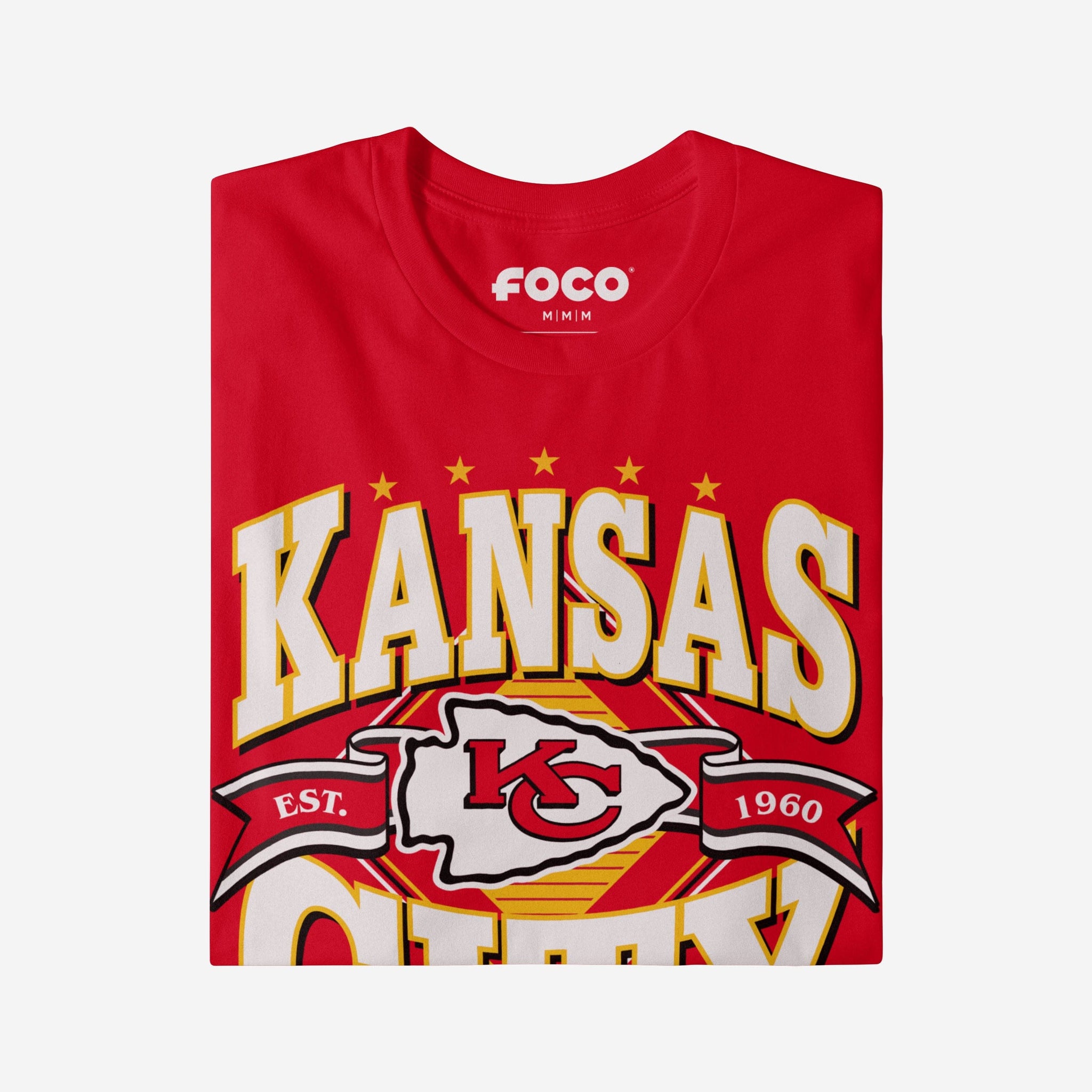 Tired of having to answer questions like, “Who’s your favorite team?” Here’s a shirt that will answer them for you. Show off your fandom and celebrate your team’s decades-spanning awesomeness with the Kansas City Chiefs Established Banner T-Shirt.