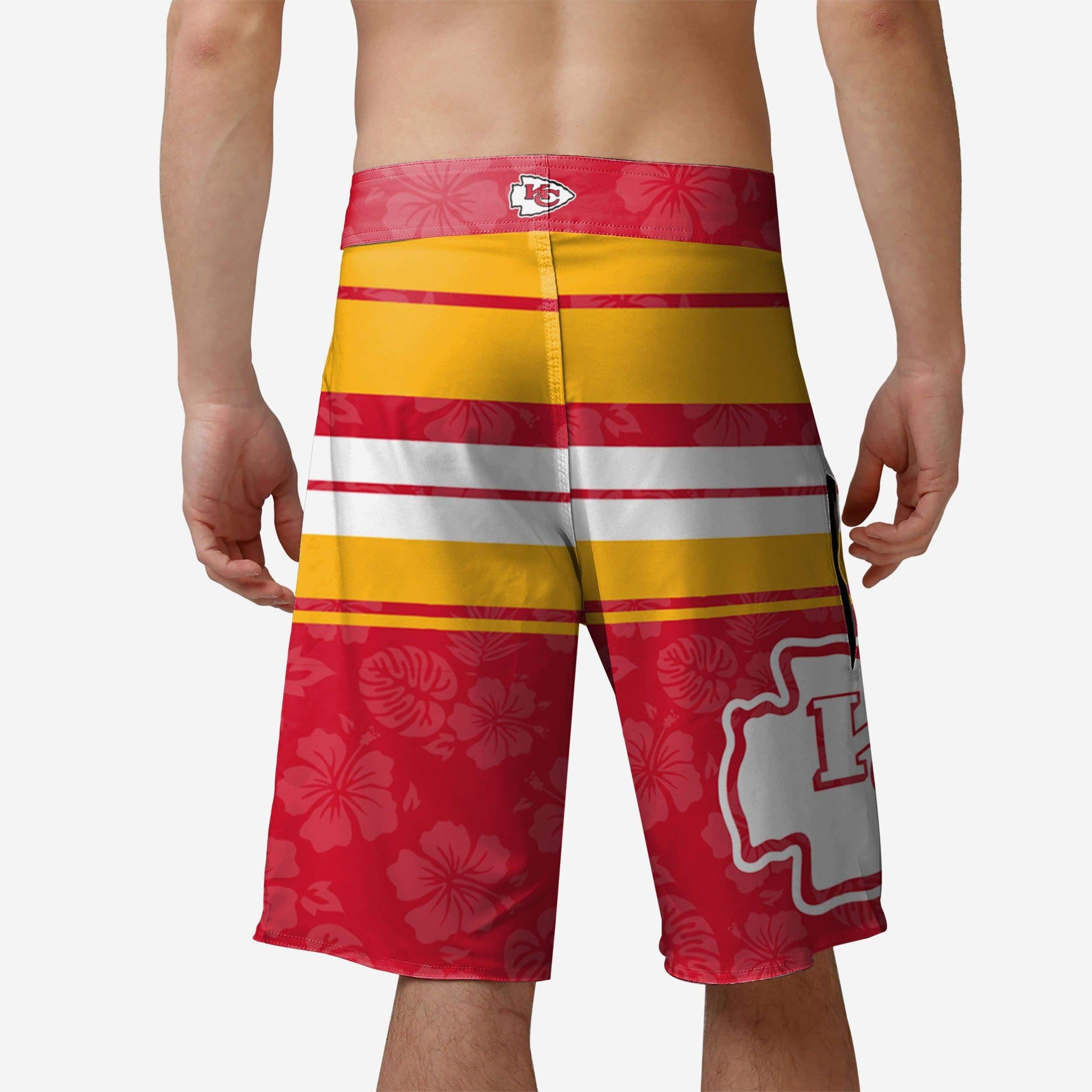 Kansas City Chiefs Hibiscus Boardwalk Stripe Boardshorts FOCO S - FOCO.com