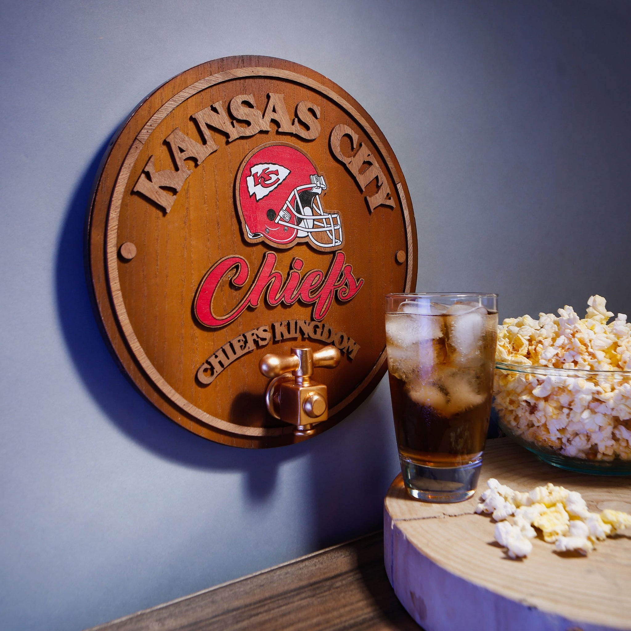 Who needs a crowded sports bar when you and your friends can just watch the game in the fancave with this Kansas City Chiefs Keg Tap Sign on display?