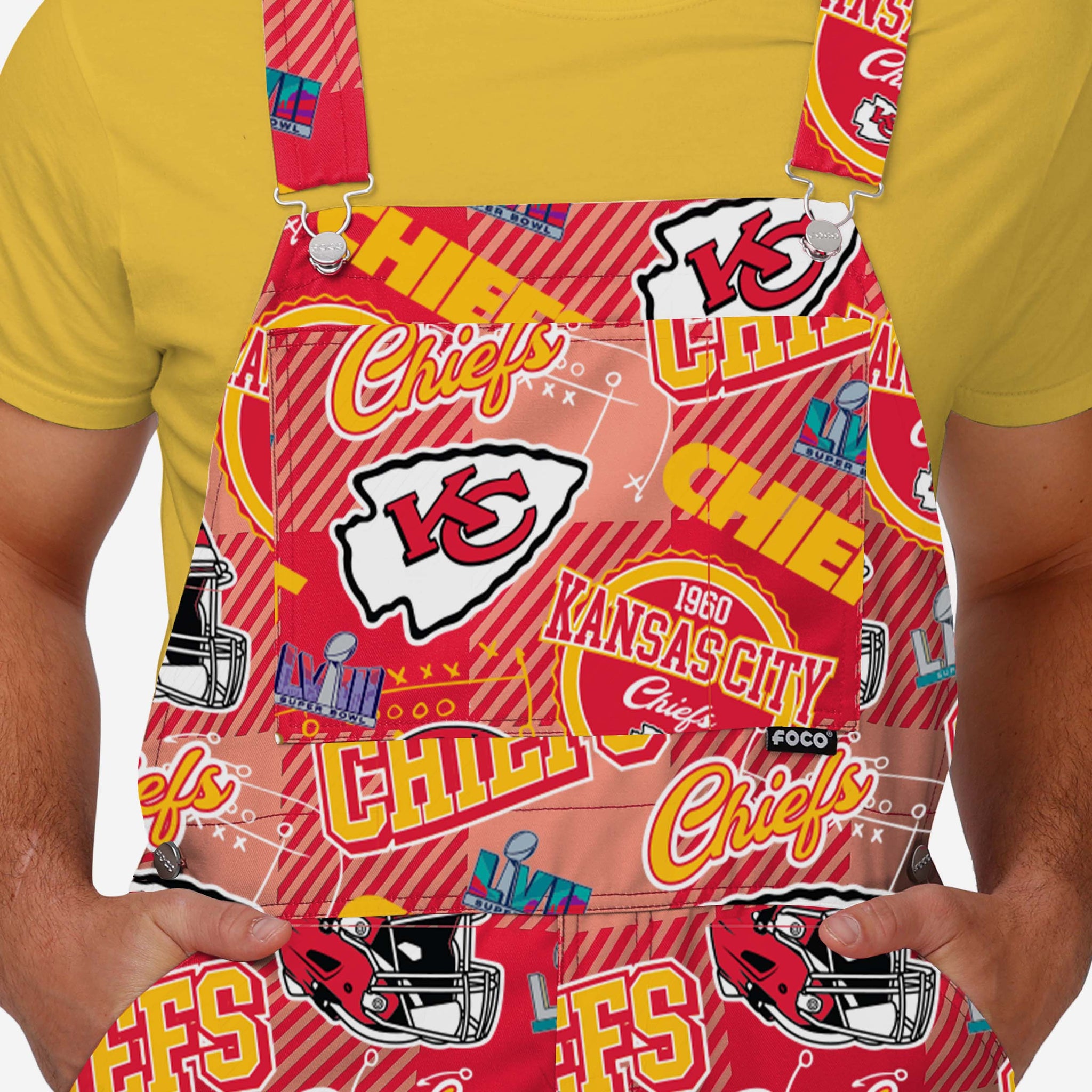 Kansas City Chiefs Mens Historic Print Bib Overalls FOCO - FOCO.com
