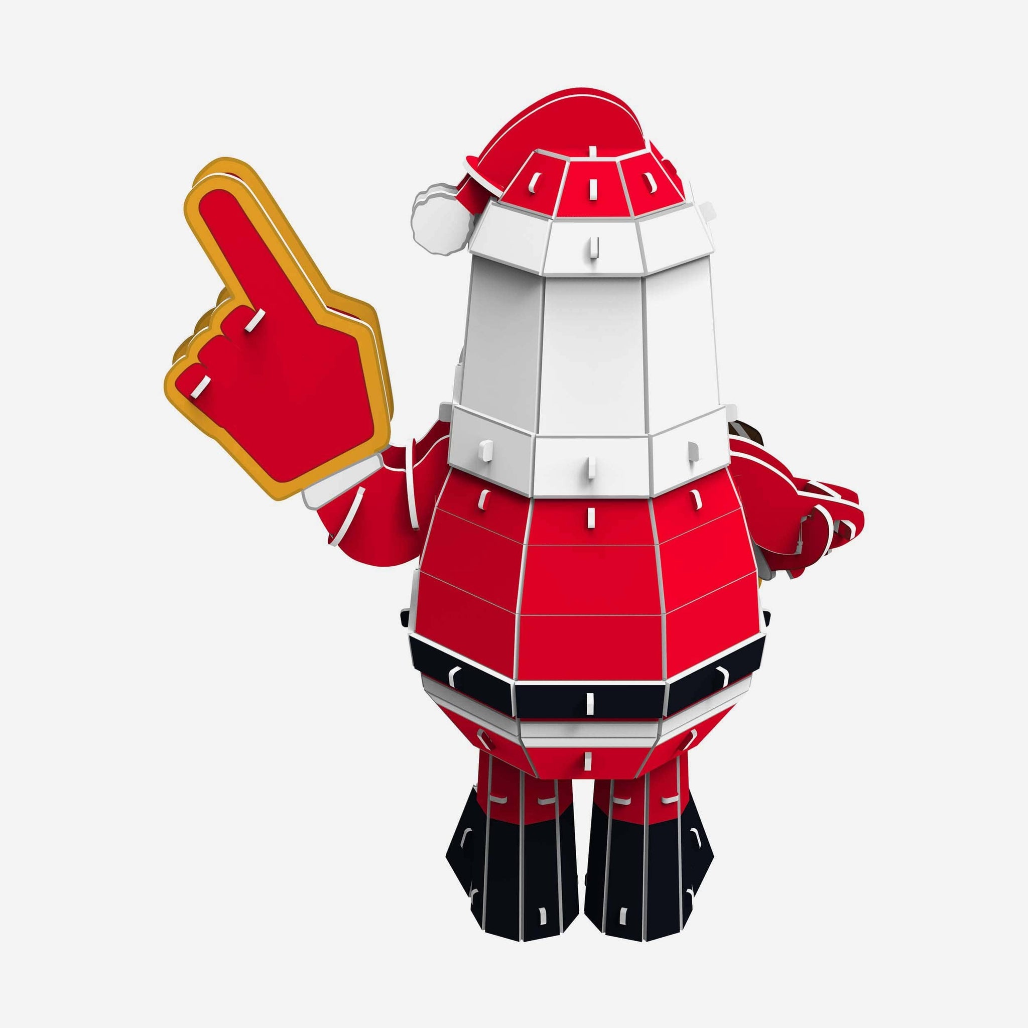 - Team-colored Santa outfit and fan finger with team logo displays on hat, shirt, and fan finger, in case there were any doubts where your allegiances lie