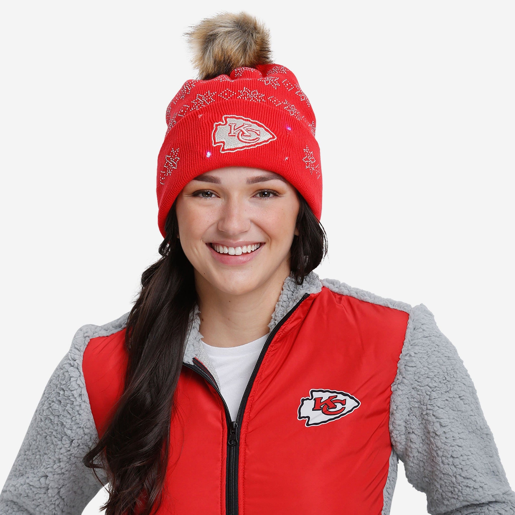 Chilly weather? Snow day? All that means is an opportunity to let your team spirit shine brighter than ever before! Make sure your fan fashion shines like a beacon of greatness by rocking this Kansas City Chiefs Rhinestone Light Up Beanie!