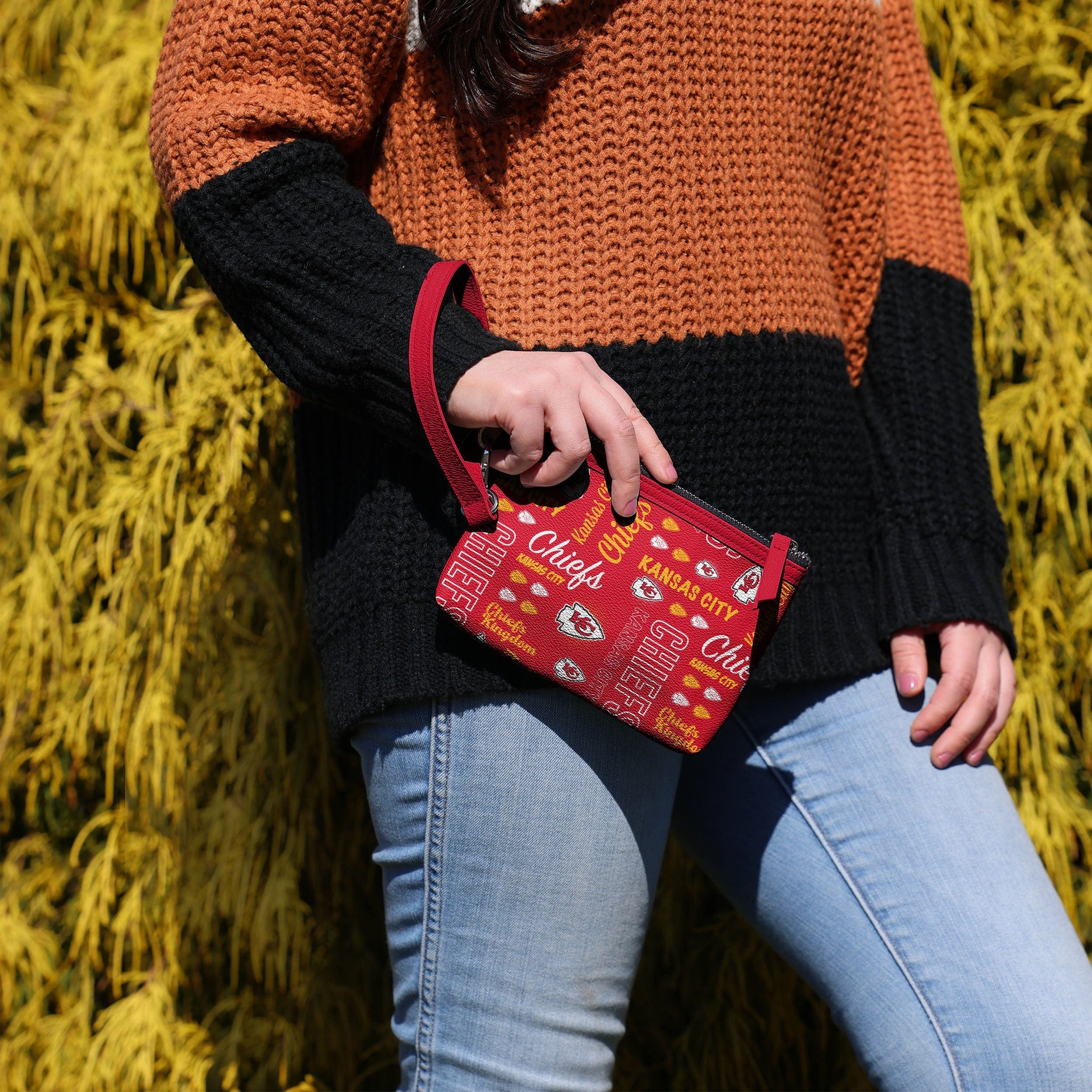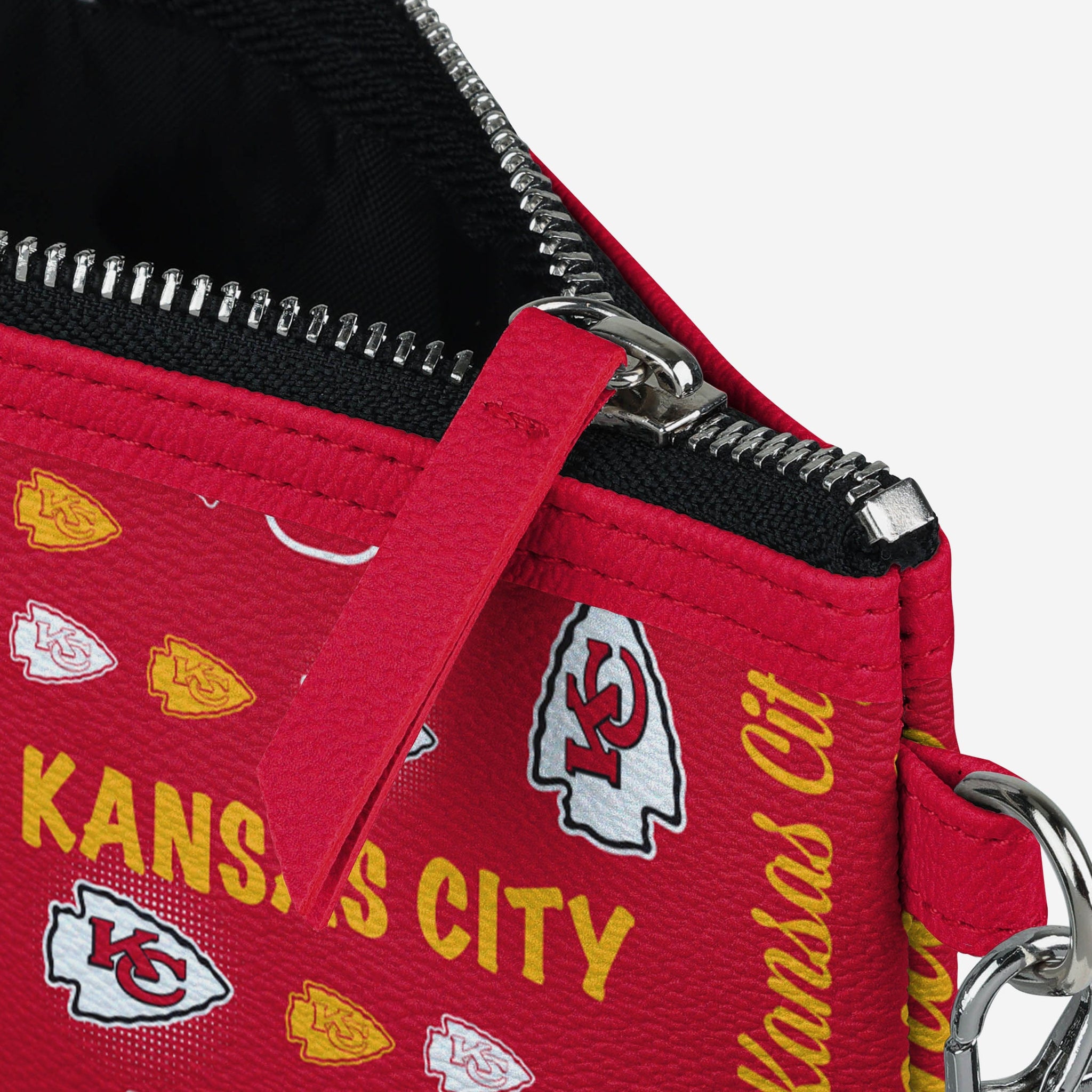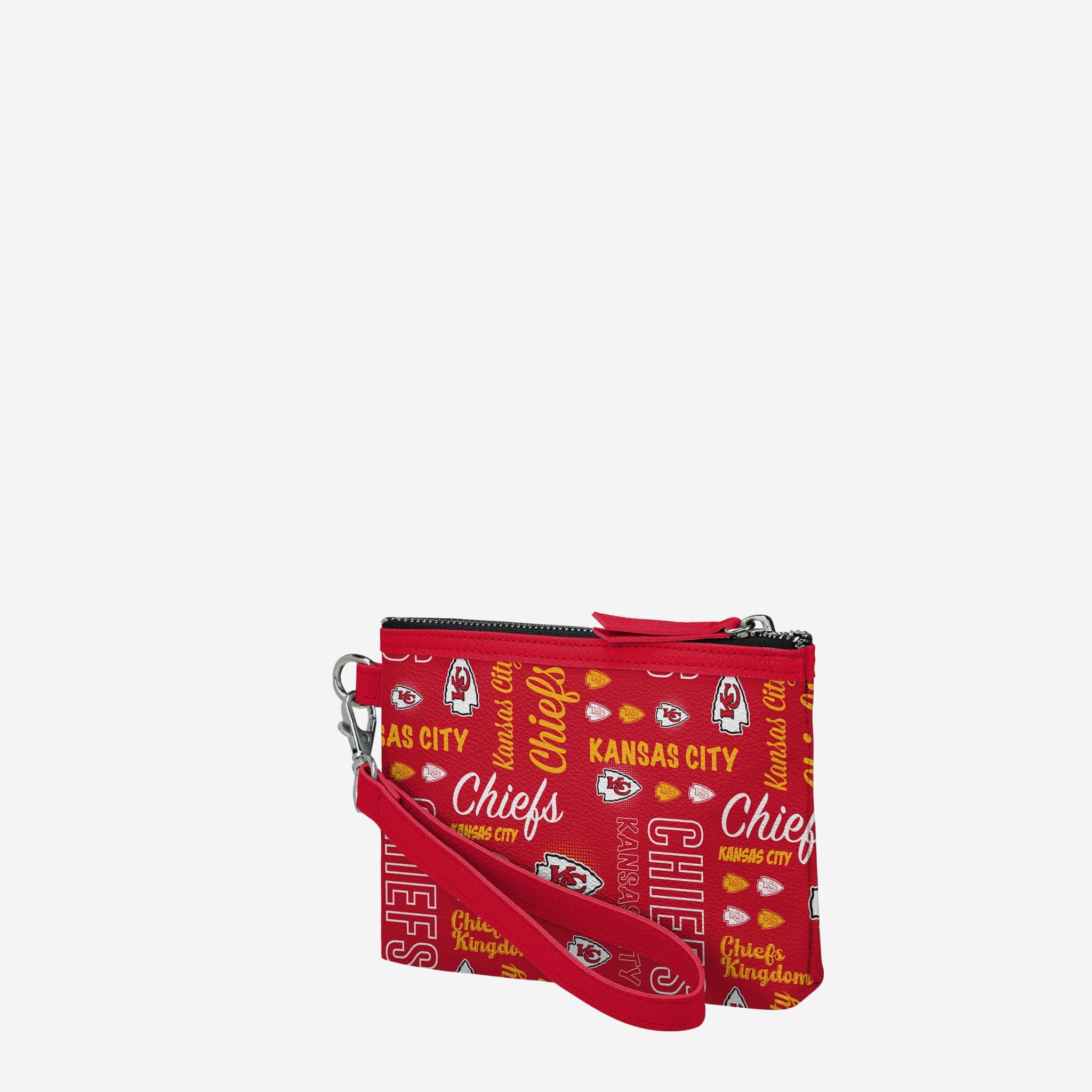 Gamedays on the go are easier and more fashionable than ever before thanks to this Kansas City Chiefs Spirited Style Printed Collection Repeat Logo Wristlet.
