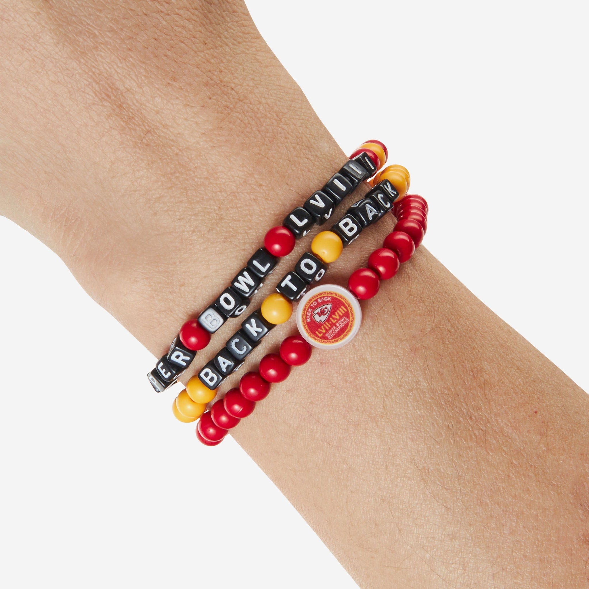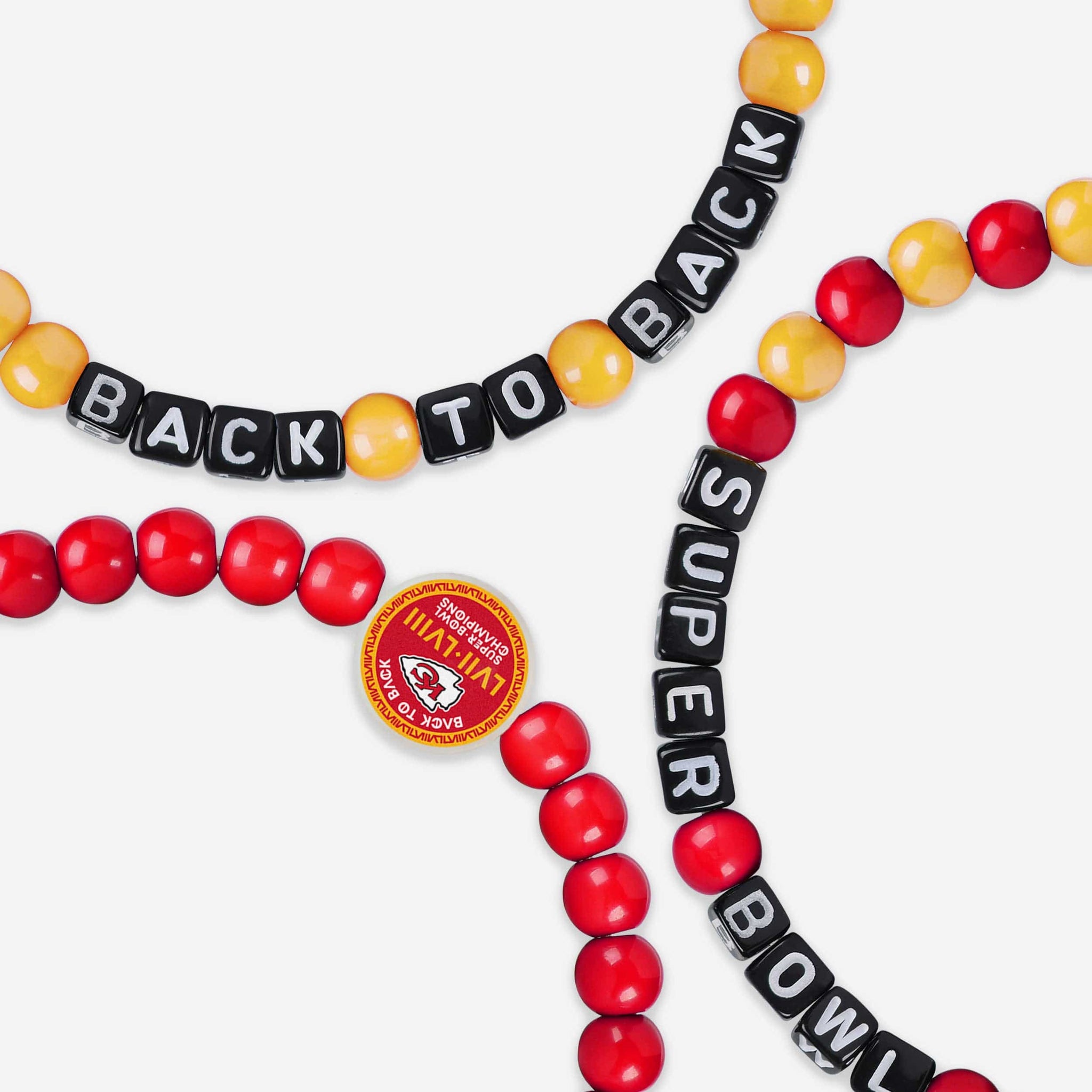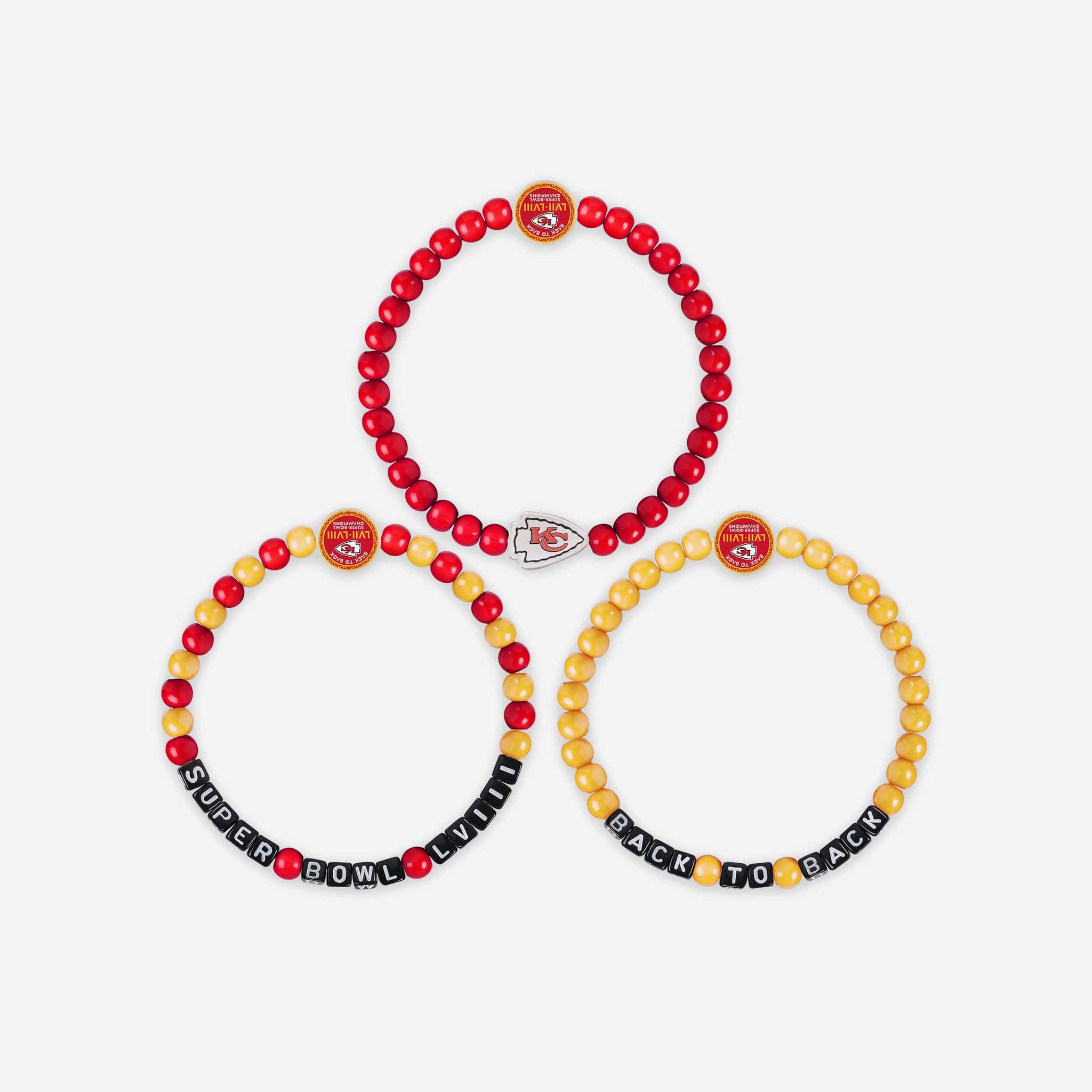 Accessorize and maximize your fandom while impressing your fellow fans with this Kansas City Chiefs Super Bowl LVIII Champions 3 Pack Beaded Friendship Bracelet. These matching friendship bracelets have an all-over team-colored design, team logo displays, and championship logo displays, which makes them the perfect way to show your support for the Kansas City Chiefs and get in on the latest accessory craze.
