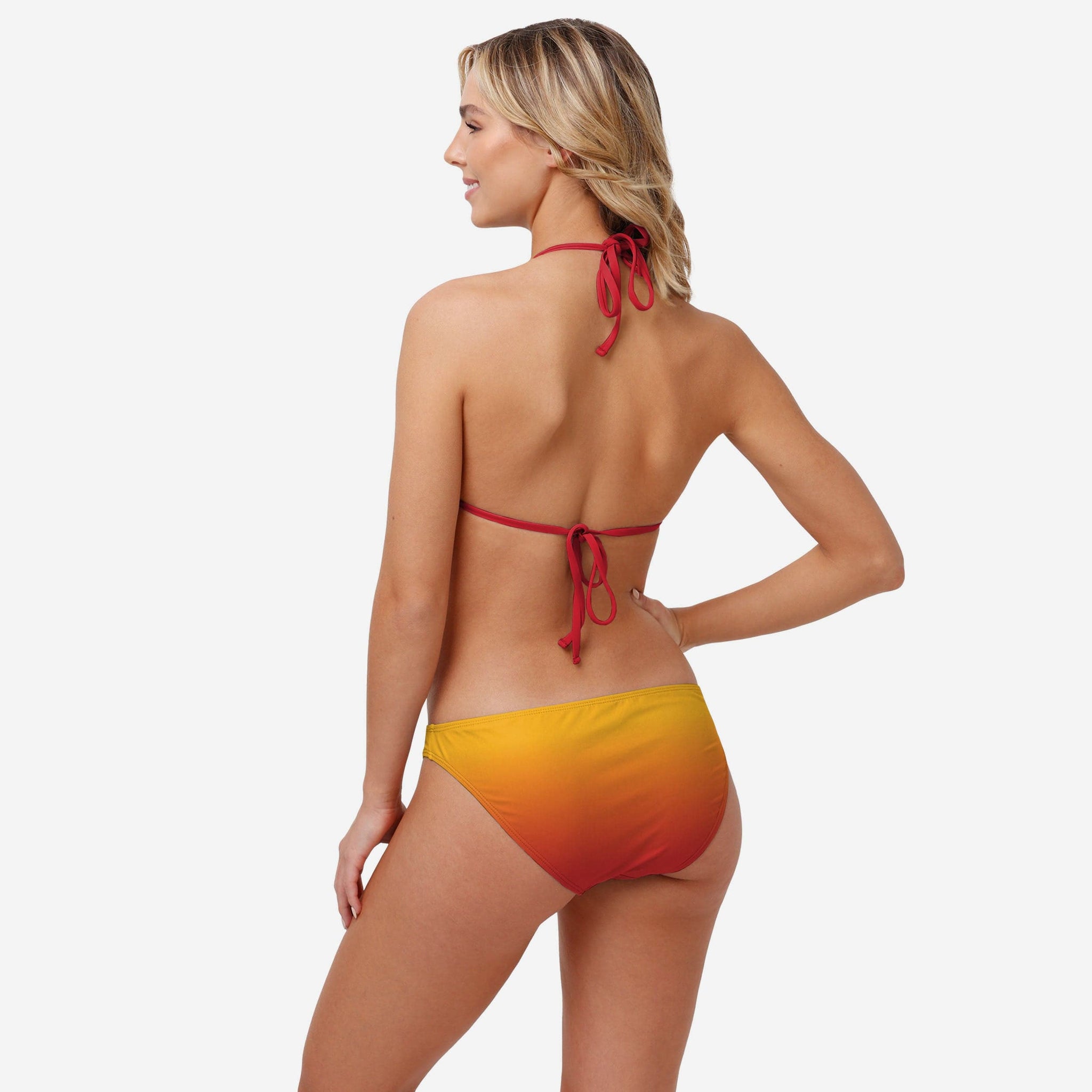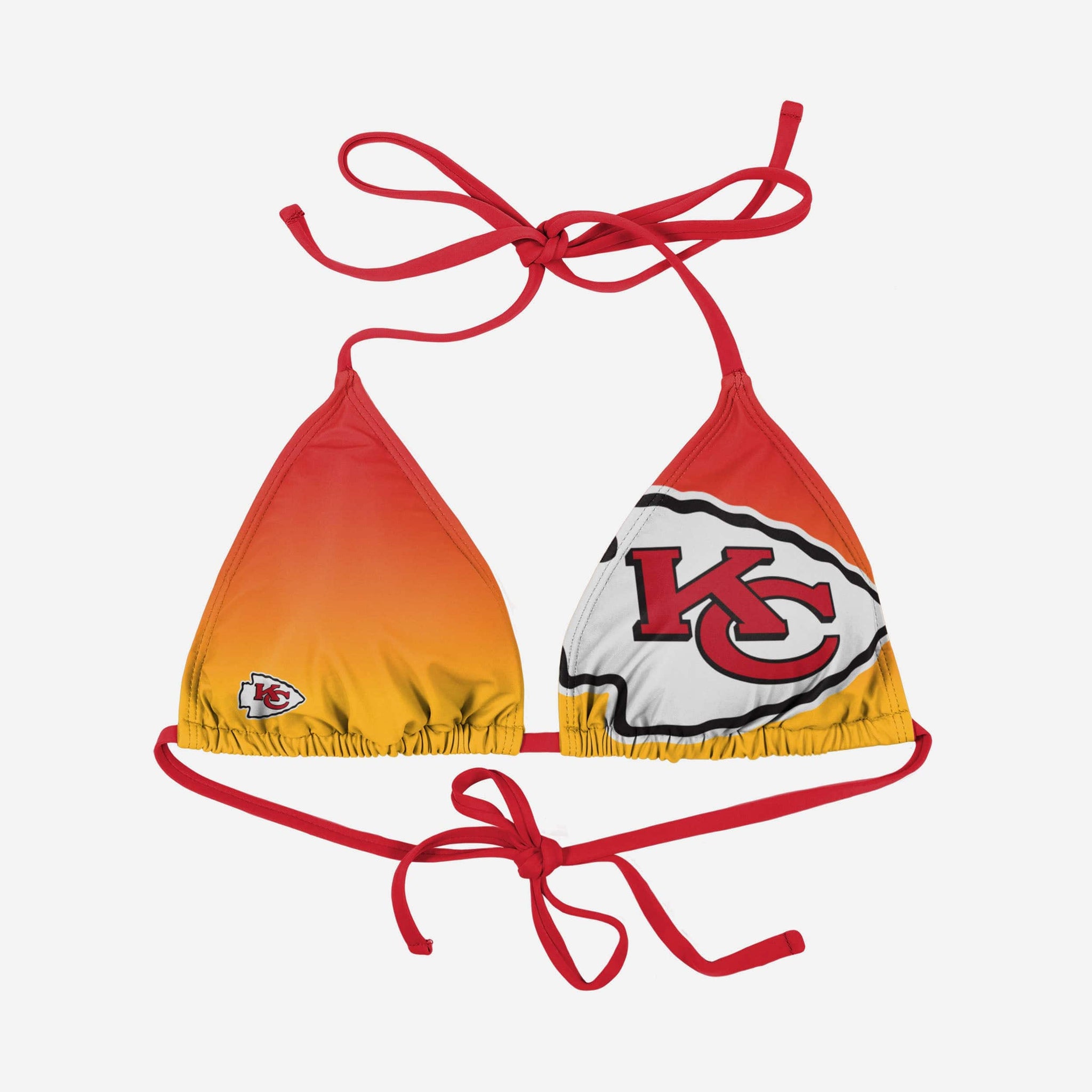 Sun, sand, and fan fun in the summer sun! Let no one second guess your team loyalty this summer with the Kansas City Chiefs Women's Gradient Big Logo Bikini Top.