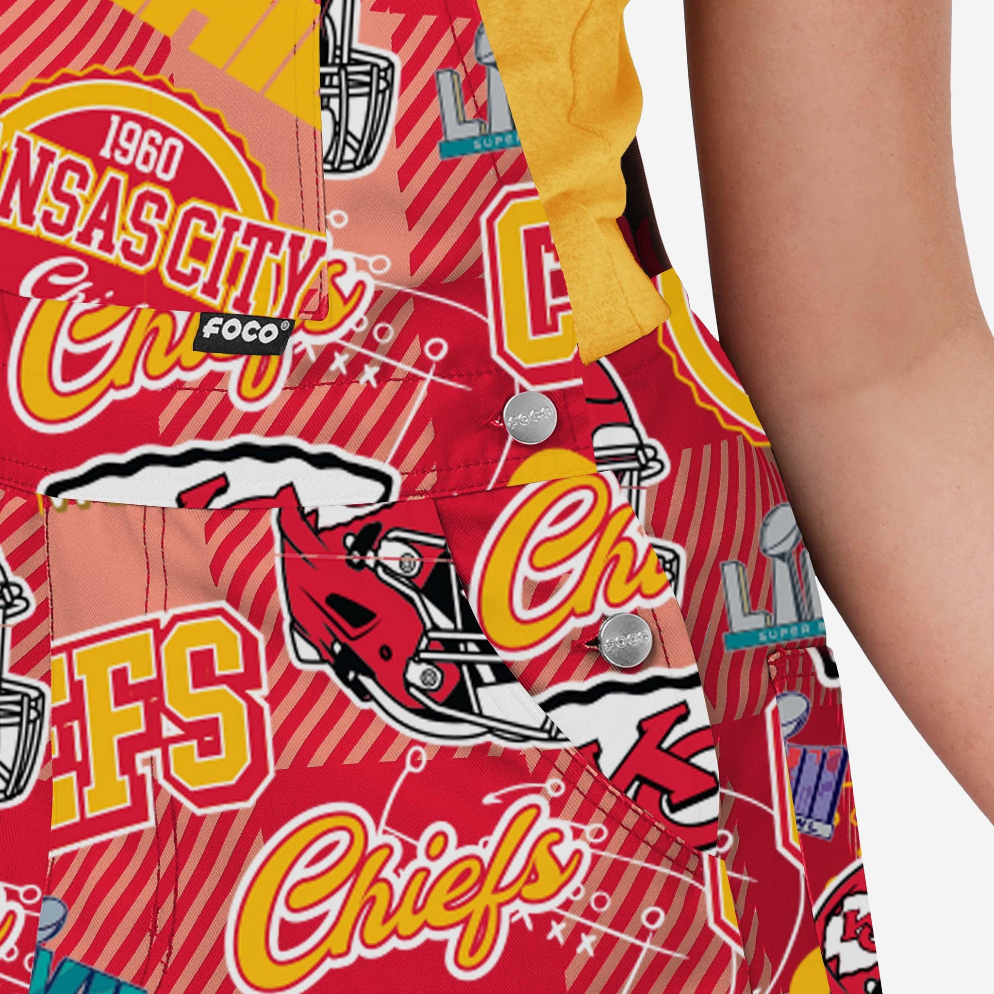 Show your team spirit in these stylish and comfortable Kansas City Chiefs Women's Historic Print Bib Overalls. With their all-over team-colored design and bold team logo displays, these Overalls are the perfect way to show your support for the Kansas City Chiefs while showing off your squad’s history, putting all that throwback glory on display.