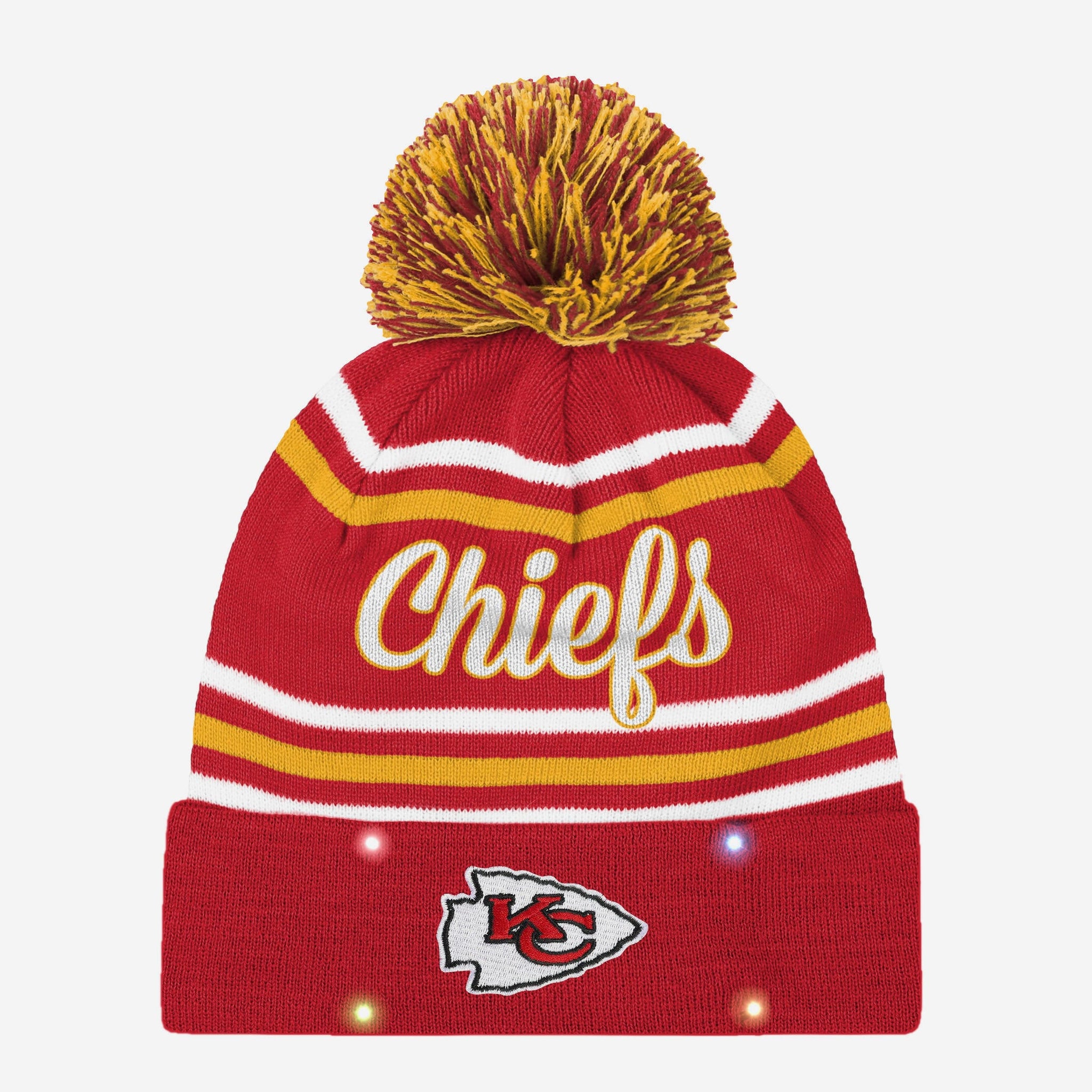 Turn that snow day into a glow day. The weather outside may be frightful, but wearing this Kansas City Chiefs Women's Wordmark Script Light Up Beanie is truly delightful.