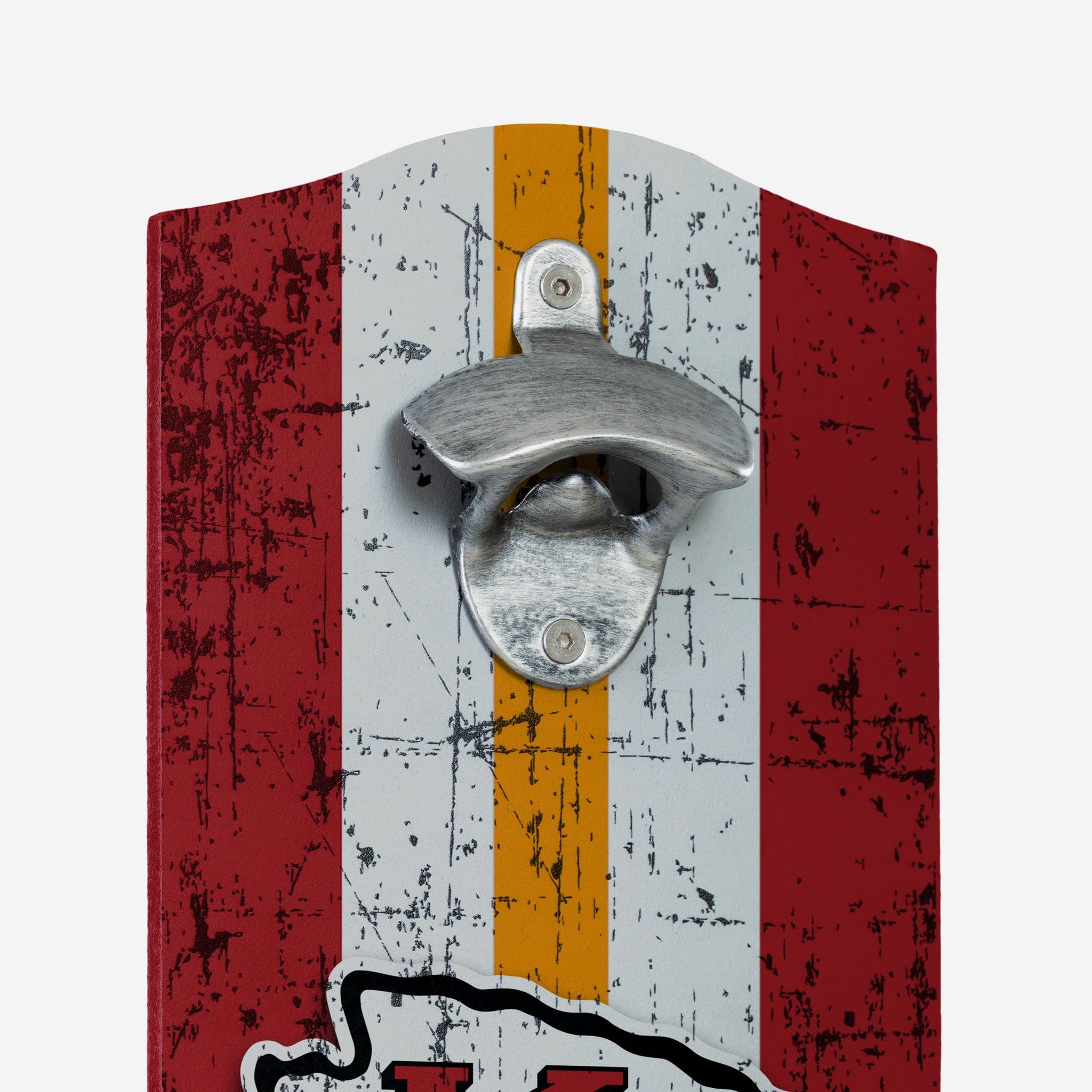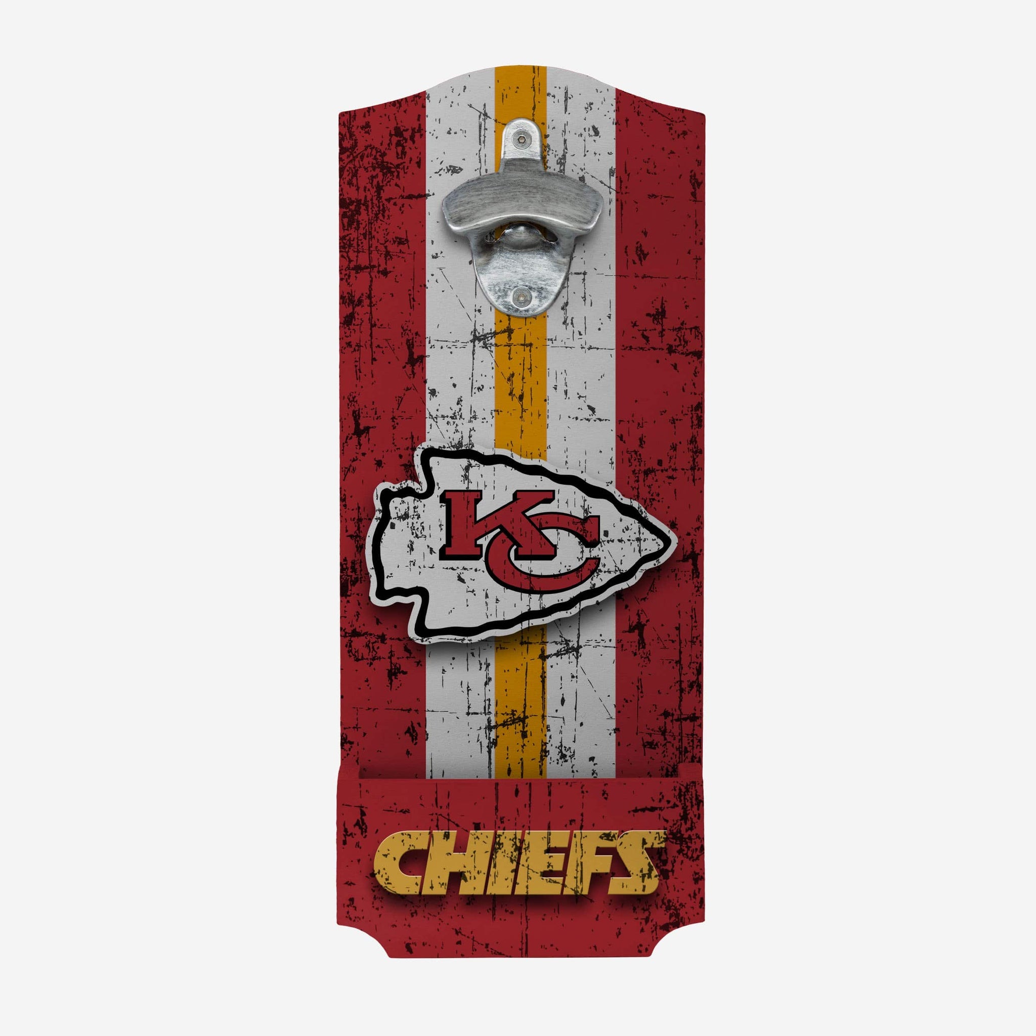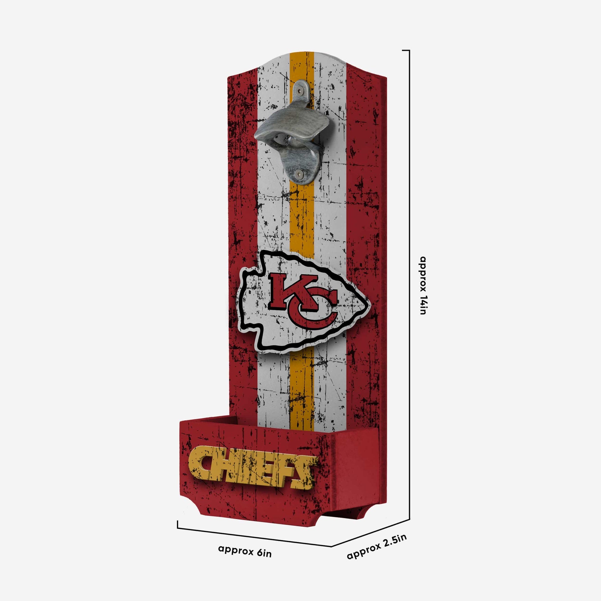 Don't miss a second of the action on gameday. Just use this Kansas City Chiefs Wooden Bottle Cap Opener Sign to crack open another cold one and focus on watching your team dominate!