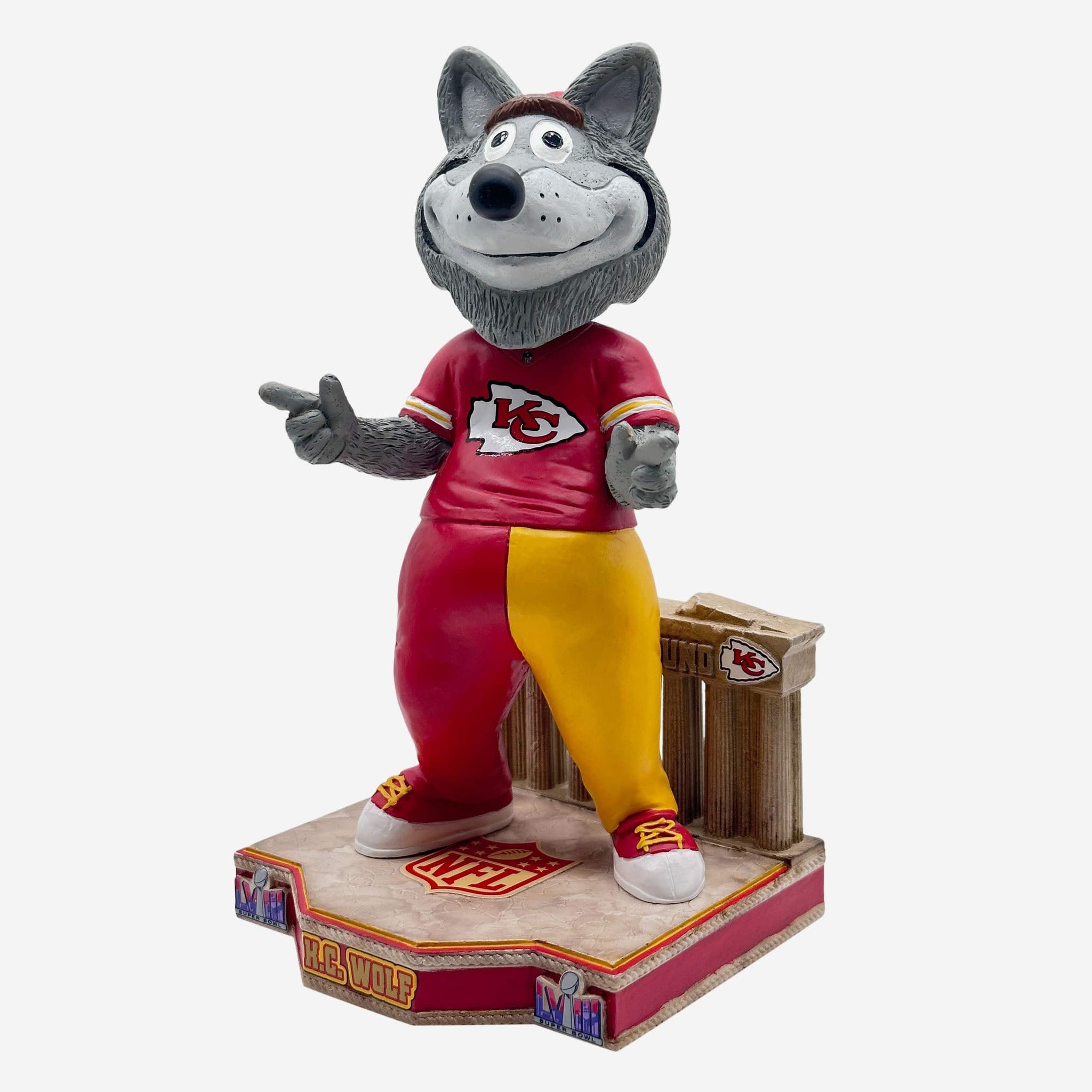 There’s nothing like a mascot to hype up the crowd – Bring the big game excitement to your fancave with the KC Wolf Kansas City Chiefs Super Bowl LVIII Bound Mascot Bobblehead!