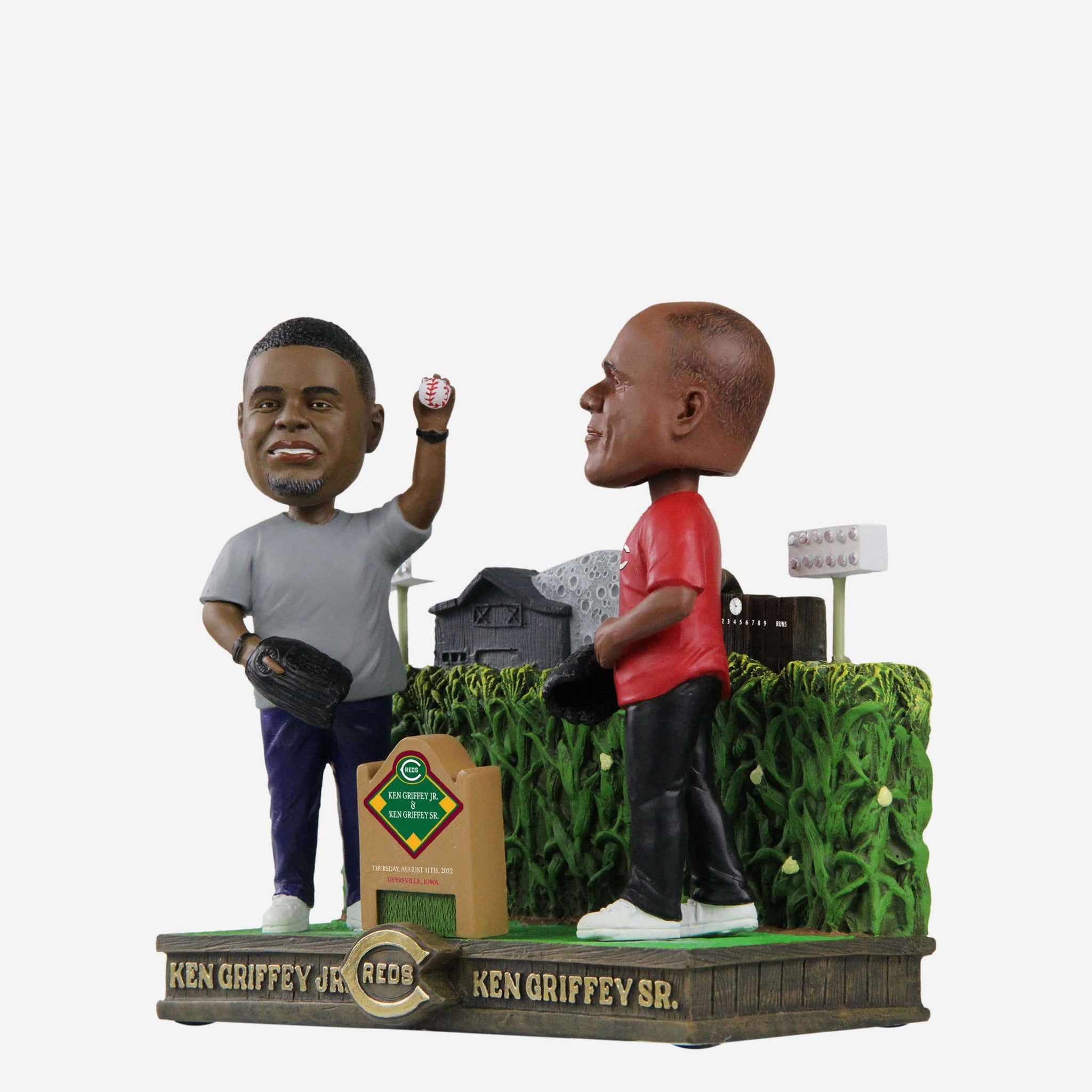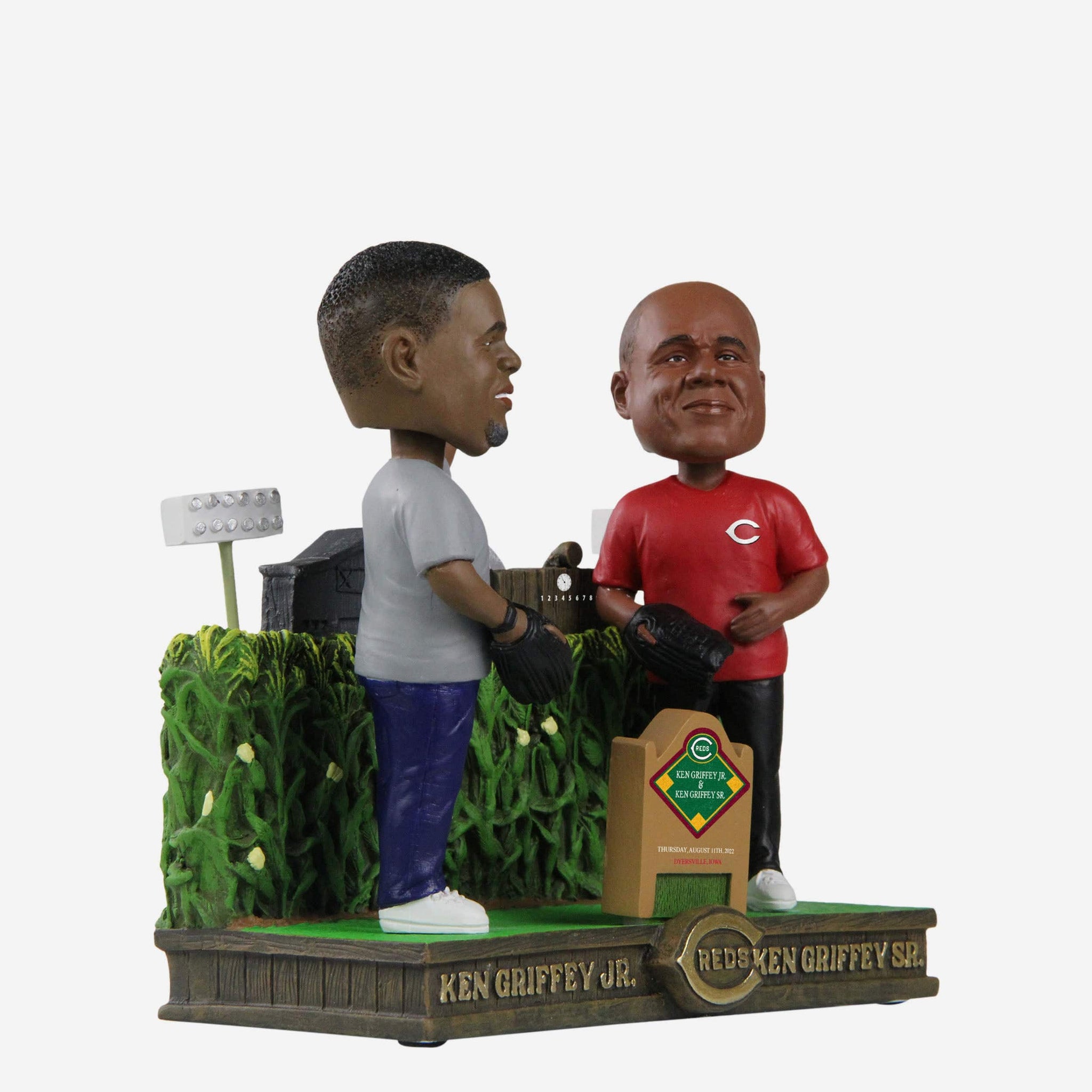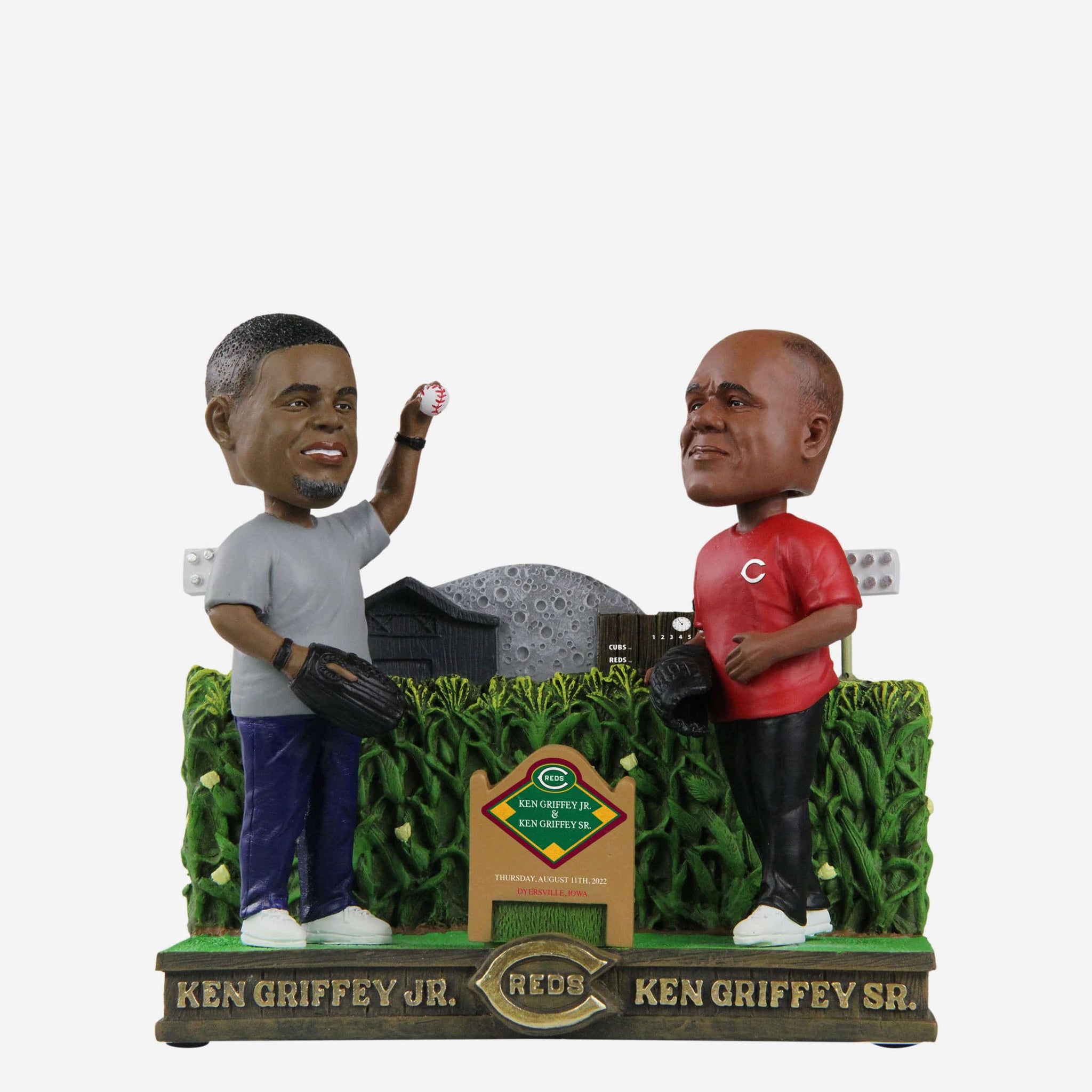Nothing beats a father and son catch. Especially when it includes two legends of the game. Bridge the generations from the corn field to your collection with this Ken Griffey Sr. & Ken Griffey Jr. Cincinnati Reds 2022 Dyersville Cornfield Dual Bobblehead.