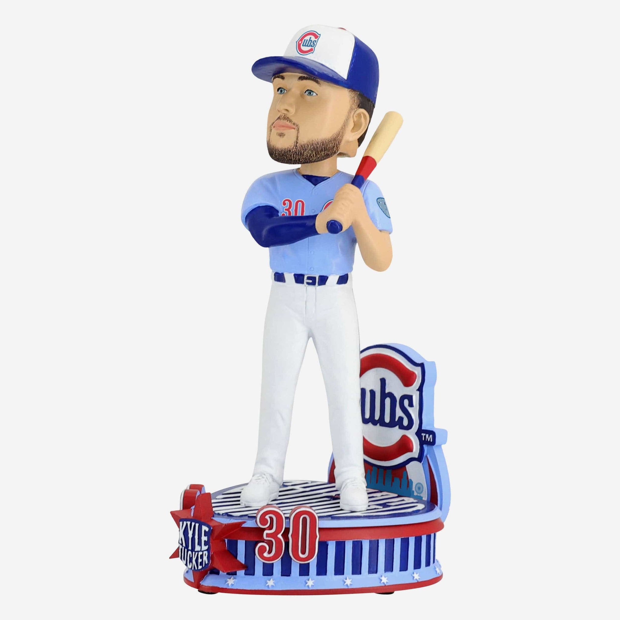 Chicago born. Cubs worn. Pay tribute to team history with this Kyle Tucker Chicago Cubs Baby Blue Alternate Uniform Bobblehead.