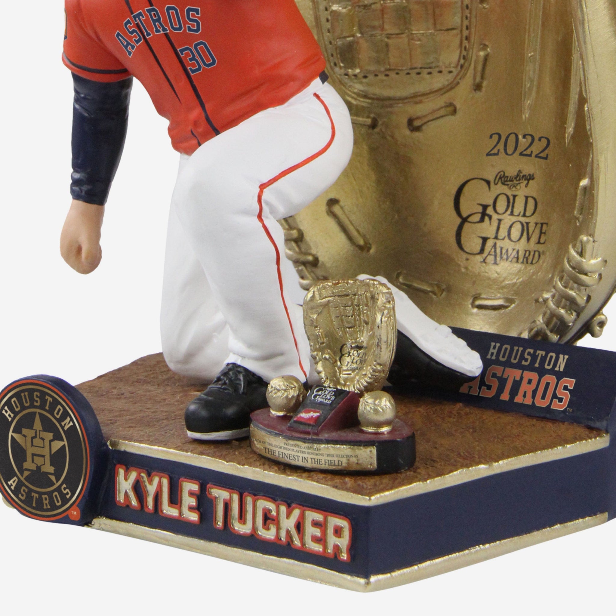 Right place. Right time. Right field. This Kyle Tucker Houston Astros 2022 Gold Glove Bobblehead is ready to bring some elite fielding to your lineup, and it has the hardware to prove it.