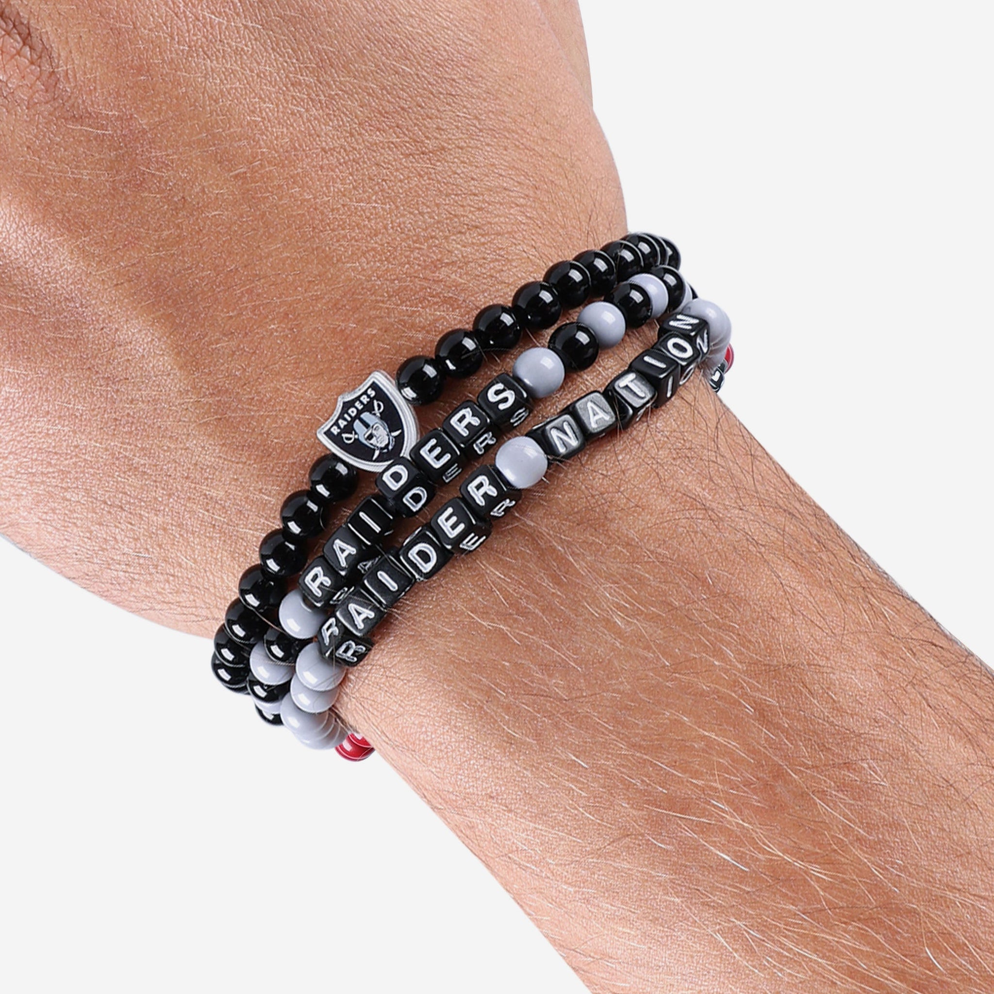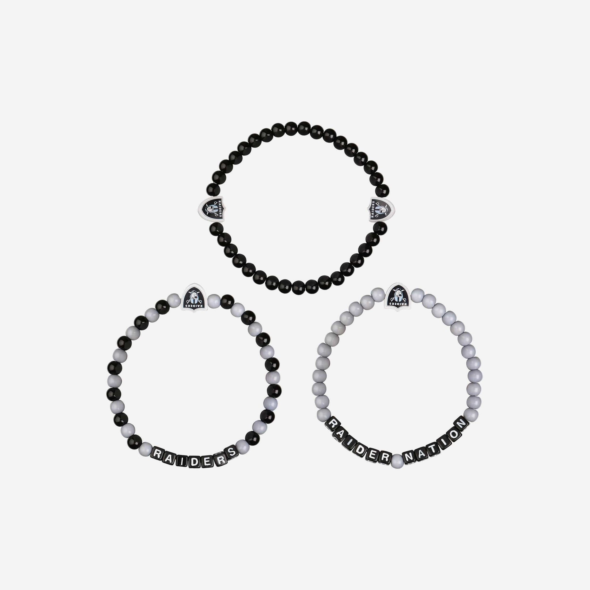 A whole new way to rep the team in style is here. Step up your fan fashion sense with this Las Vegas Raiders 3 Pack Beaded Friendship Bracelet. These matching friendship bracelets have an all-over team-colored design and team logo displays, which makes them the perfect way to show your support for the Las Vegas Raiders on gamedays and every day in between.