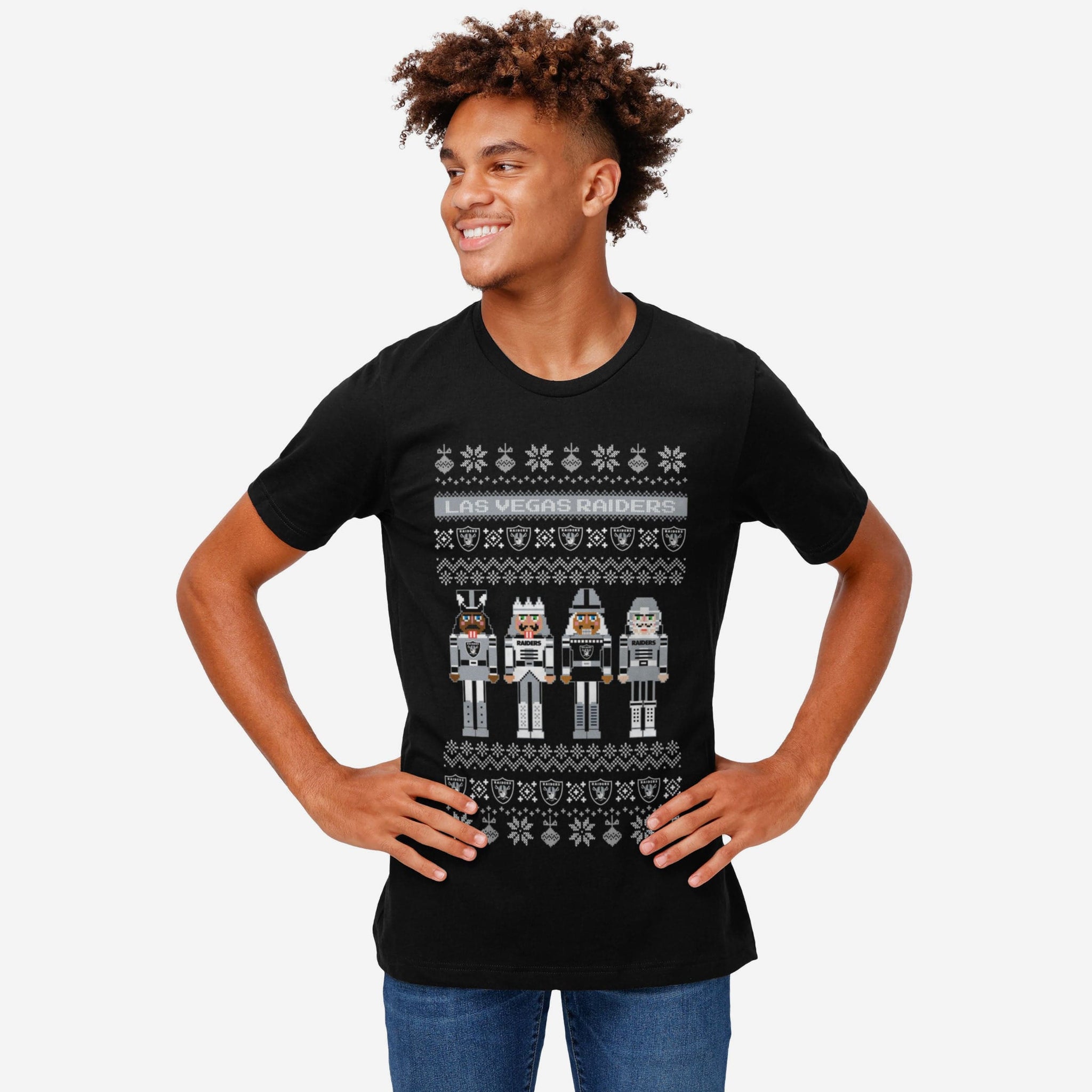 Get ready to get festive with your favorite team. Crack into the holiday spirit with the Las Vegas Raiders Holiday Nutcracker Sweater T-Shirt.