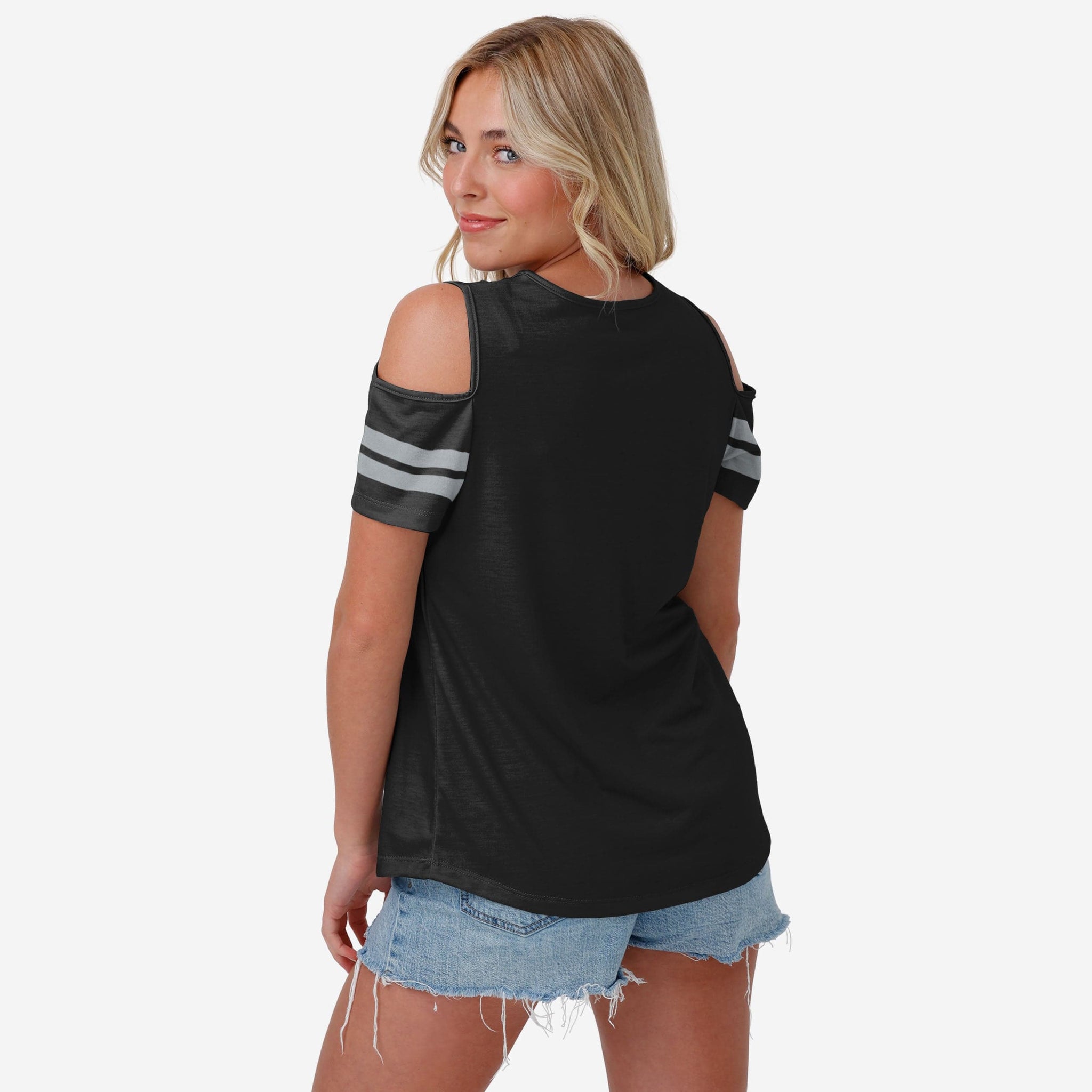 Someone doubting your fandom? Give 'em the cold shoulder by rocking this Las Vegas Raiders Women's Cold Shoulder T-Shirt.
