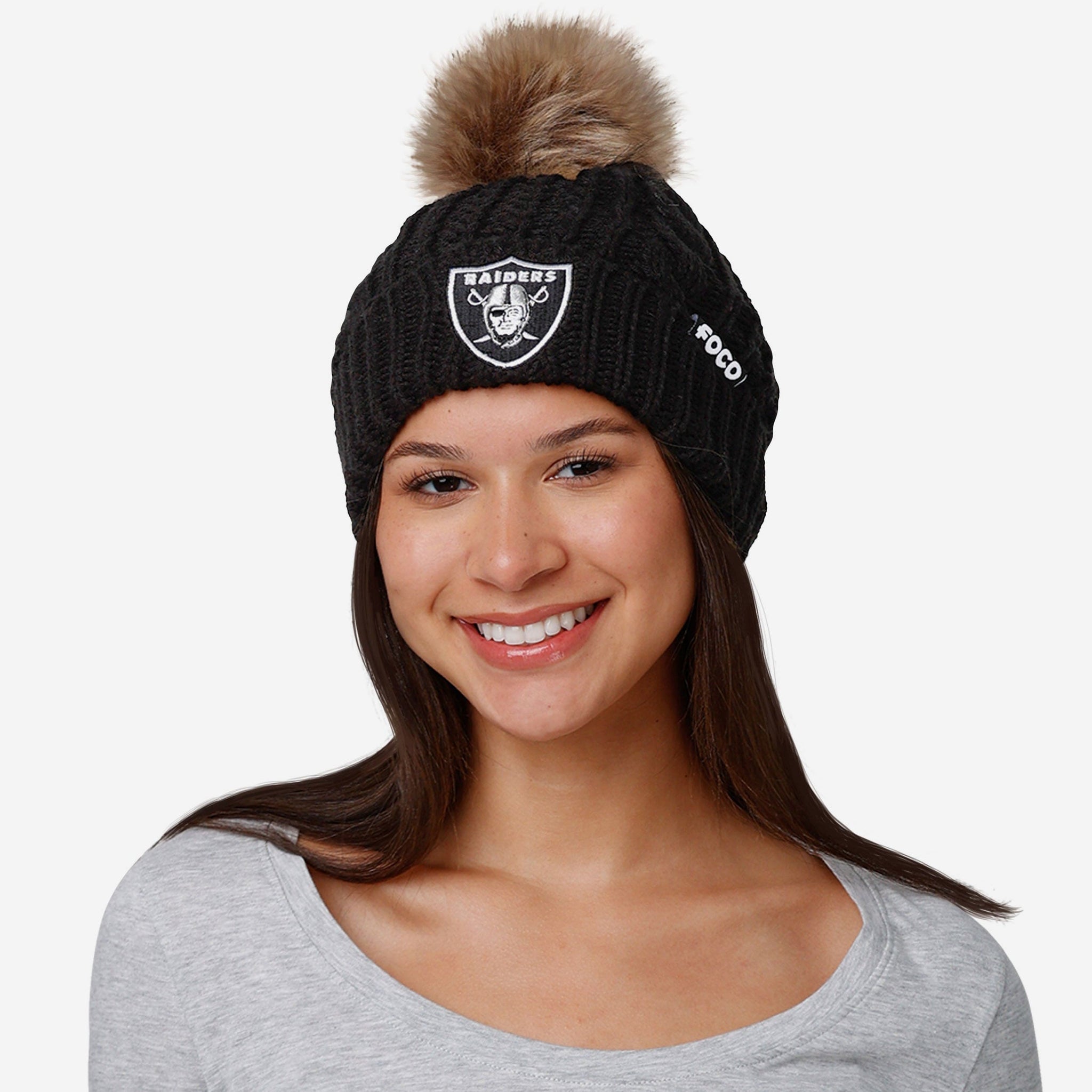 Las Vegas Raiders Womens Faux Fur Pom Beanie FOCO - FOCO.com