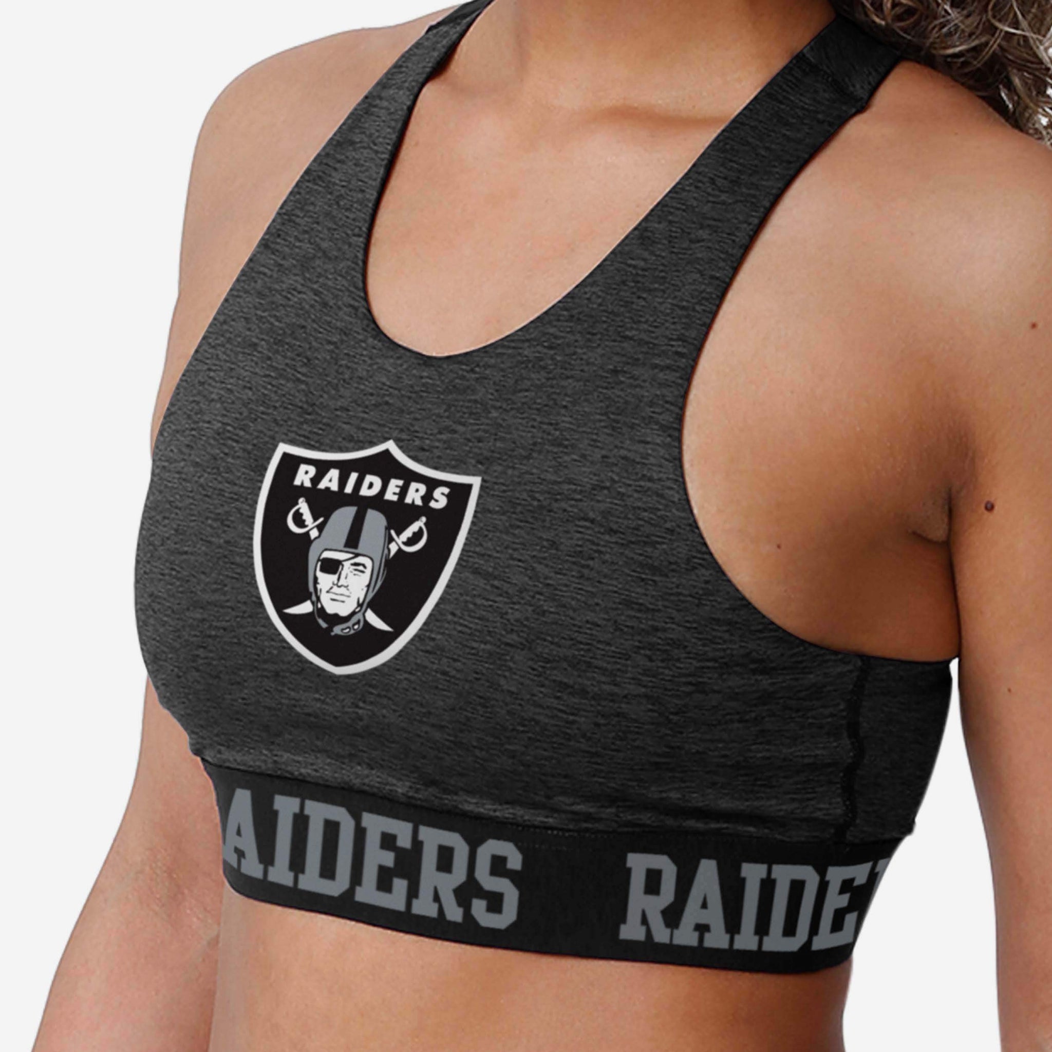 Introducing the Las Vegas Raiders Women's Team Color Static Sports Bra, where fandom and fitness come together in perfect harmony!