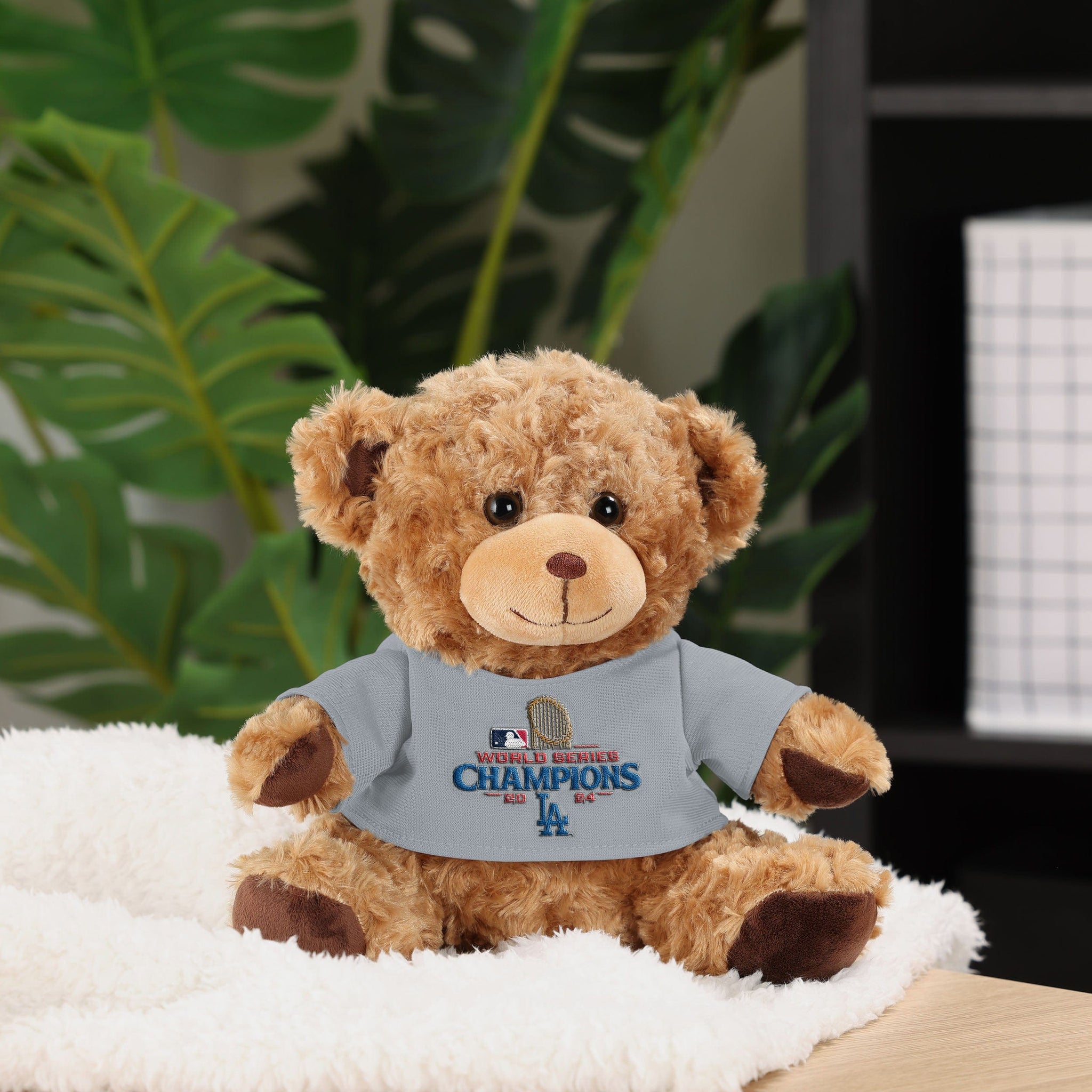 The only three words more delightful than "plush teddy bear" are "World Series champions!" A plush pal is ready to help you cheer on the champs with this Los Angeles Dodgers 2024 World Series Champions Seated Shirt Bear.