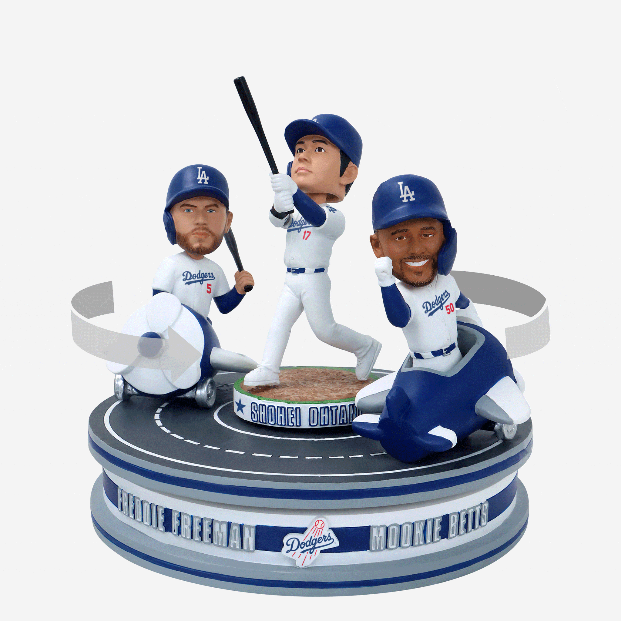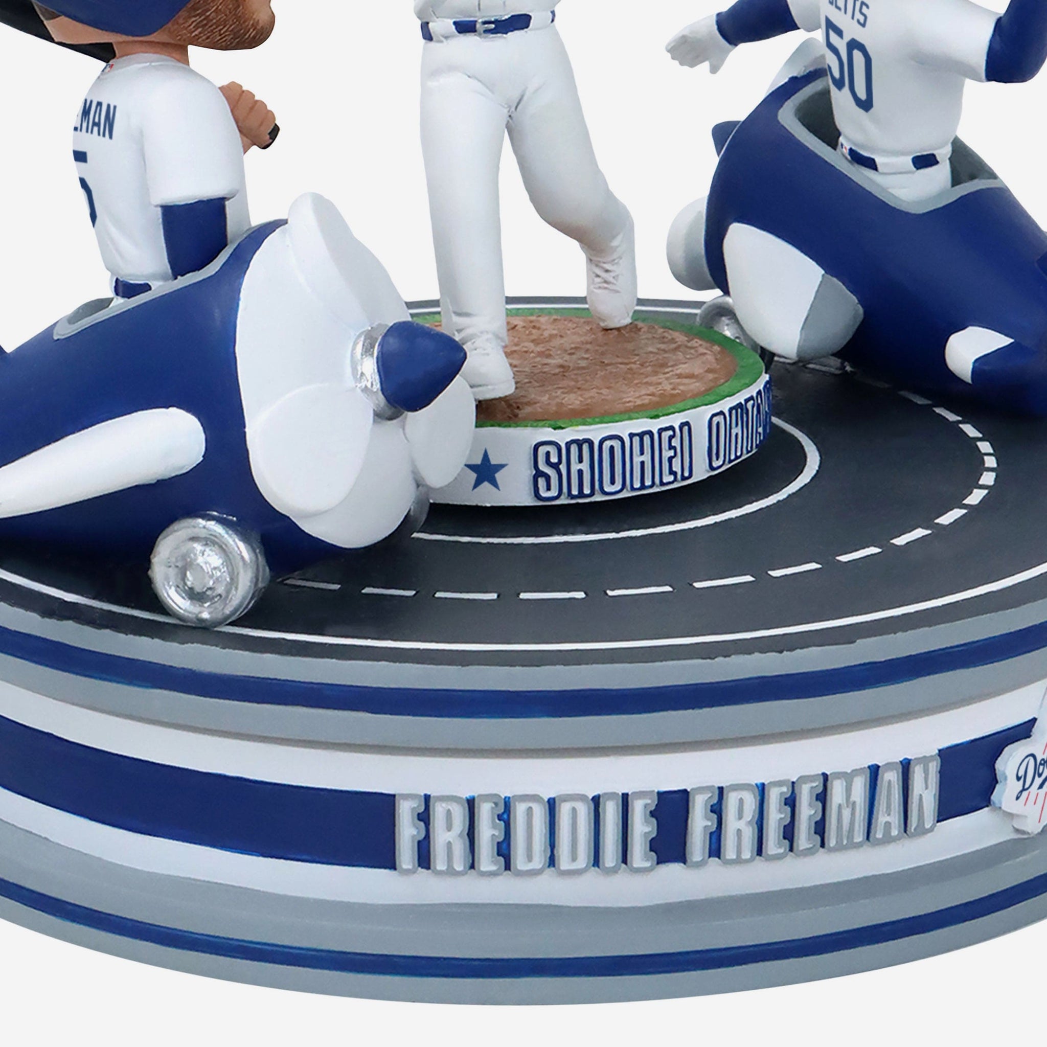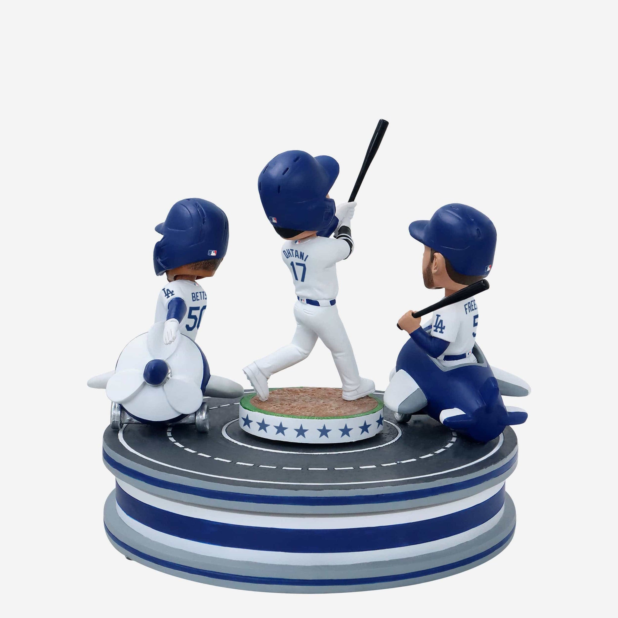 It’s time to let your Dodgers pride soar! Prepare for takeoff and Sho off 360 degrees of greatness with the Los Angeles Dodgers Jet Setter Spinner Mini Bobblehead Scene featuring Shohei Ohtani, Freddie Freeman, and Mookie Betts.