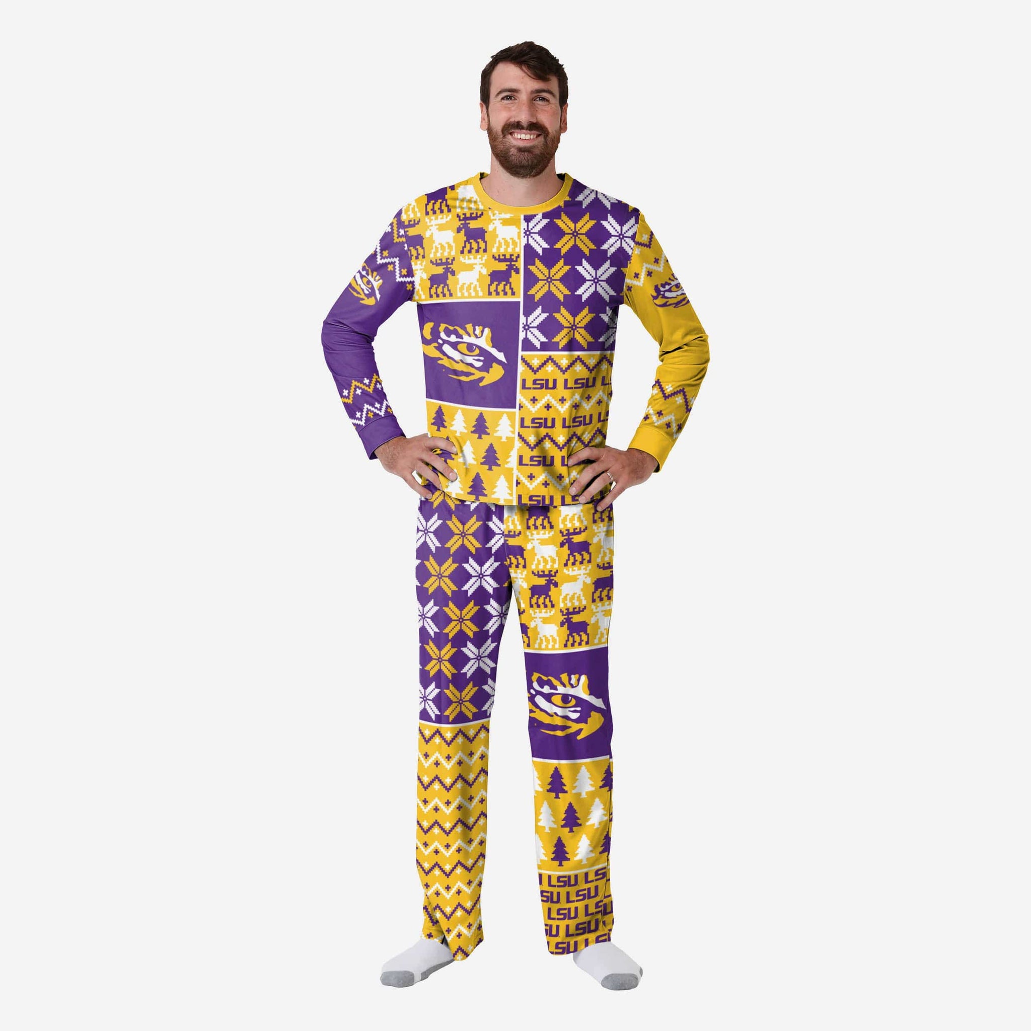 Get some matching family pajamas and dress to impress this holiday season! You won't want to miss these men's team pajamas! These men's PJ's are comfortable and show off your team spirit in the form of some sweet men's jammies. Introducing the LSU Tigers Men's Busy Block Family Holiday Pajamas! Don't forget to take your holiday photo with the whole family wearing matching Christmas pajamas!