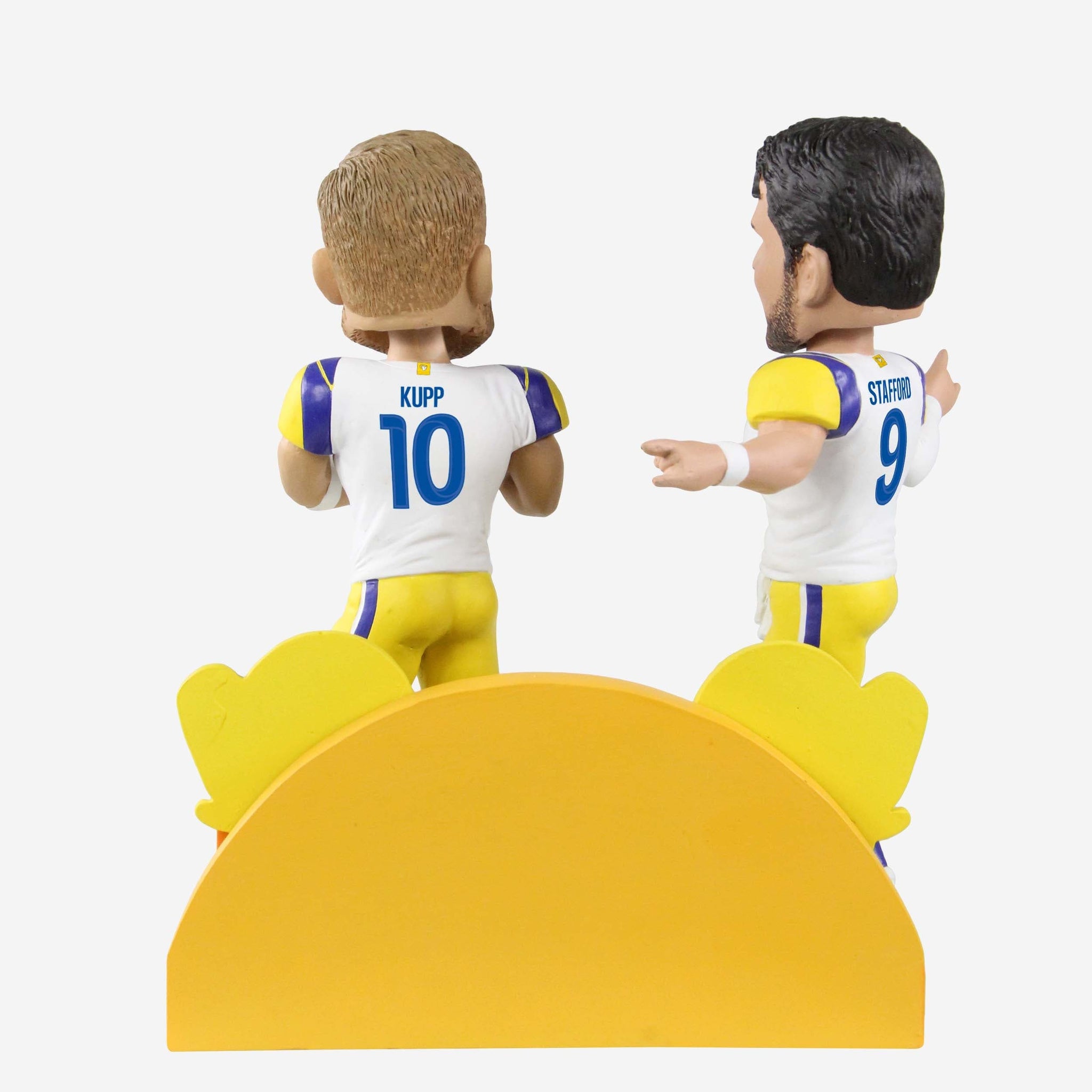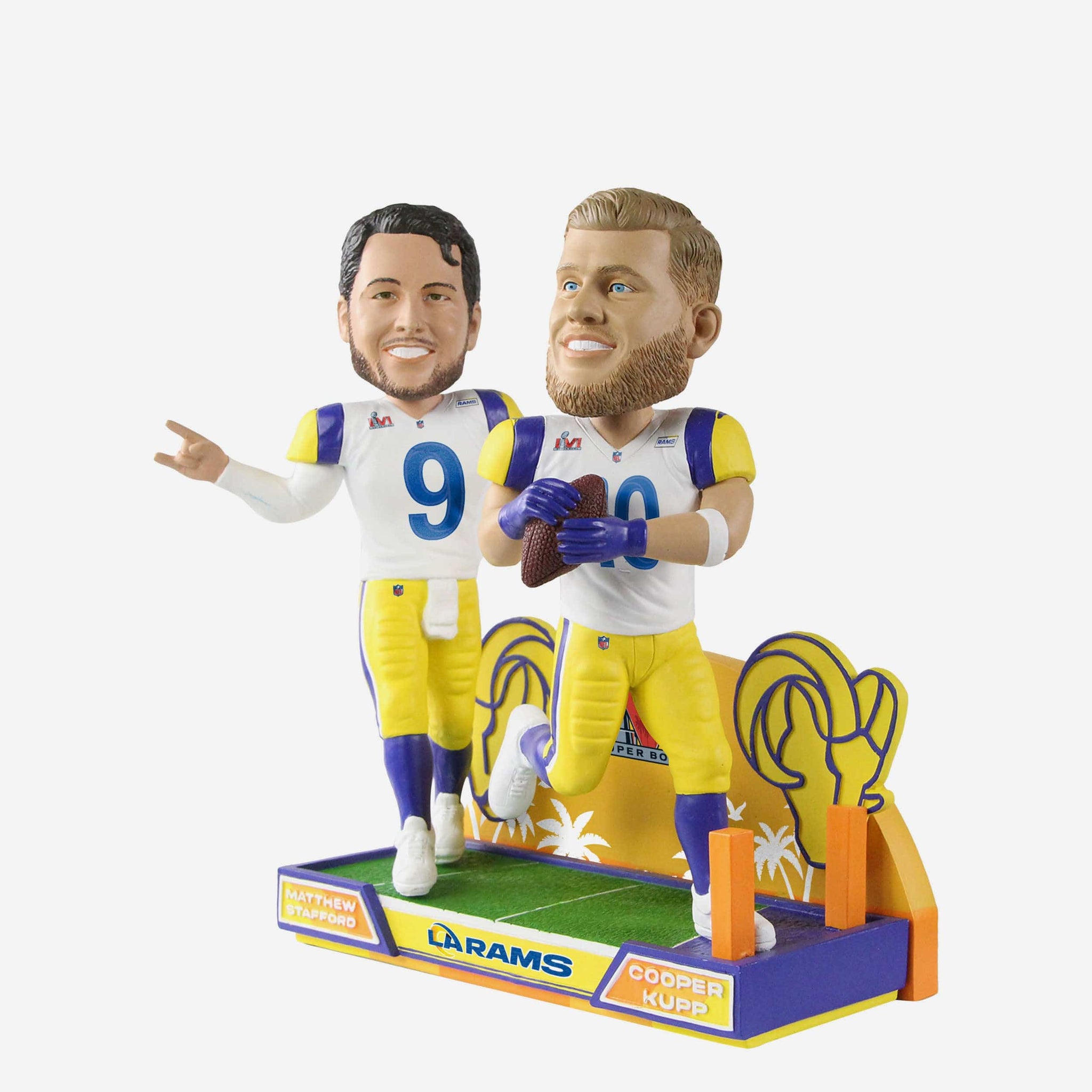 The MVP and QB1 are here to make sure the West Coast party don't stop. Celebrate the clutchest of connections with this Matthew Stafford & Cooper Kupp Los Angeles Rams Game Winning Touchdown Dual Bobblehead.