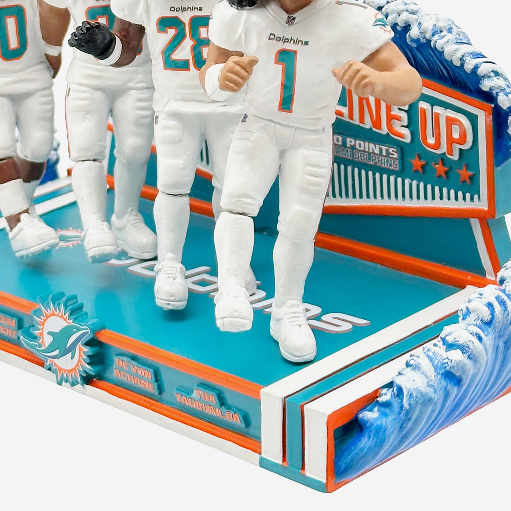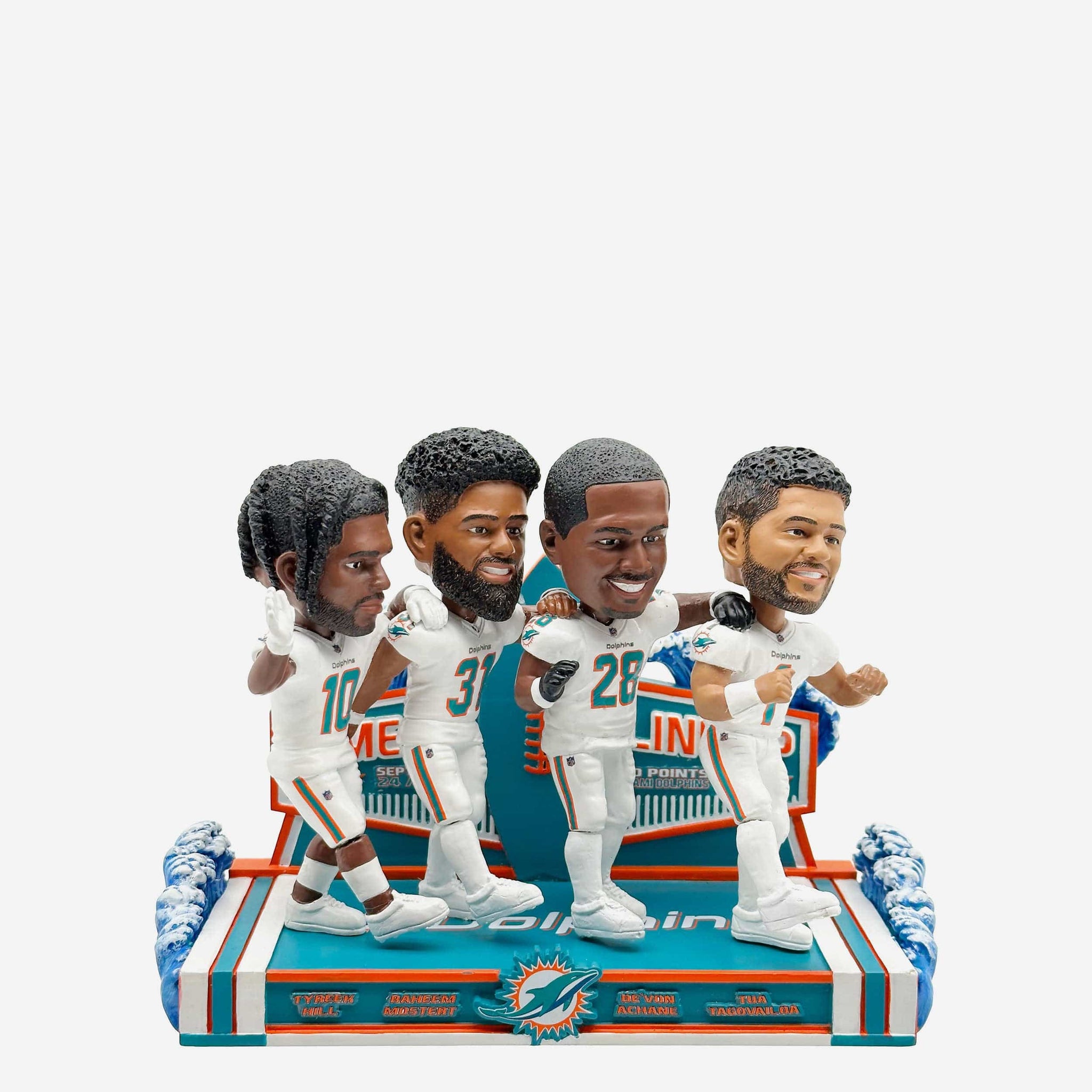 No, your eyes are not deceiving you. It's not a typo. The Dolphins really did score 70 points. Immortalize that historic performance in your Fins fancave with Tua Tagovailoa, Raheem Mostert, Tyreek Hill, Terron Armstead, and the Miami Dolphins 70 Points Celebration Mini Bobblehead Scene.
