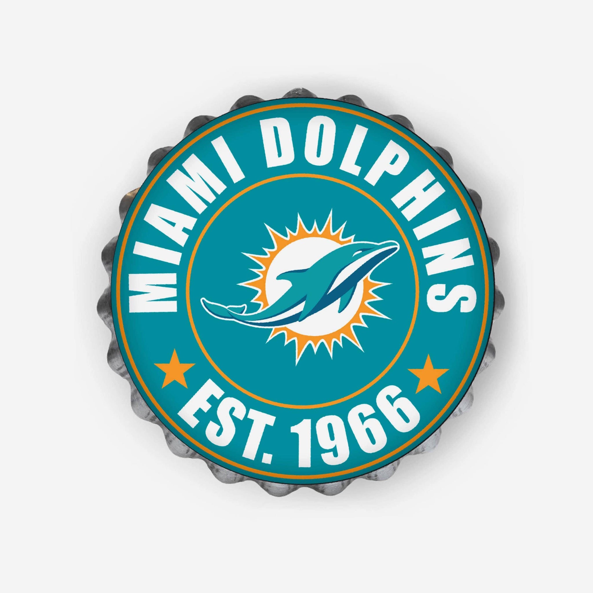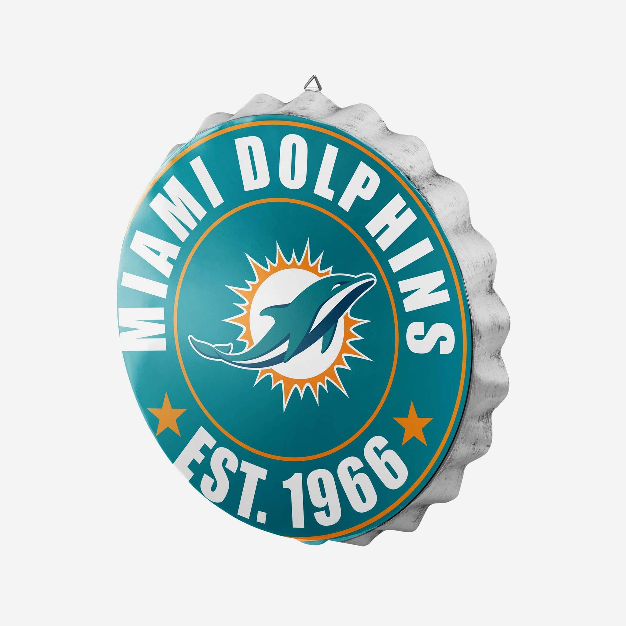 You won't have to waste time telling people who you're rooting for when you've got this Miami Dolphins Bottle Cap Wall Sign on display in your fancave, because the sign will answer it for you. Instead, use that time to crack open another cold beverage and enjoy the game.