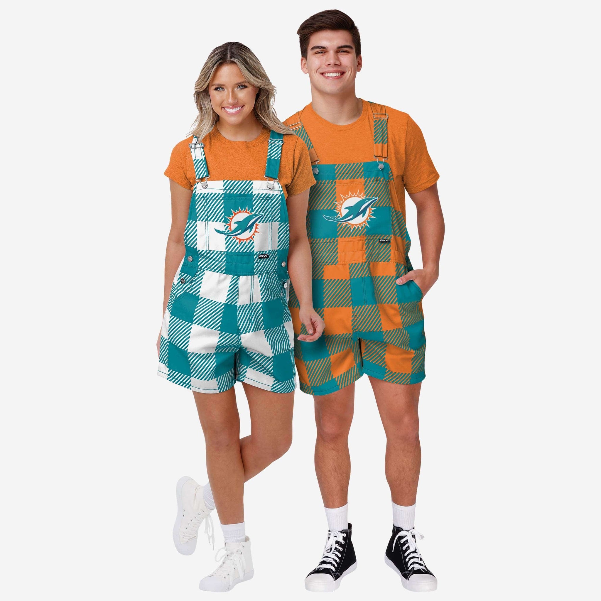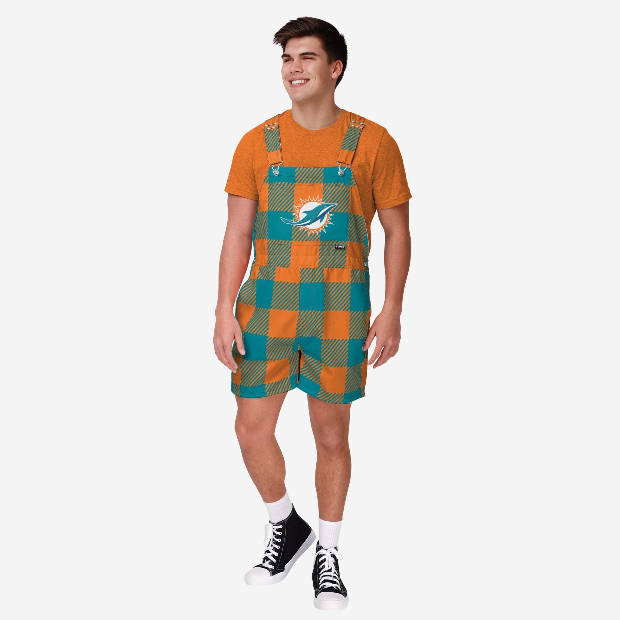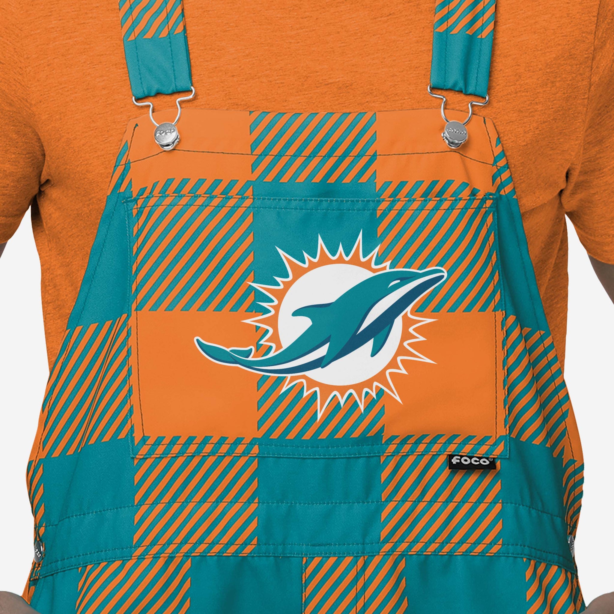 Show your team spirit in these stylish and comfortable Miami Dolphins Men's Plaid Bib Shortalls. With their all-over team-colored design and bold team logo display, these shortalls are the perfect way to show your support for the Miami Dolphins while showing off some buffalo plaid fashion for a rustic, rural feel.