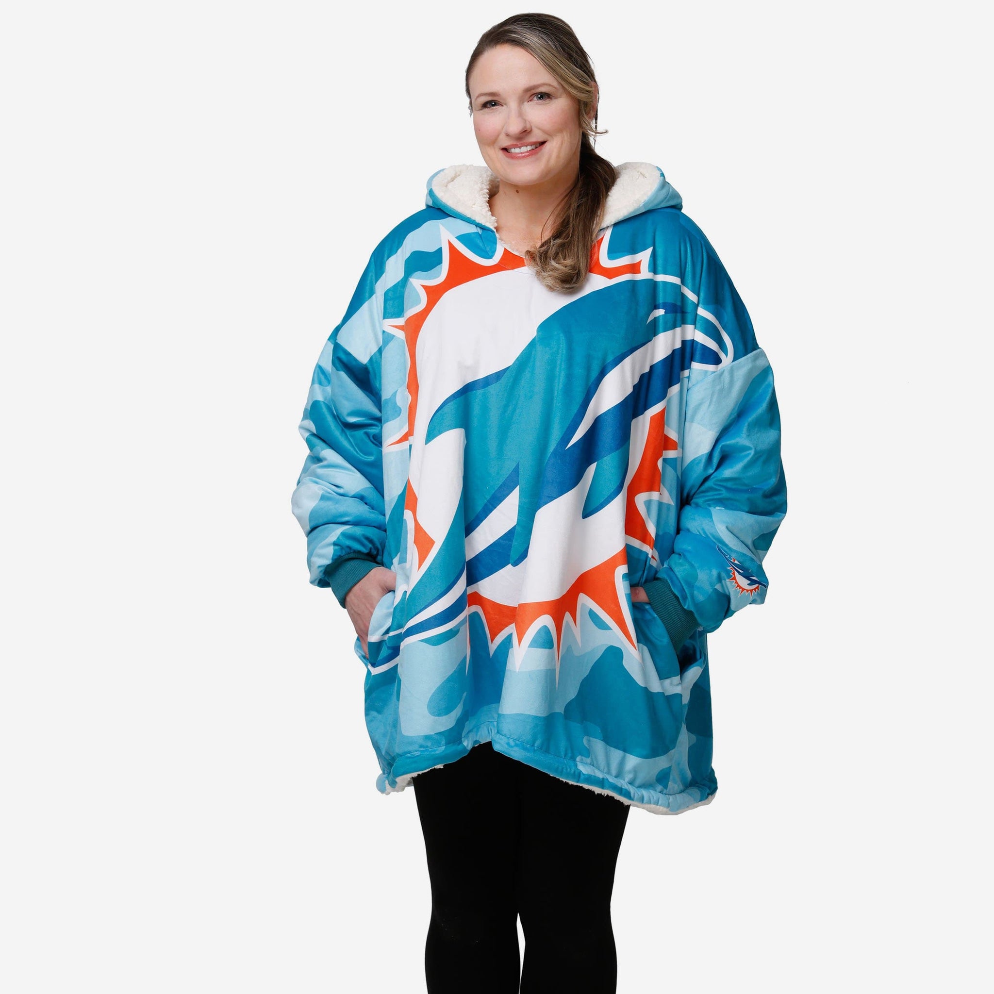 Meet your best friend for binge watching! This Miami Dolphins Team Color Camo Hoodeez is super soft and the perfect companion for those lazy Sundays on the couch.