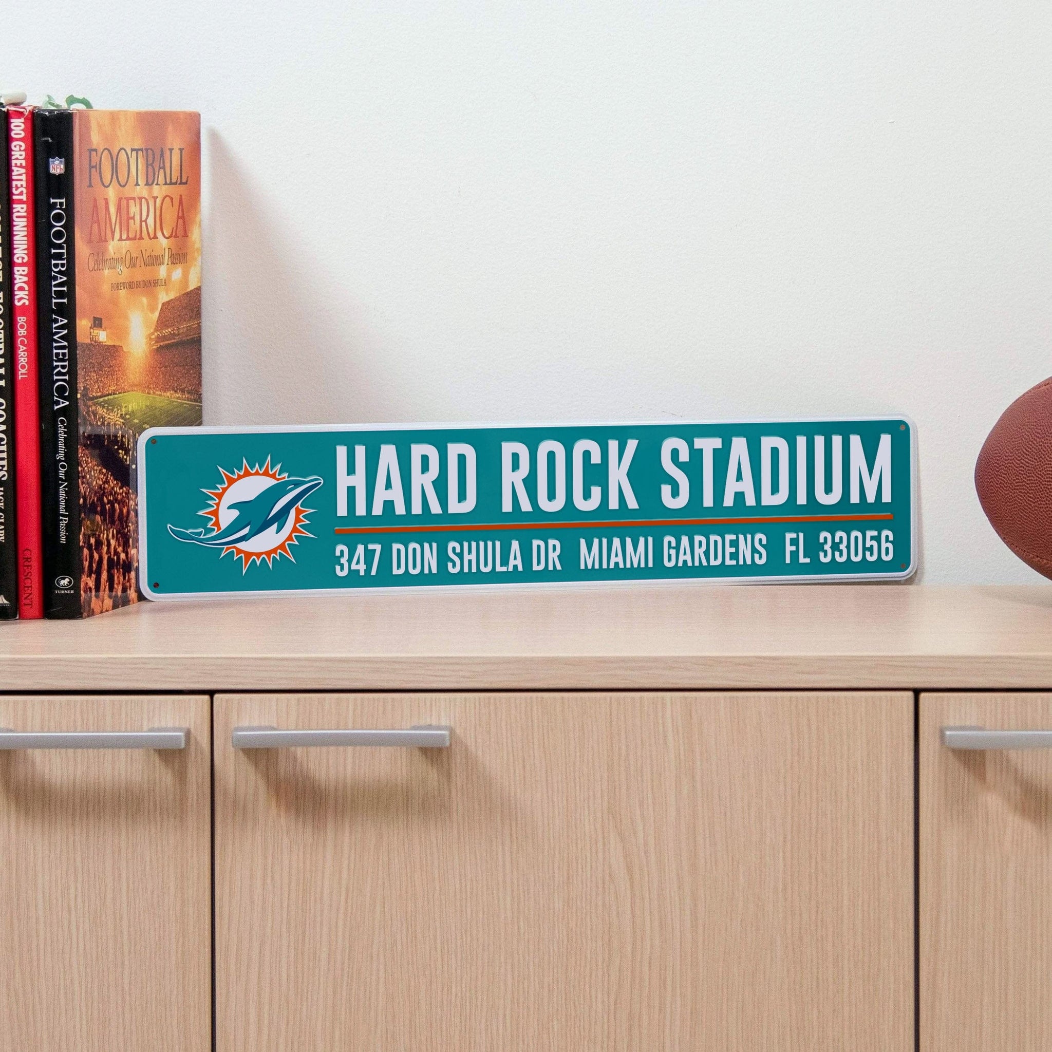 Don't let your eyes deceive you. You may think you're standing outside your favorite stadium before a big game, but it's just your fancave with this Miami Dolphins Stadium Street Sign on display. Add some home game fun to your home base.