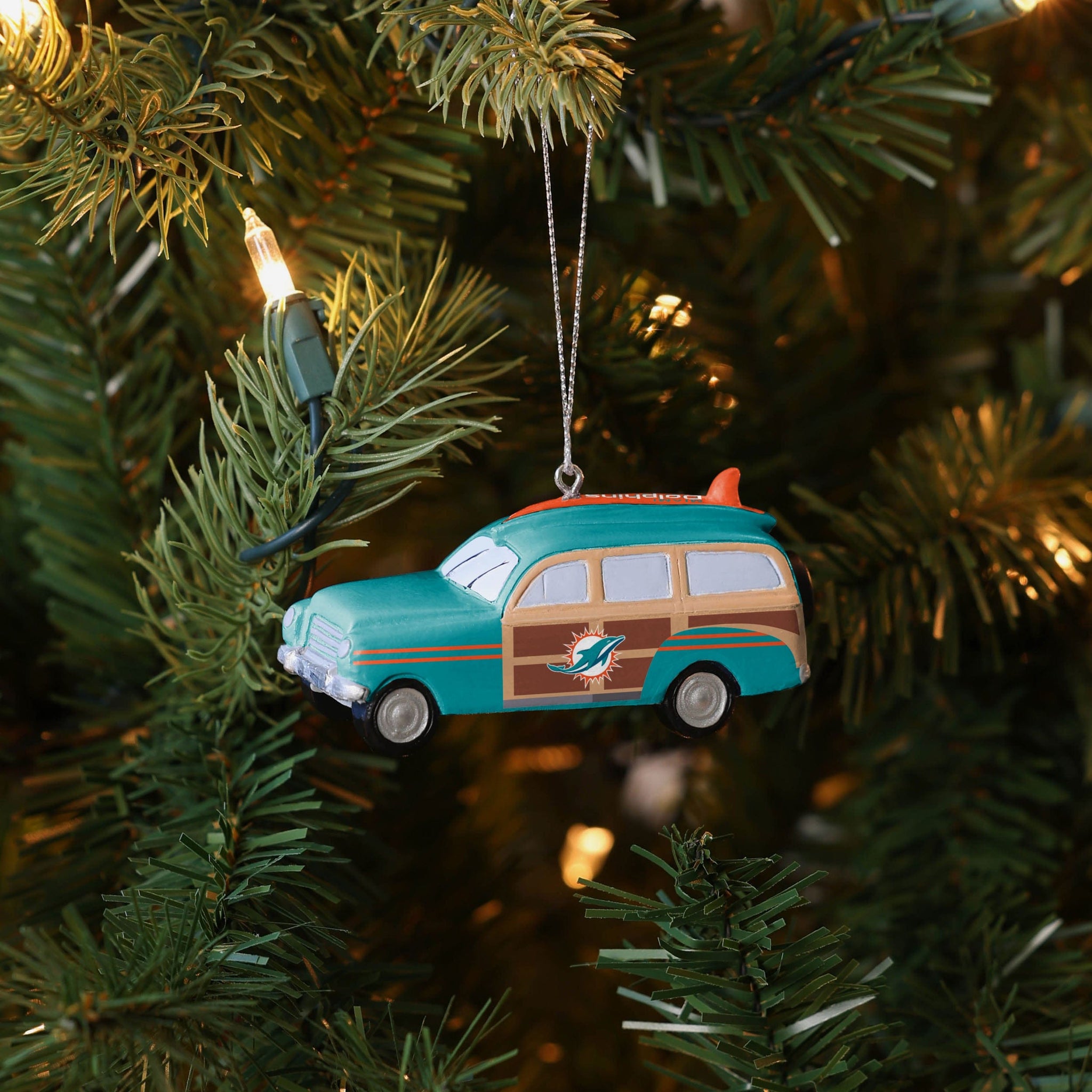 WARNING! Laying eyes on this Miami Dolphins Station Wagon Ornament on your tree may result in an uncontrollable desire to embark on a road trip down the coast.