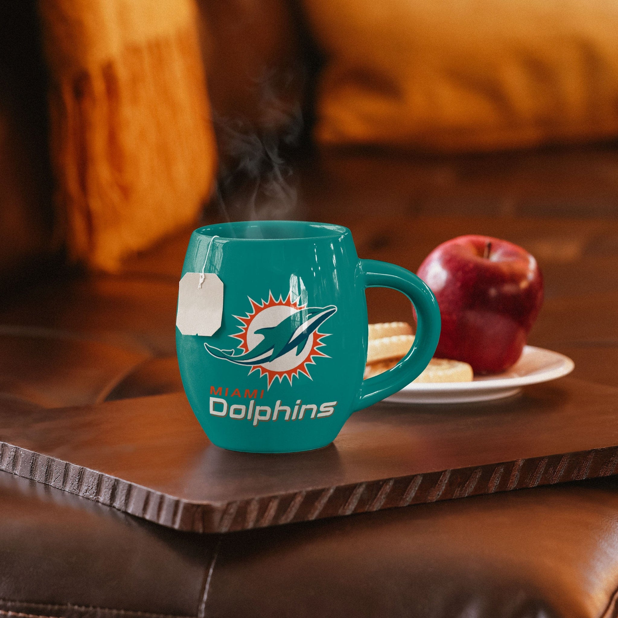 Okay, here's the tea. If you really want to enjoy that beverage like a true fan, then you'll want to pour it into this Miami Dolphins Tea Tub Mug.