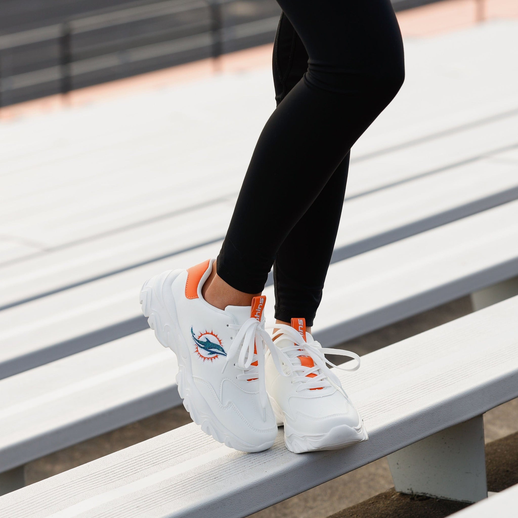 Miami Dolphins Womens Glitter Big Logo Vintage White Chunky Sneaker