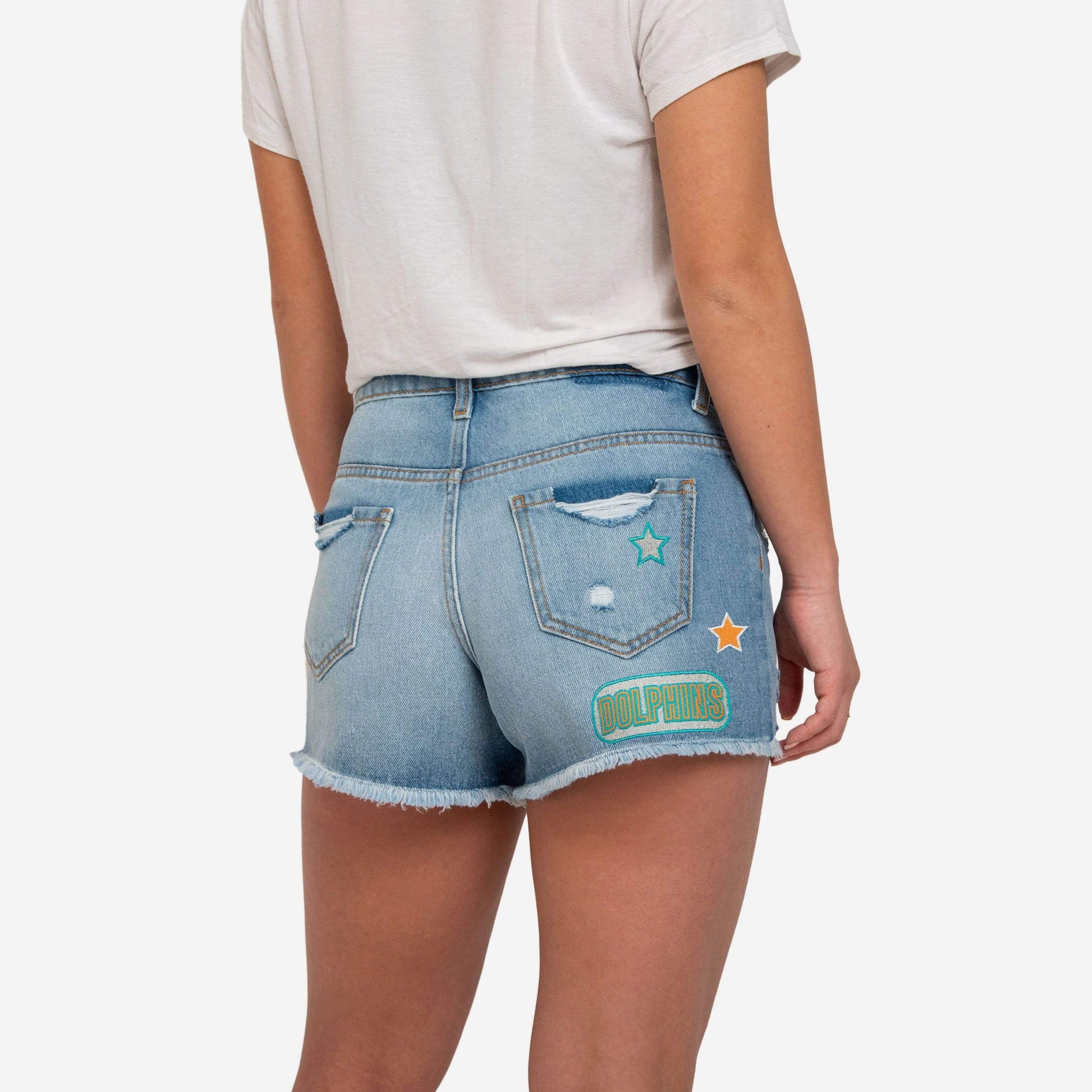 Just because the temperature outside is rising doesn't mean you should stop bringing the heat. Dress to impress at every game, tailgate, concert, barbecue, or wherever your fandom takes you with these Miami Dolphins Women's Team Logo Denim Shorts.