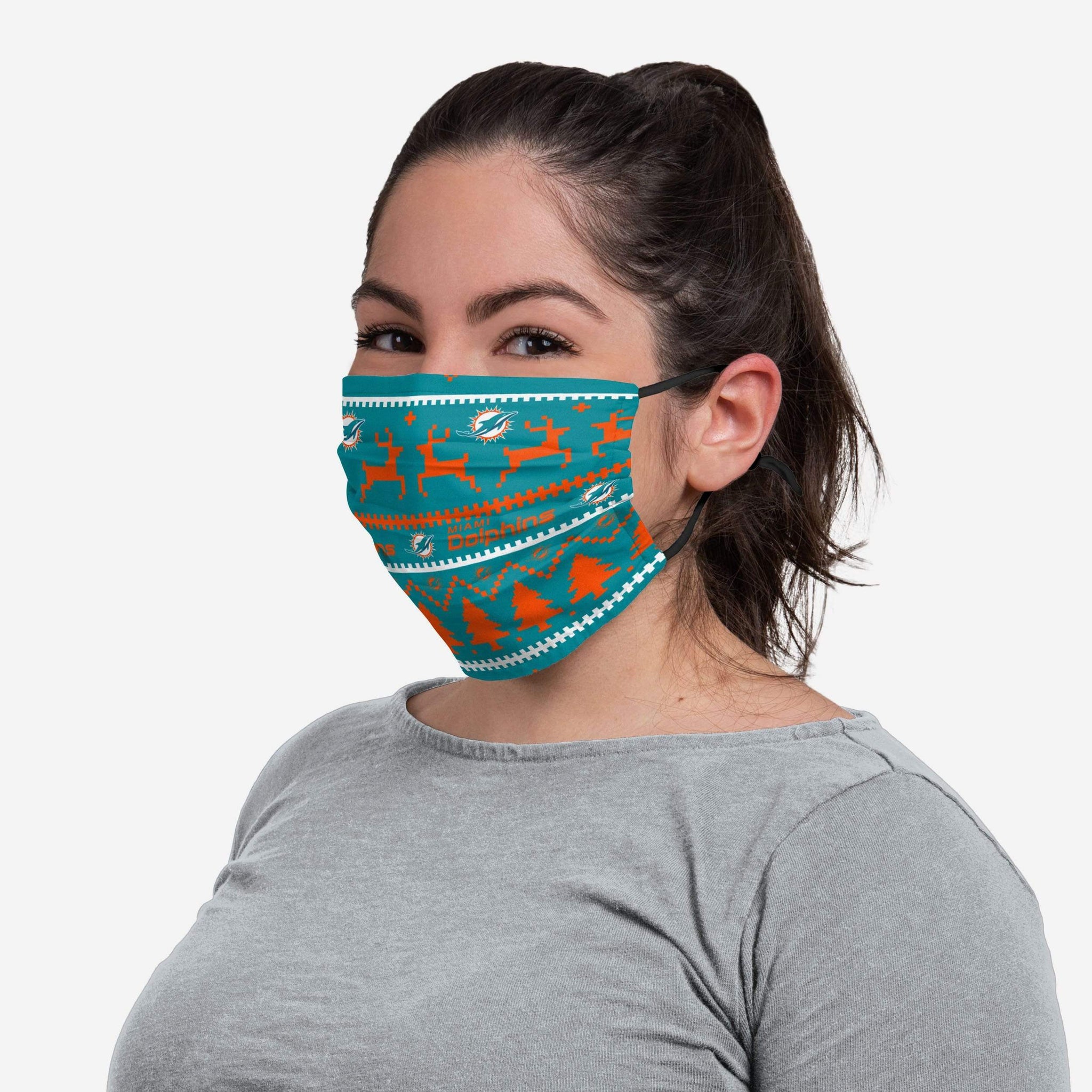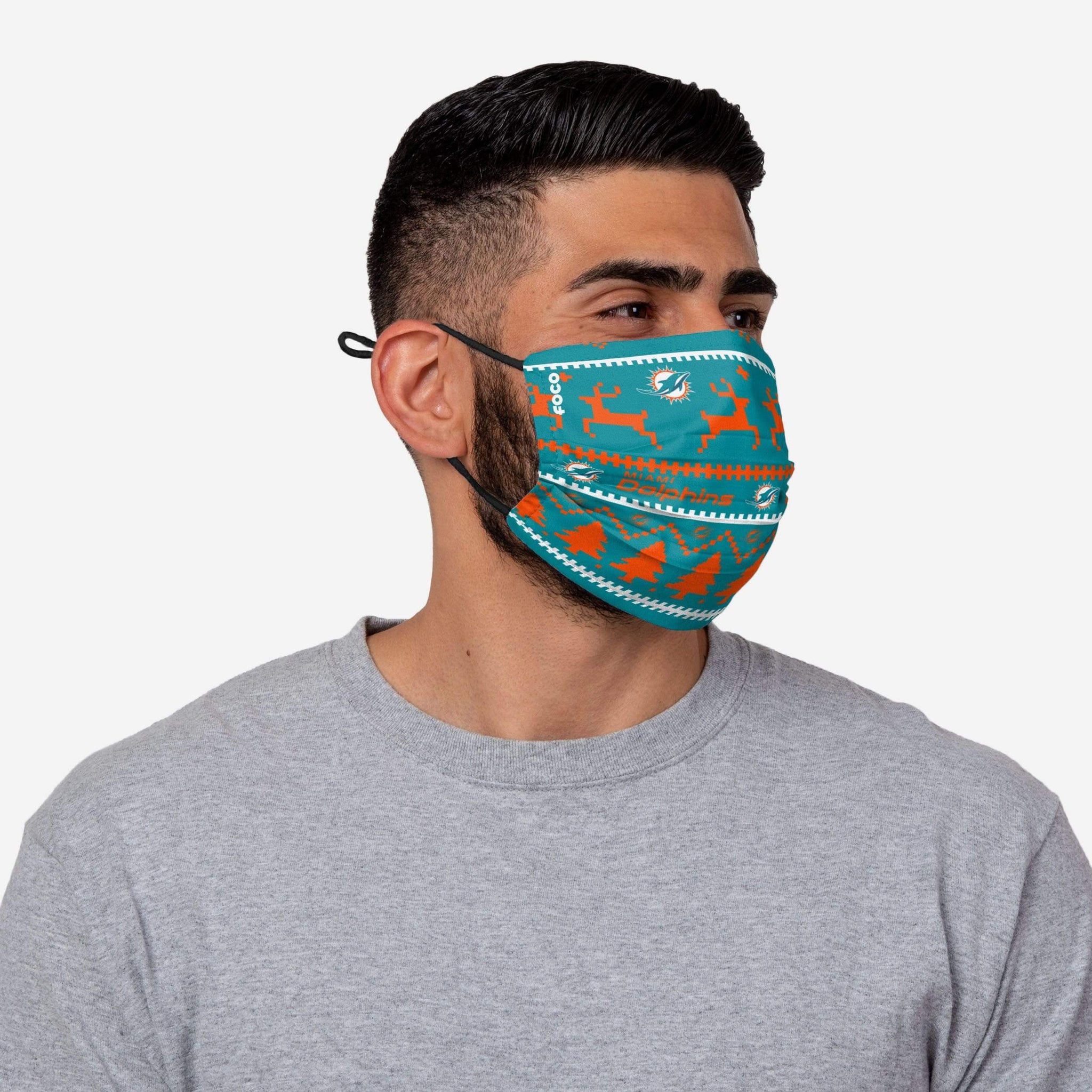 Cover up while you represent your favorite team in this Miami Dolphins Wordmark Holiday Adjustable face covering!