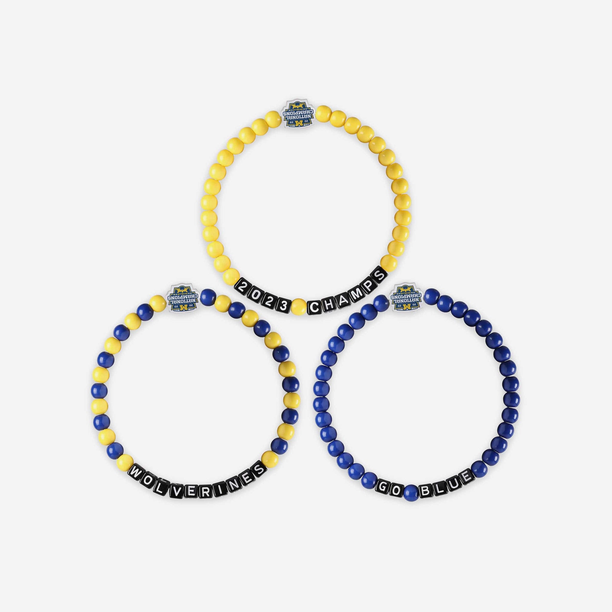 Accessorize and maximize your fandom while impressing your fellow fans with this Michigan Wolverines 2023 Football National Champions 3 Pack Friendship Bracelet. These matching friendship bracelets have an all-over team-colored design, team logo displays, and championship logo displays, which makes them the perfect way to show your support for theĀ Michigan Wolverines and get in on the latest accessory craze.