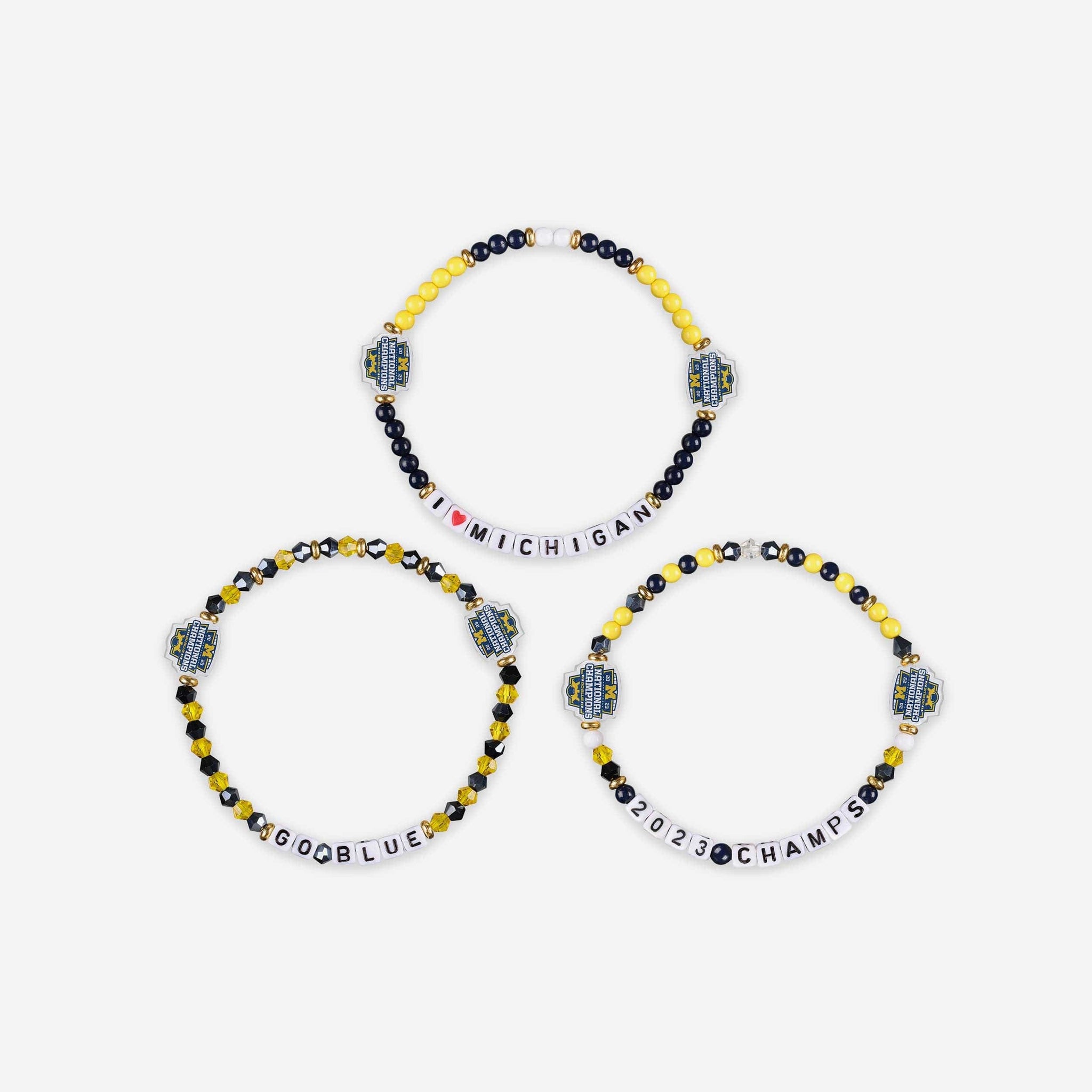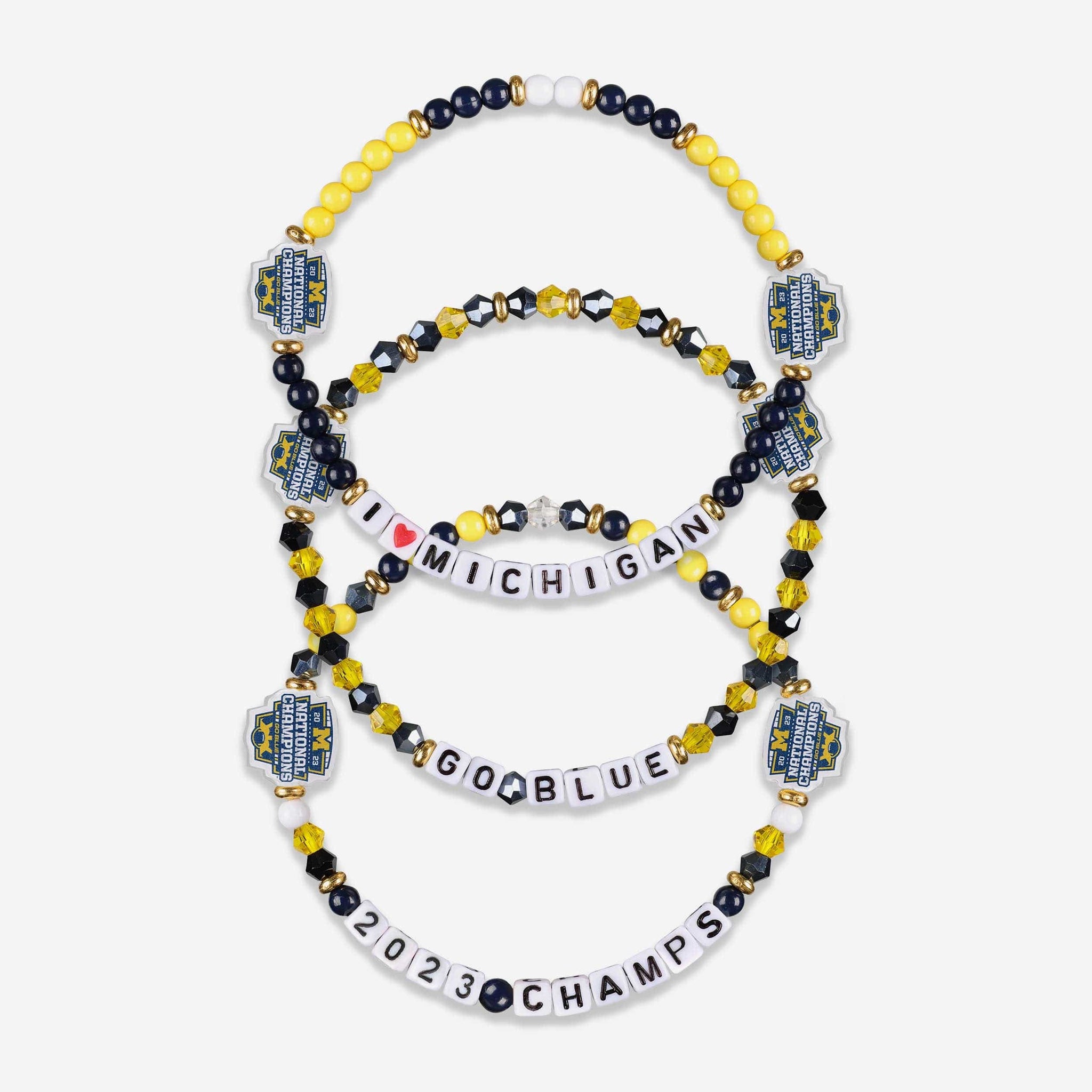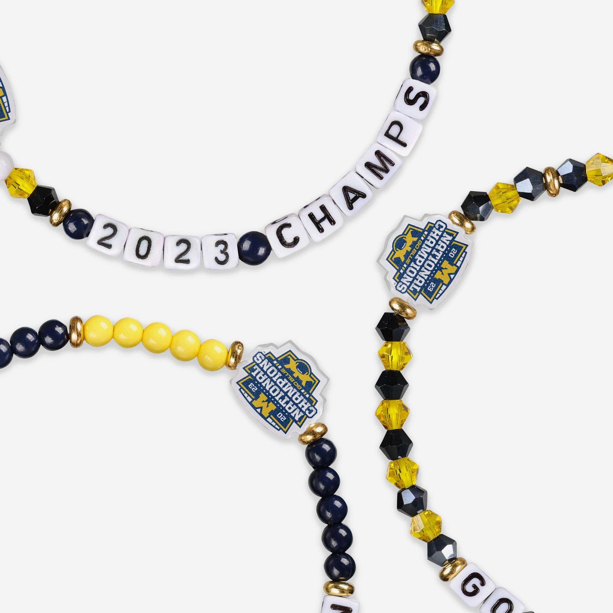 Accessorize and maximize your fandom while impressing your fellow fans with this Michigan Wolverines 2023 Football National Champions 3 Pack Friendship Bracelet. These matching friendship bracelets have an all-over team-colored design, team logo displays, and championship logo displays, which makes them the perfect way to show your support for the Texas Rangers and get in on the latest accessory craze.