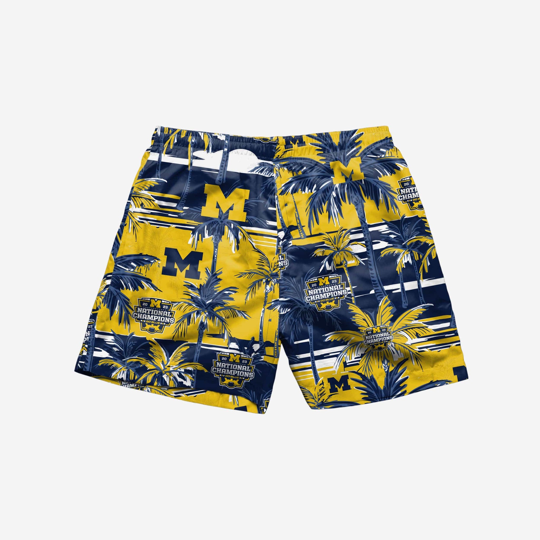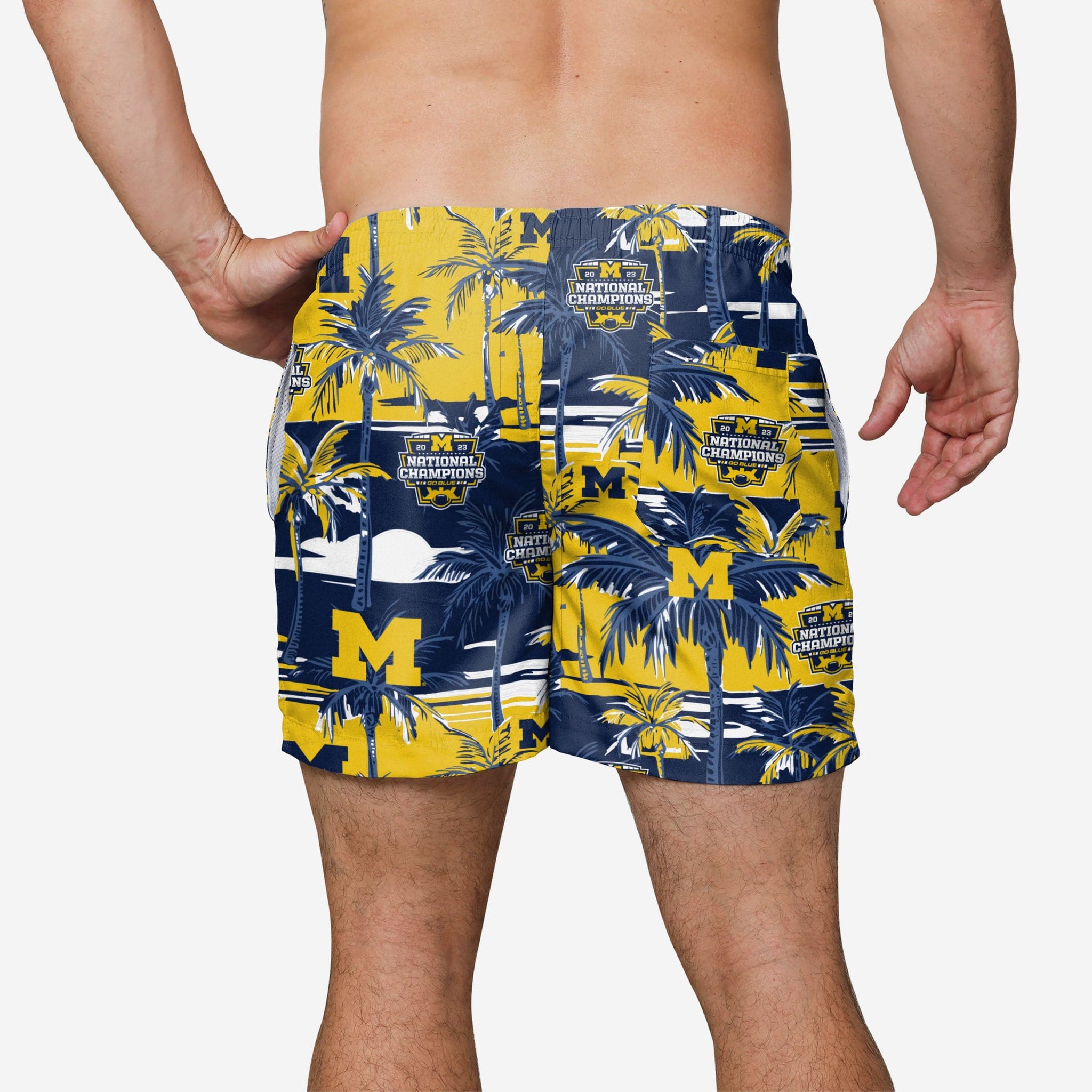 Dive into the deep end of championship fandom and get wild in these Michigan Wolverines 2023 Football National Champions Floral Swimming Trunks.