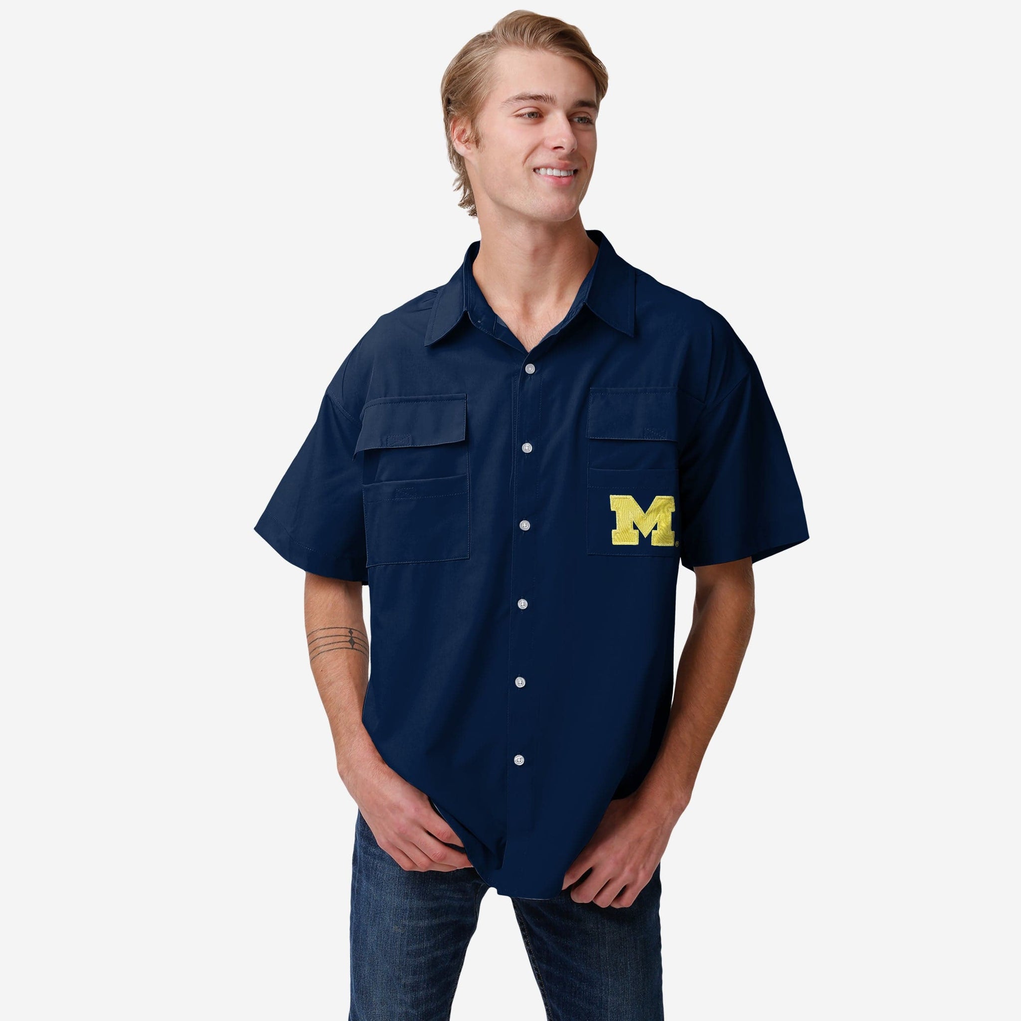 - Button-up structure so you can fan up in style