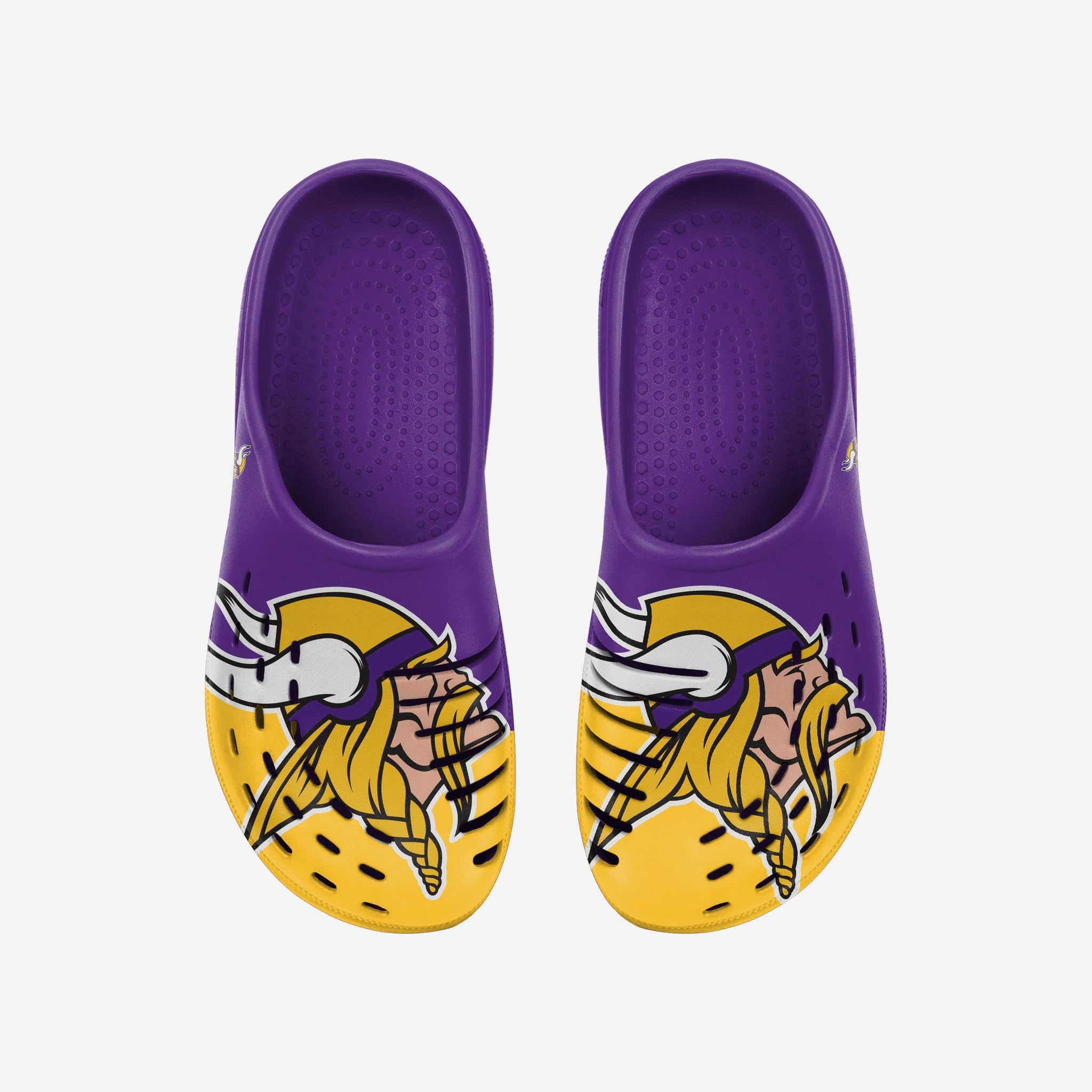 Whether you're walking around the house, in the park, or to your favorite seat in the stadium ready to cheer your team on to victory, do it in style by rocking these Minnesota Vikings Colorblock Big Logo Clogs!