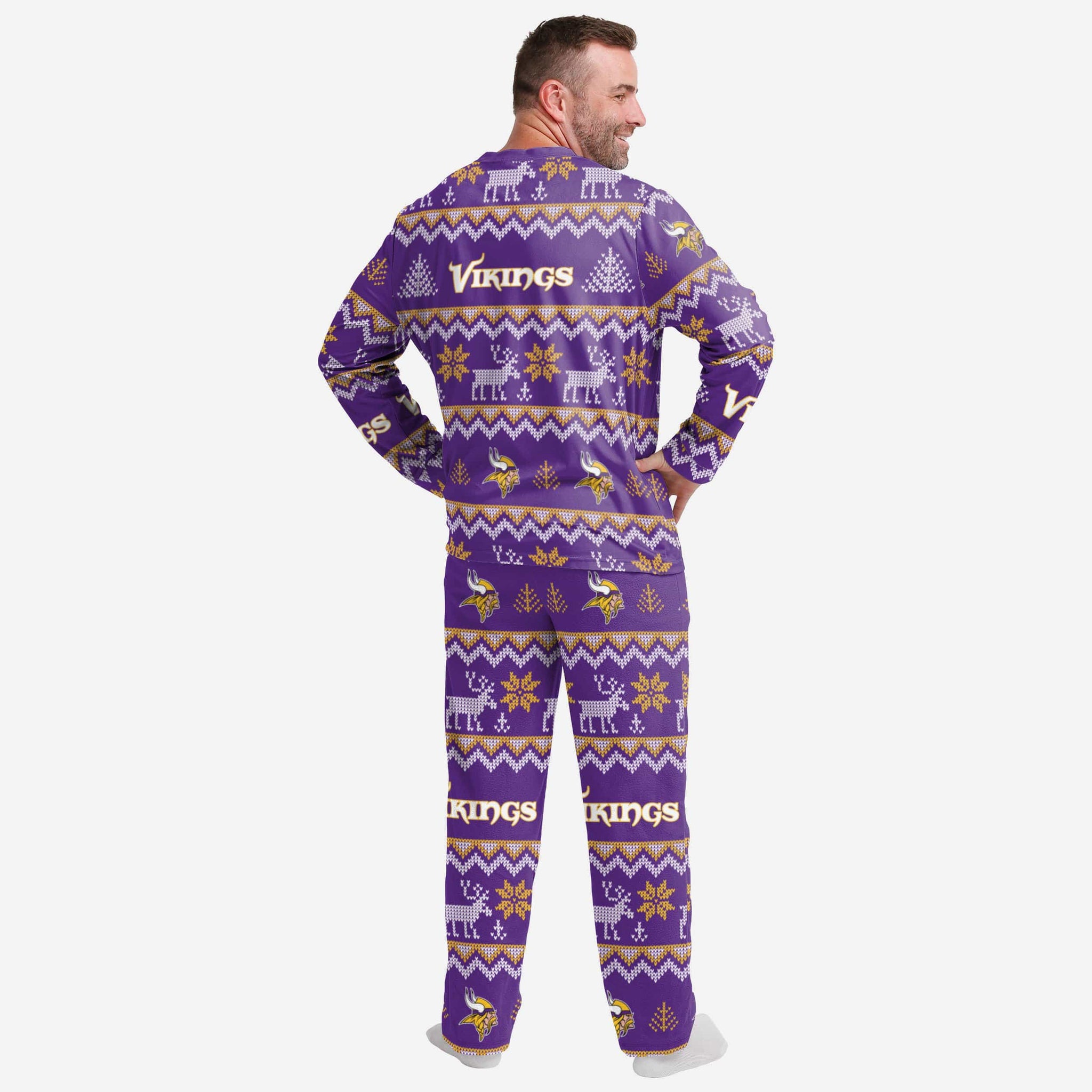 Get some matching family pajamas and dress to impress this holiday season! You won't want to miss these men's team pajamas! These men's PJ's are comfortable and show off your team spirit in the form of some sweet men's jammies. Introducing the Minnesota Vikings Ugly Pattern Family Holiday Pajamas! Don't forget to take your holiday photo with the whole family wearing matching Christmas pajamas!